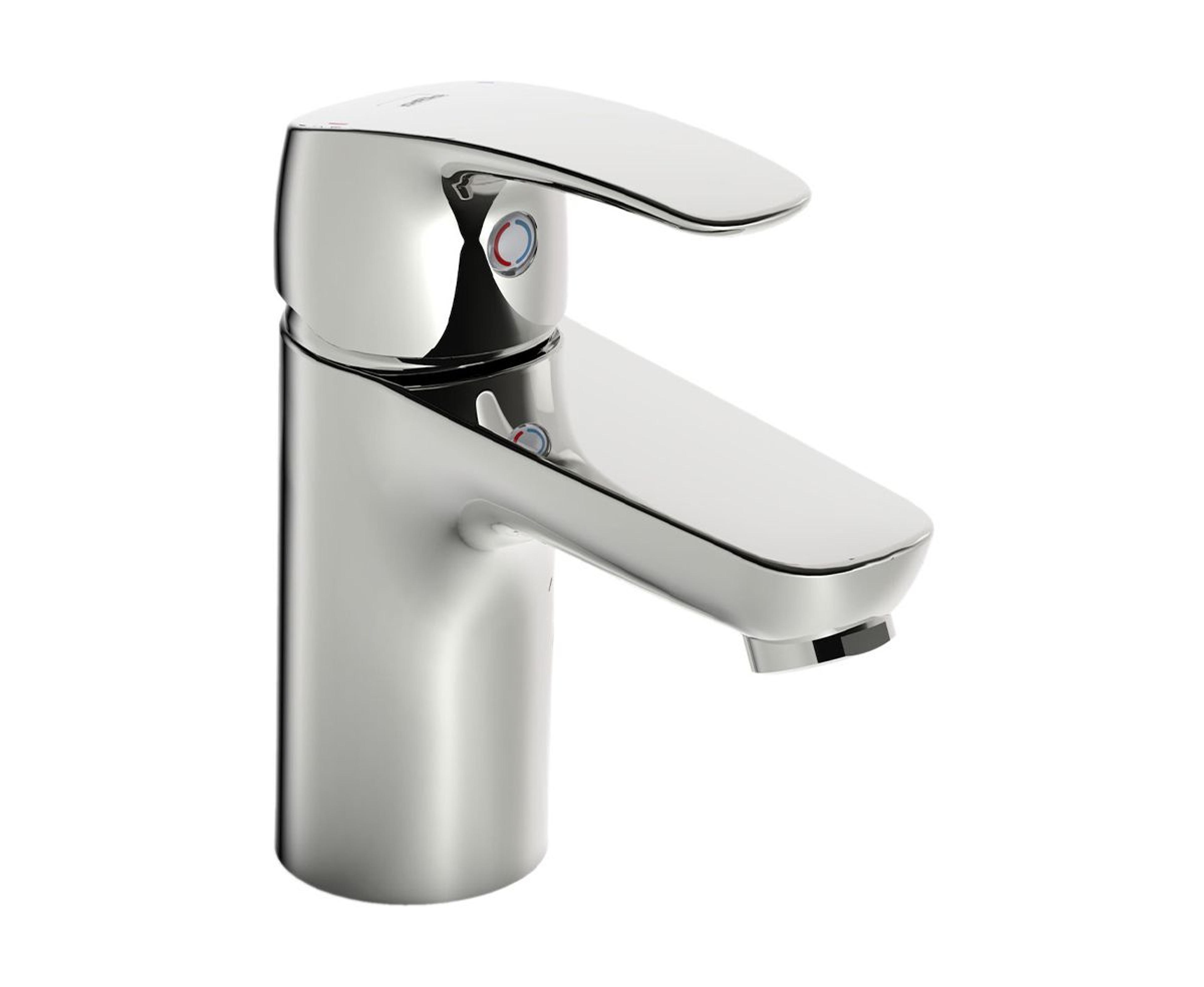 Servantkran med fast tut og perlator. Det er også innebygd alternative begrensninger for vanntemperatur og maksimal vannmengde. Pålitelig og slitesterk servantkran. Farge: Krom