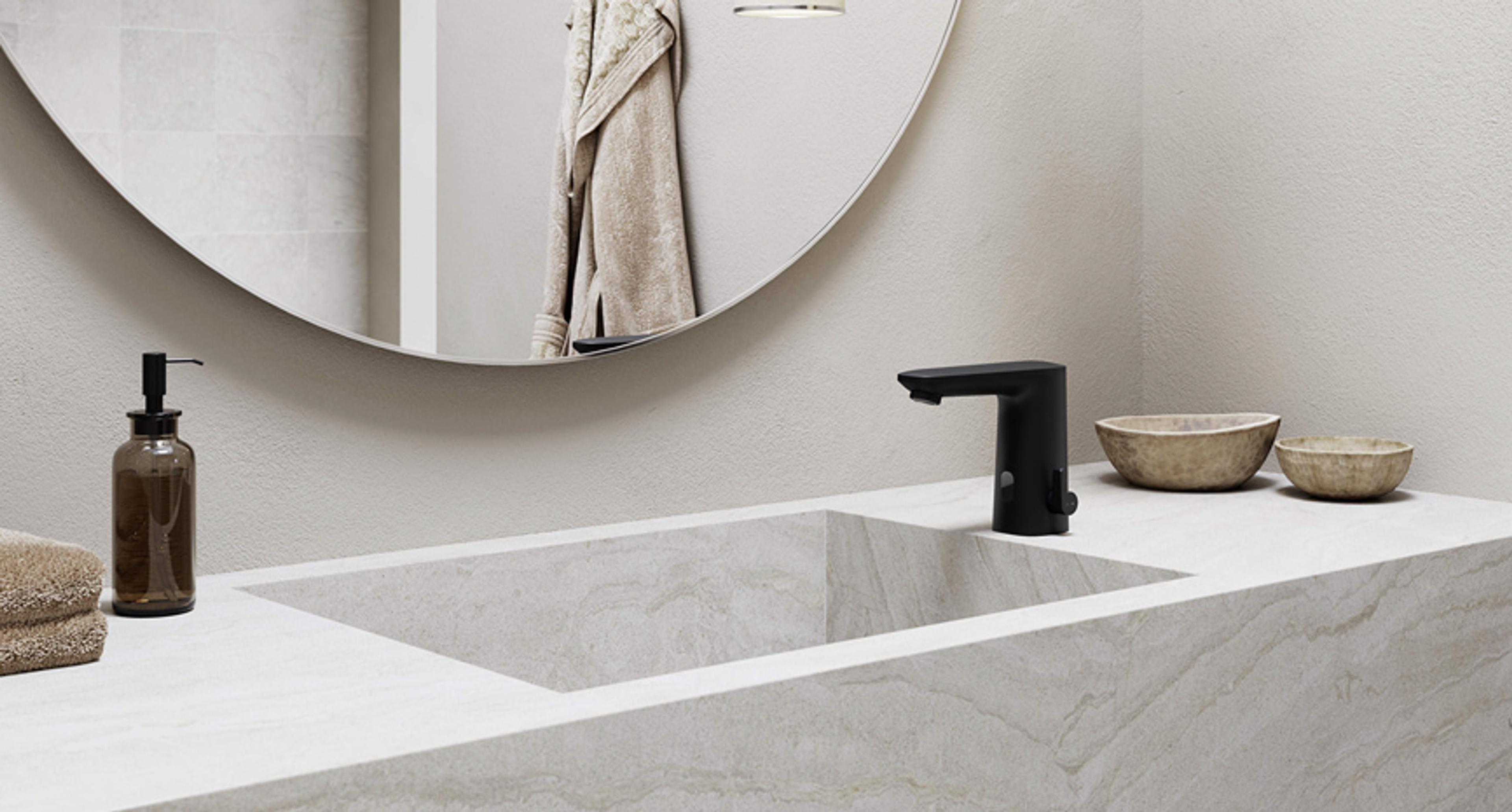 Ejer servantbatteri i matt svart. Servantkranen for det elegante baderommet. Høyde: 150 mm. Farge: Matt Svart