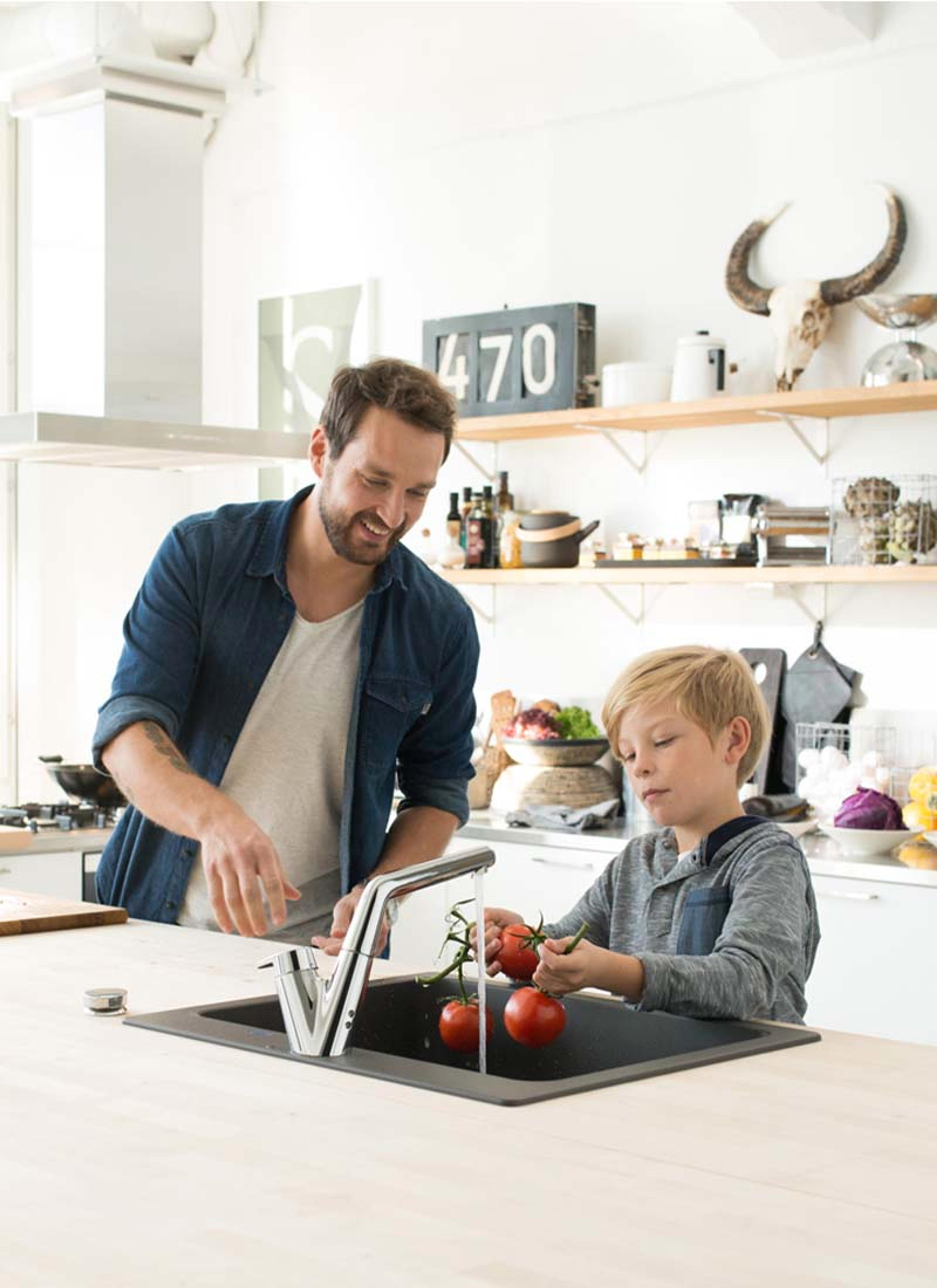 Det er flere situasjoner i hverdagen hvor vi bruker mer vann enn nødvendig – for eksempel til håndvask og tannpuss. Med et berøringsfritt servant- eller kjøkkenbatteri sparer du vann, gir hele familien bedre håndhygiene og gjør det tryggere for små barn å vaske hendene sine.