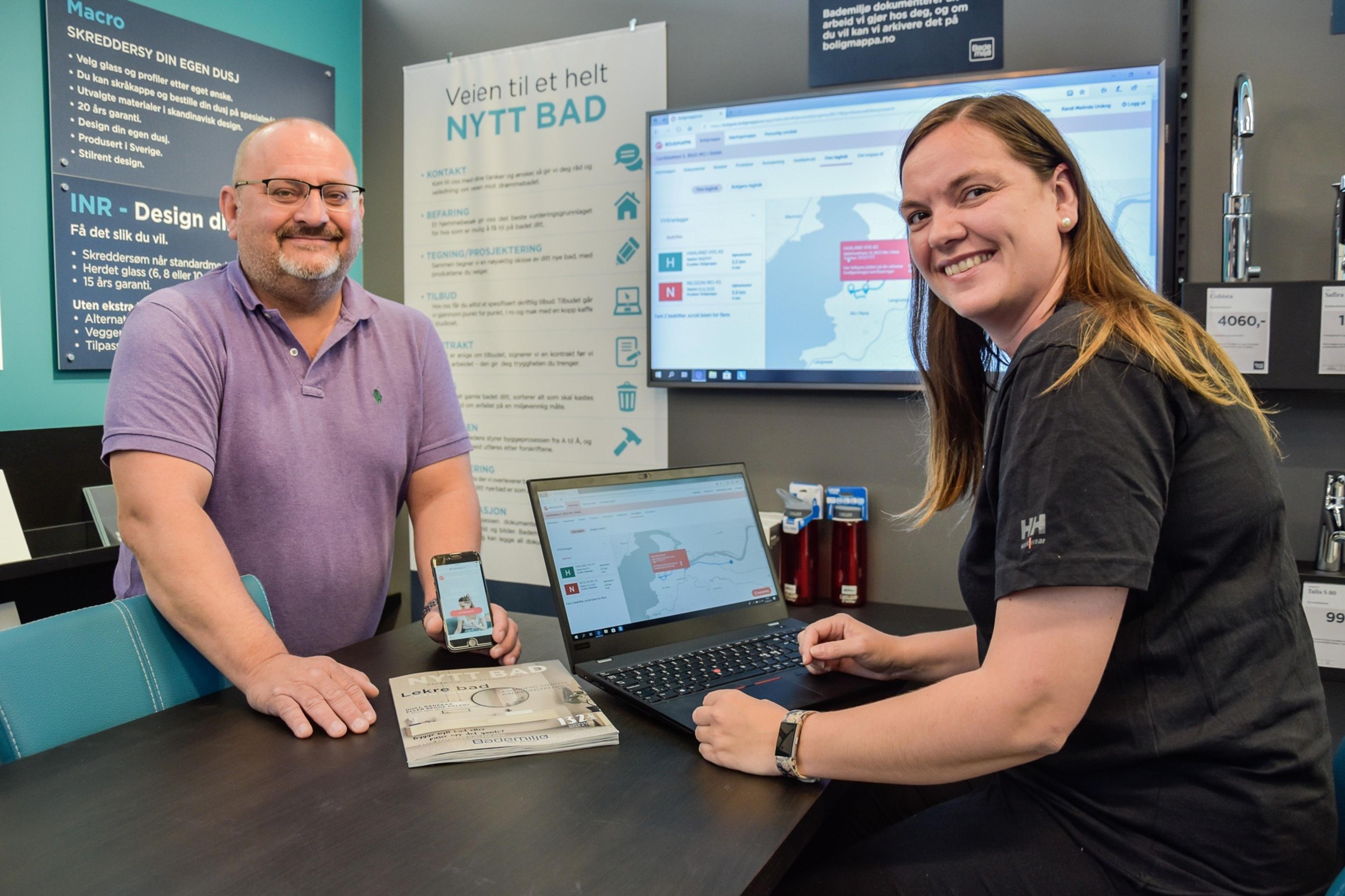 Frank Gabrielsen og Lene Vonstad ved Haaland VVS Bademiljø oppfordrer folk til å ta i bruk Boligmappa | Foto: Randi Melinda Urskog