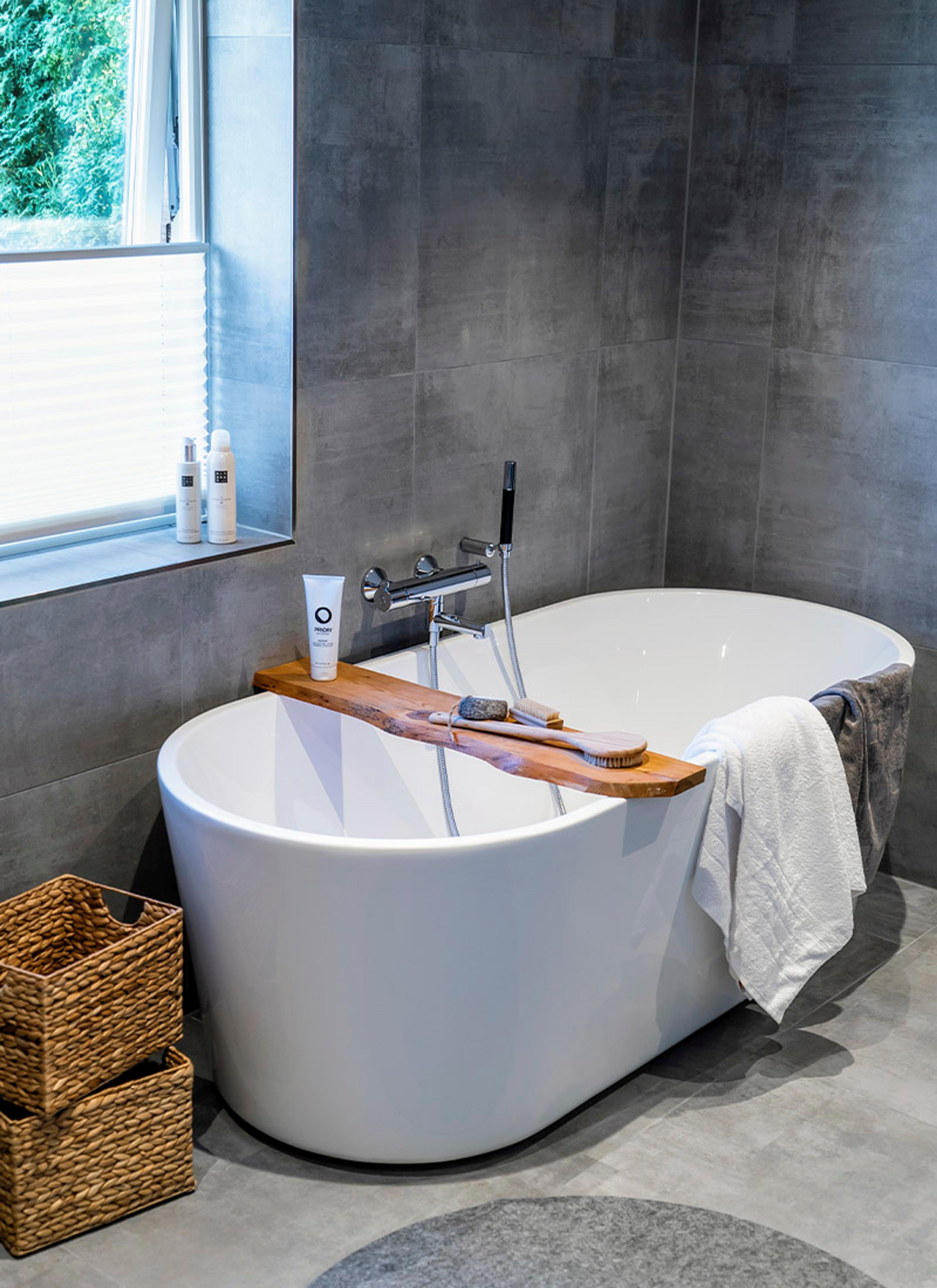 Og når du snakker om ønsker. Marianne er en person som trives på bad. I leiligheten i Oslo var badet på under 4 kvadratmeter, og det ble innredet med involvering fra både ham og henne. Da de bestemte seg for å flytte ut av byen og kunne realisere drømmebadet, fikk hun æren av å ta hovedansvaret for oppdraget.
