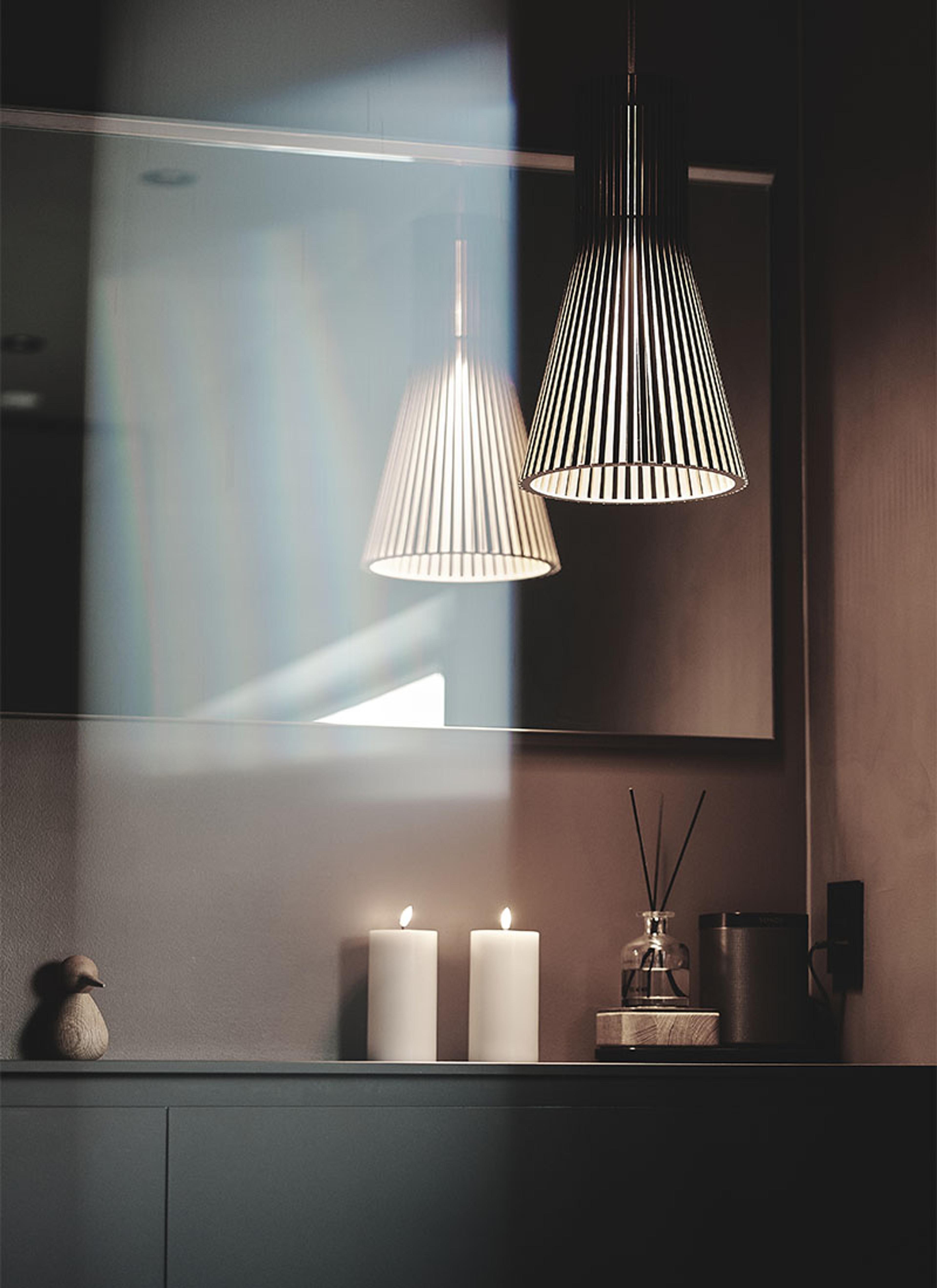 Tenk belysning på badet! June og Bern har valgt ulike typer belysning på badet for å skape den rette stemningen.