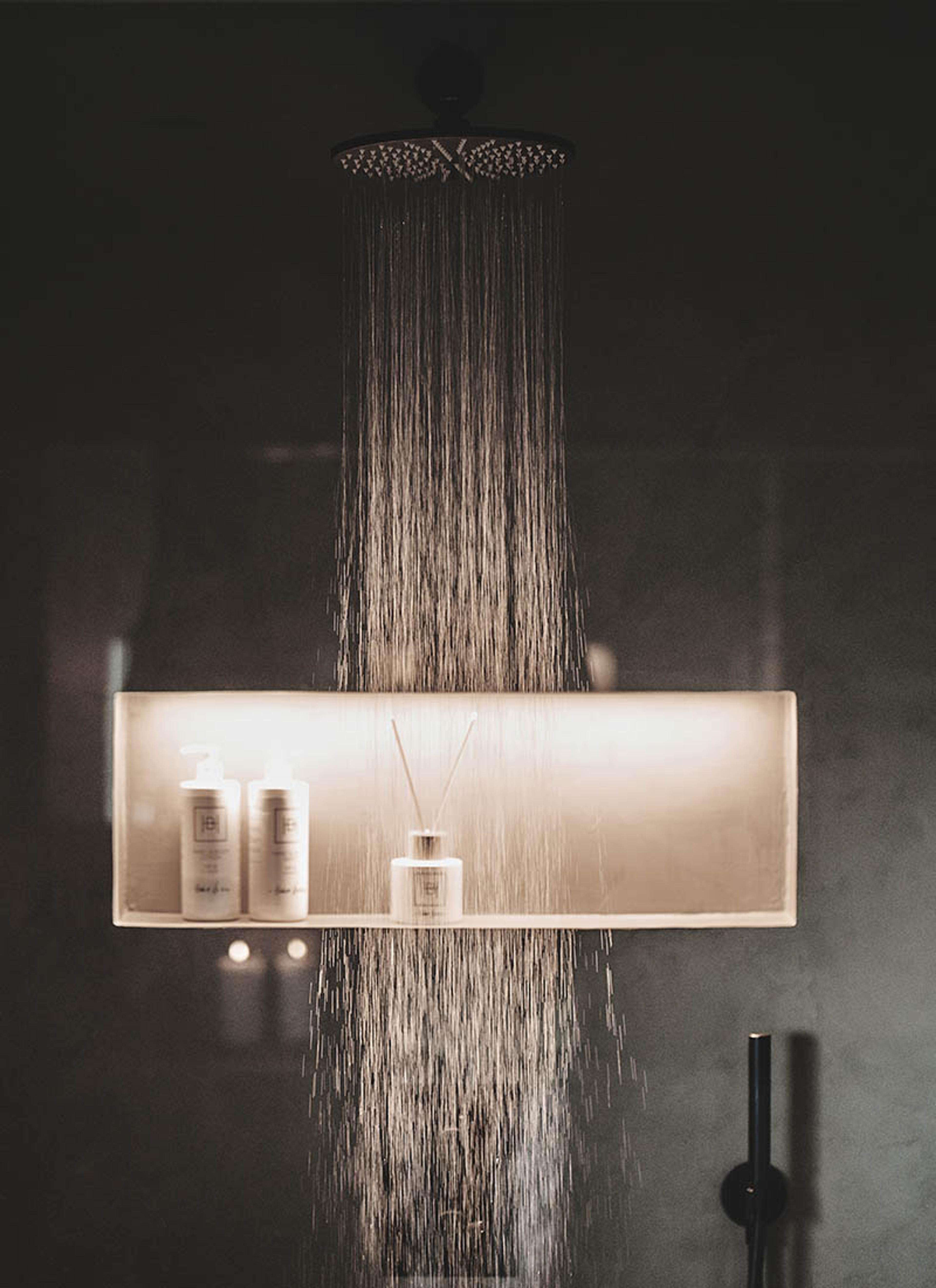 Spa og velvære! Nyt en varm dusj med dempet belysning. Med LED-lys i dusjen, som kan dimmes, slipper en skarpe spotter.