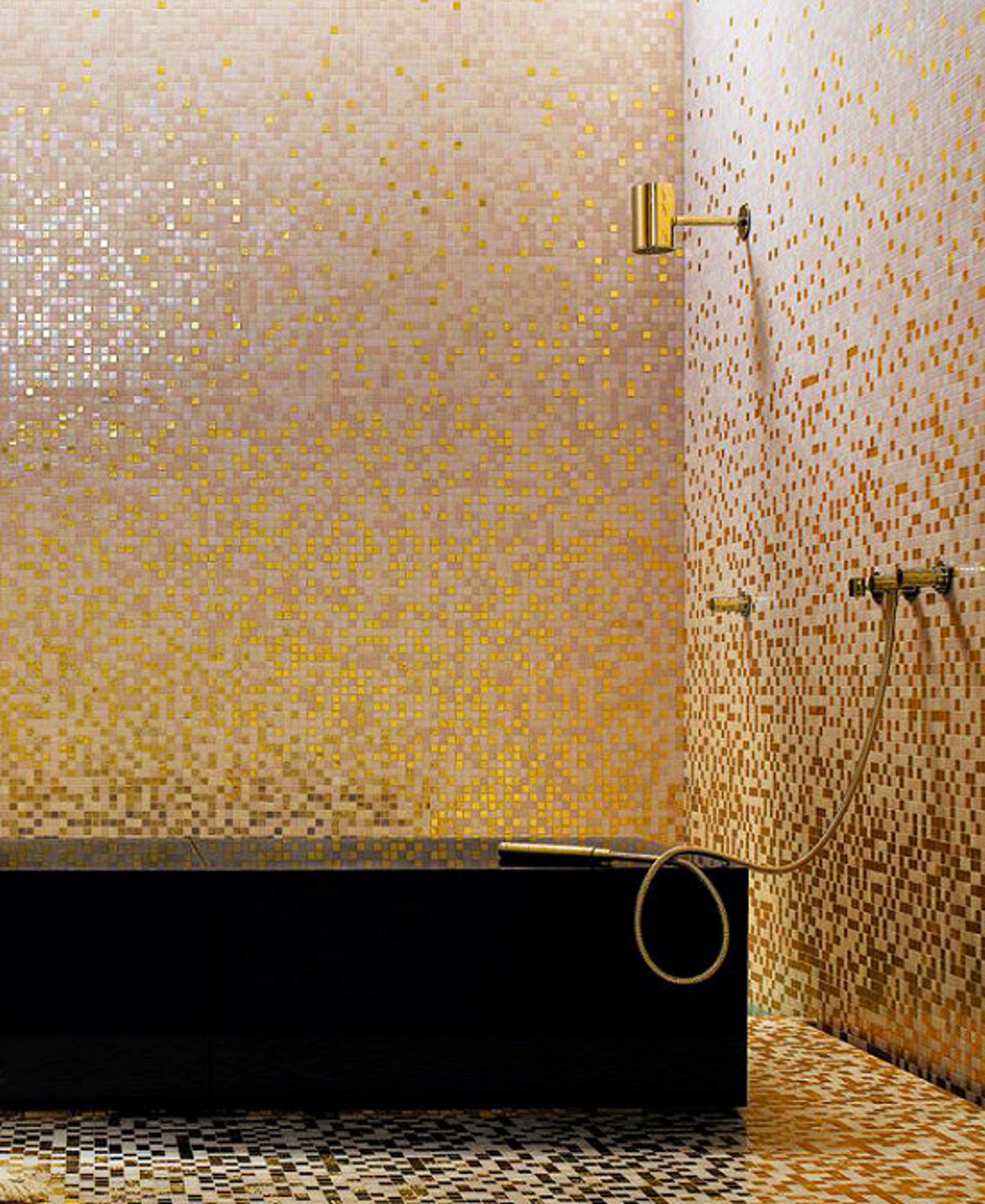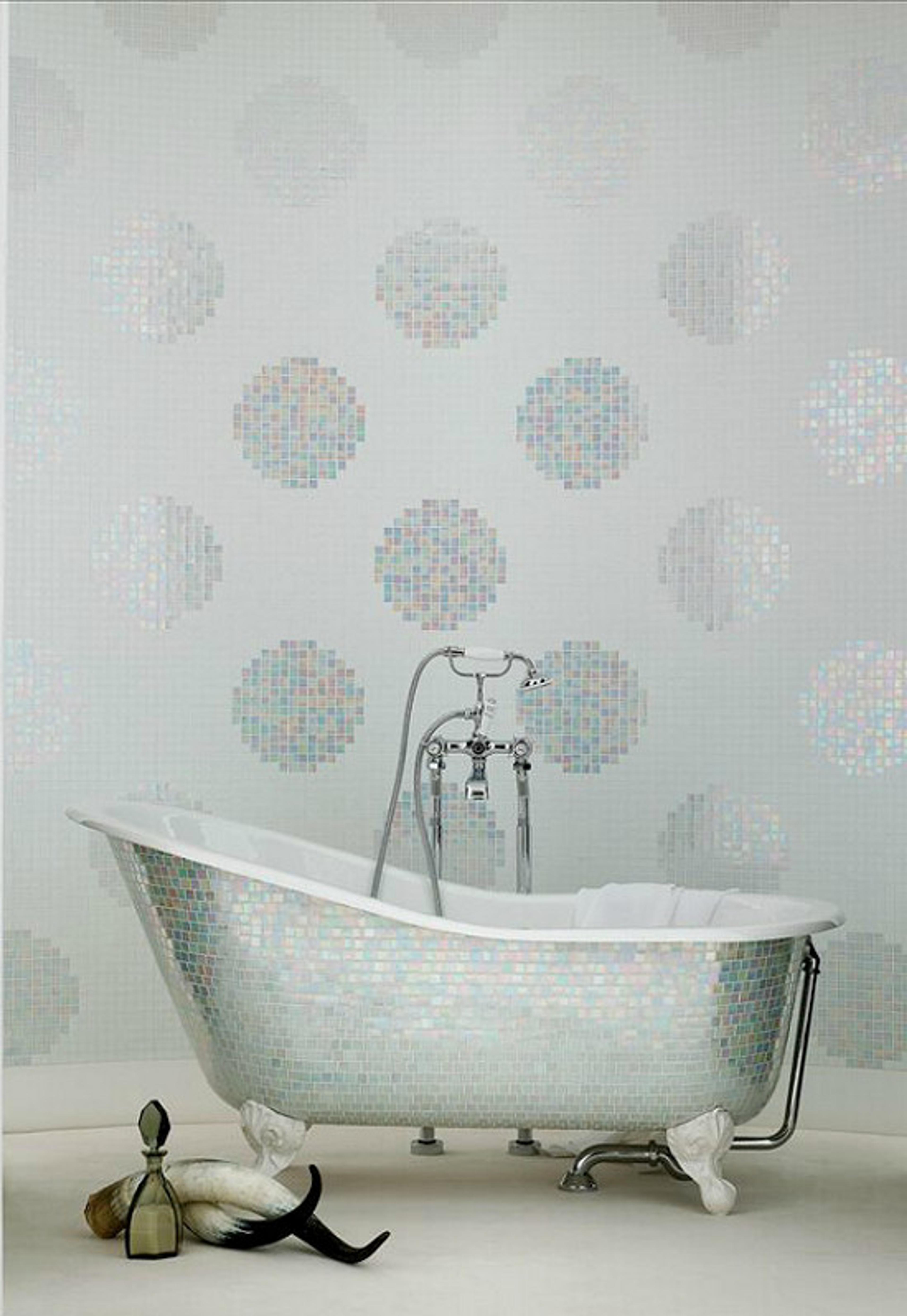 Her er noe for luksusdyret. Utvalget av fliser i glass og metallfinish har blitt enormt og passer til deg som har lyst på et bad med litt eksklusivt preg. Når du velger fliser med slike effekter er det viktig å tenke på belysningen. Har du en gammel lysekrone kan den kanskje passe inn, ellers er belysning som treffer veggen fordelaktig. Vær nøye og sikt inn spottene slik at flisene riktig får skinne.