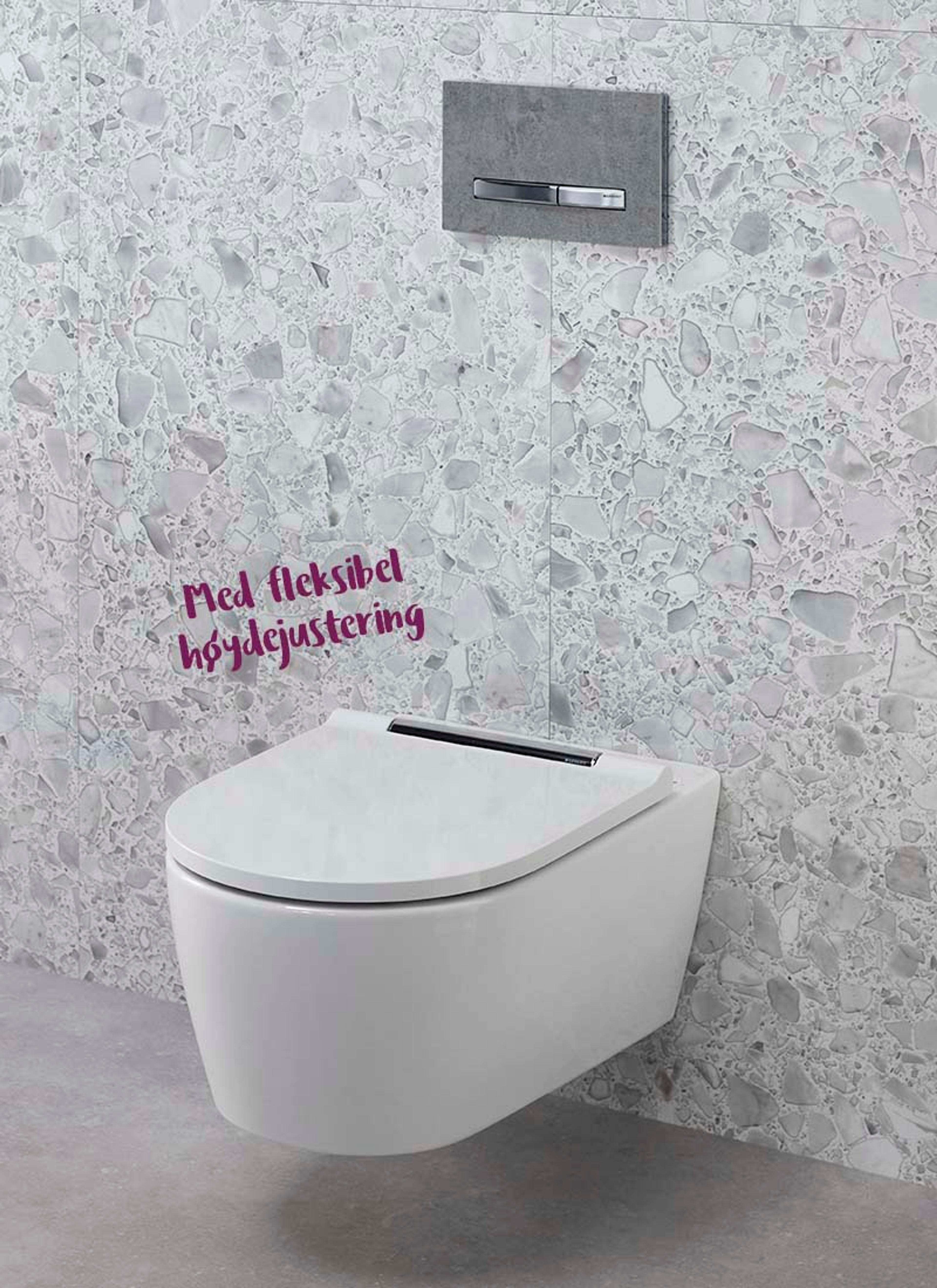 Tenk fremover: Geberit One vegghengt toalett kommer med monteringsteknologi som gjør det mulig å høydejustere sittehøyden til toalettet – selv etter at toalettet er montert. Det gir fleksibilitet for en familie i endring.