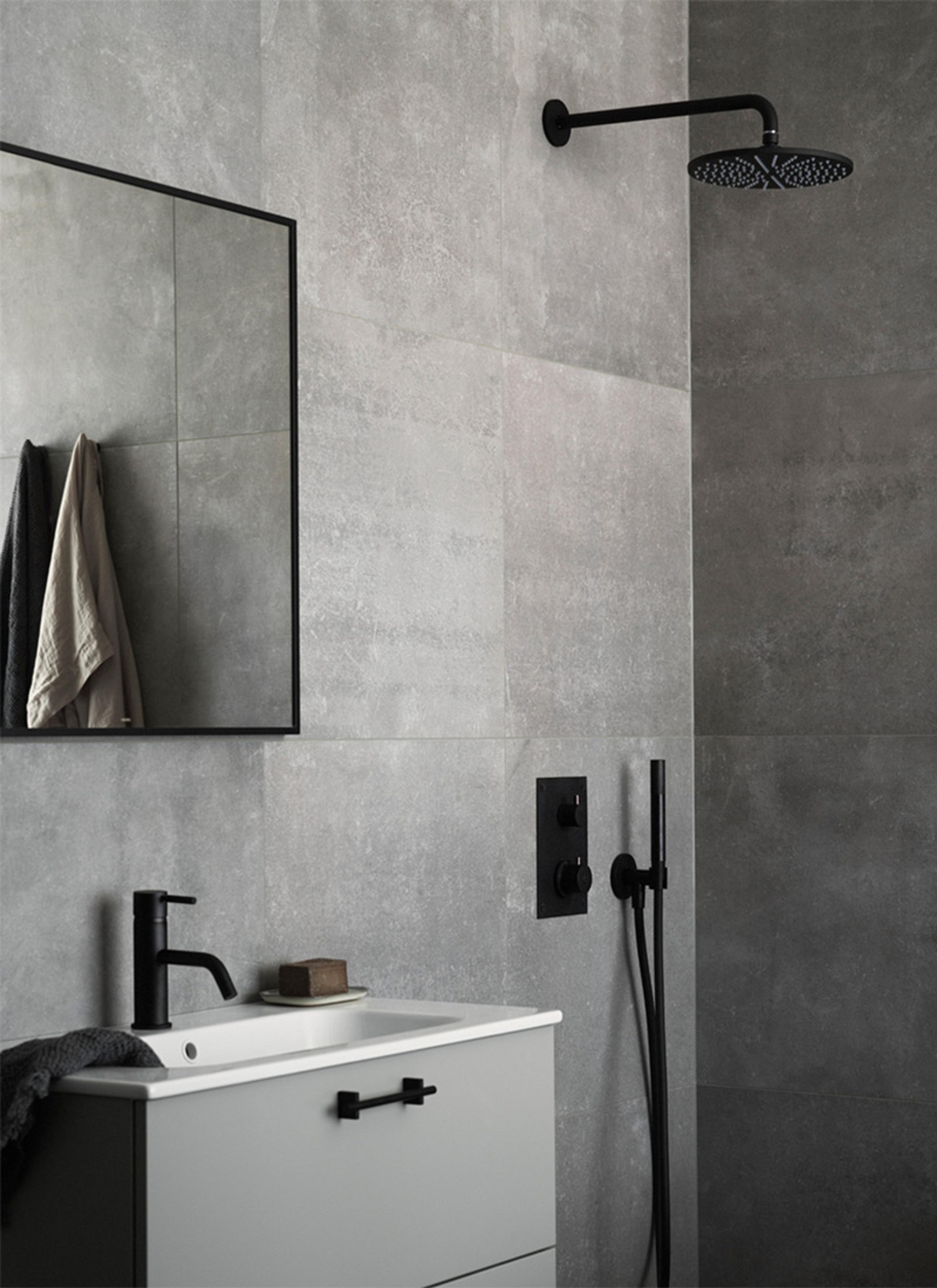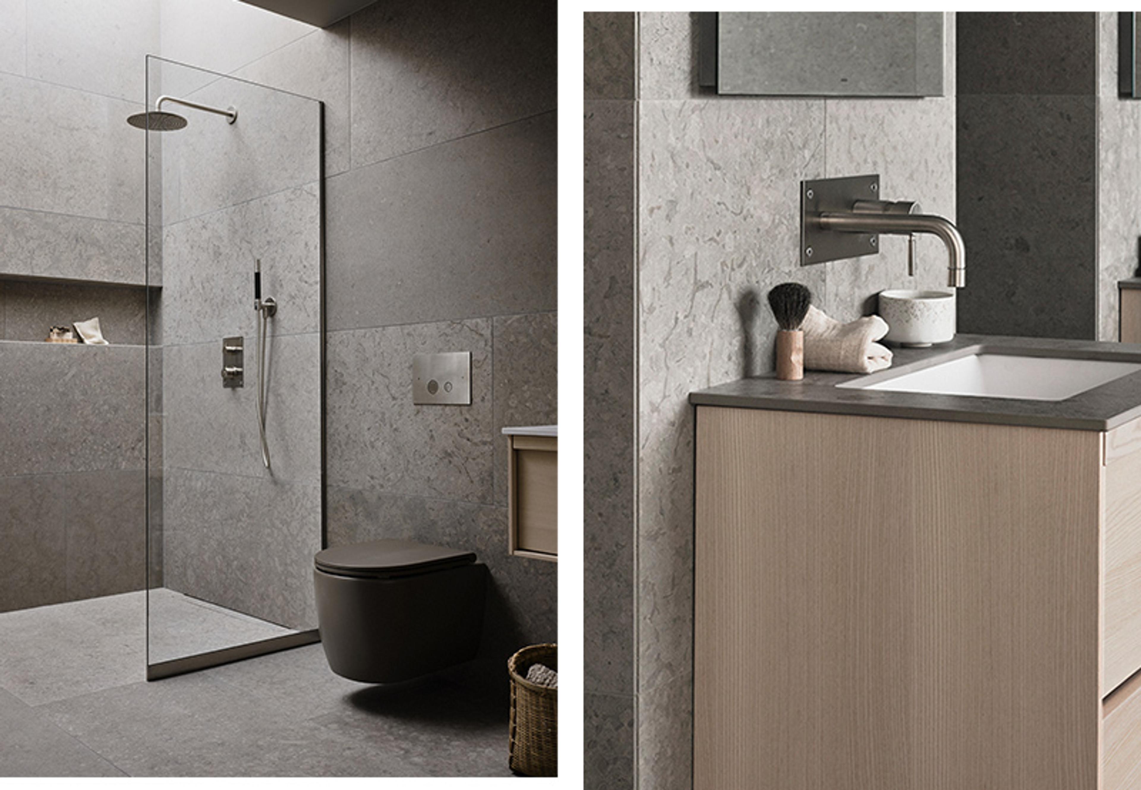Når servantbatteriet og dusjen kommer rett ut av veggen får du et eksklusivt spa-uttrykk på badet.
