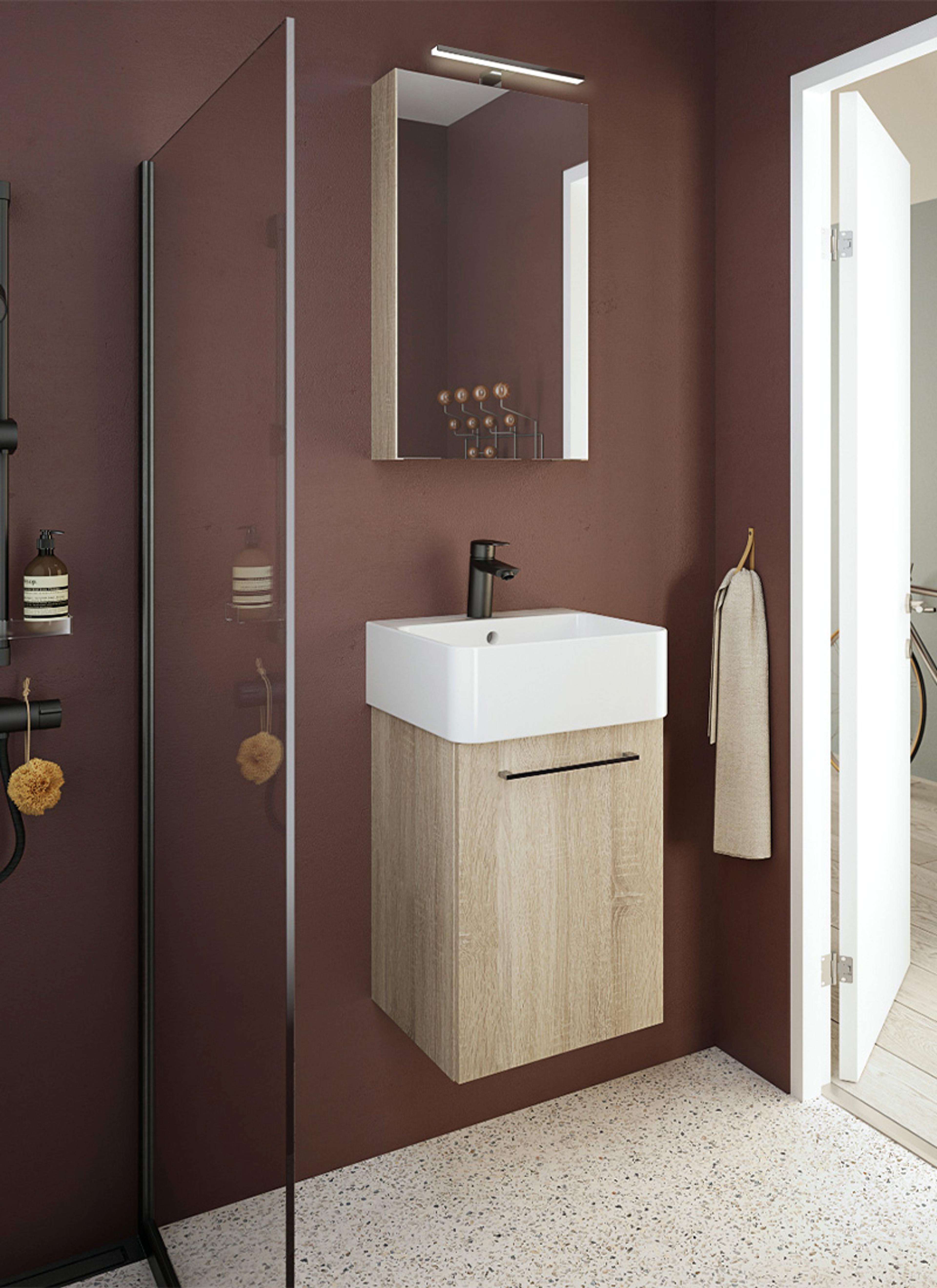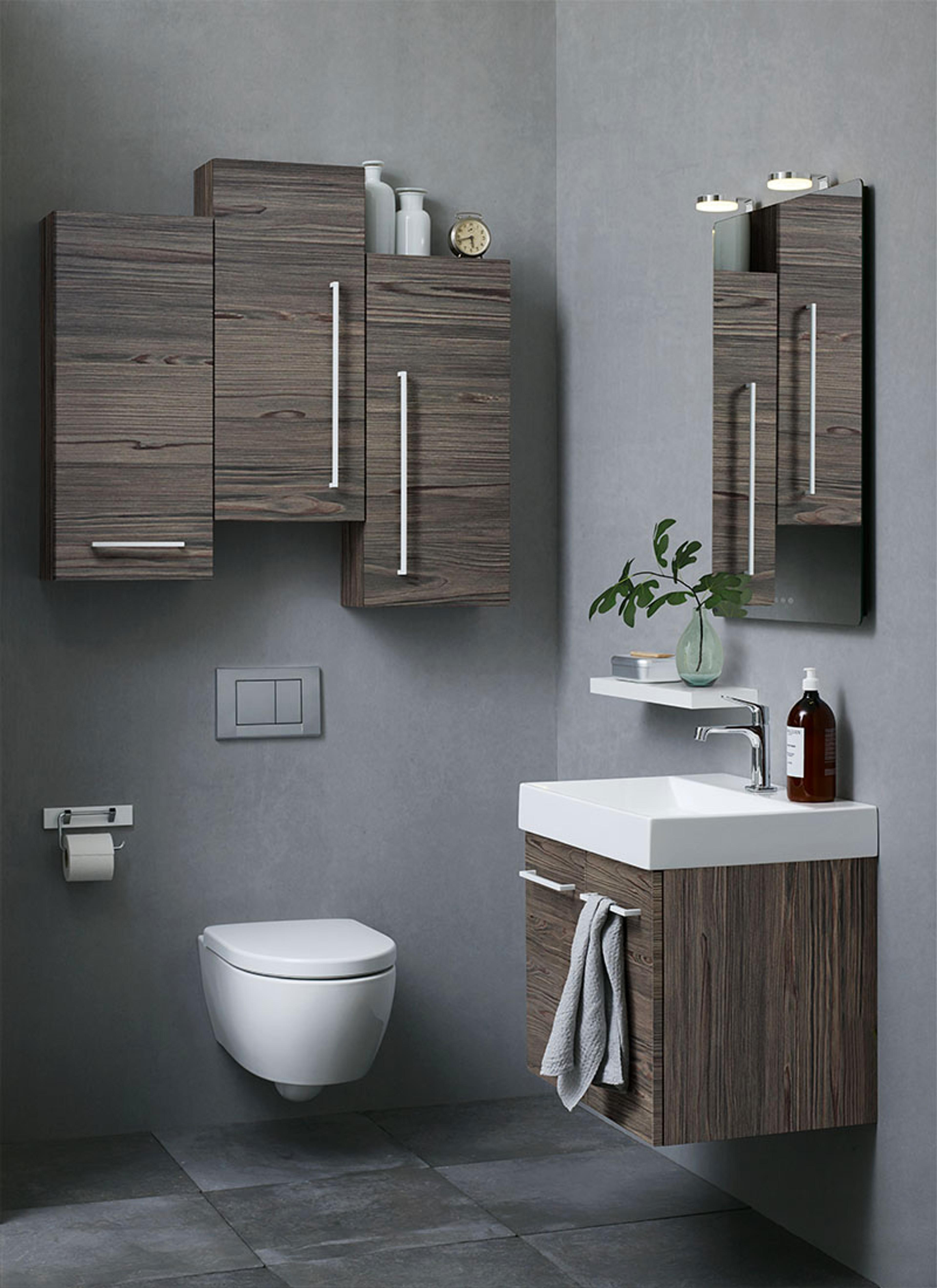Når 60 cm blir for stort | FOSSBAD Vita baderomsmøblerer spesielt utviklet for mindre baderom | Velg mellom innredninger i 35, 40 og 50 cm bredde
