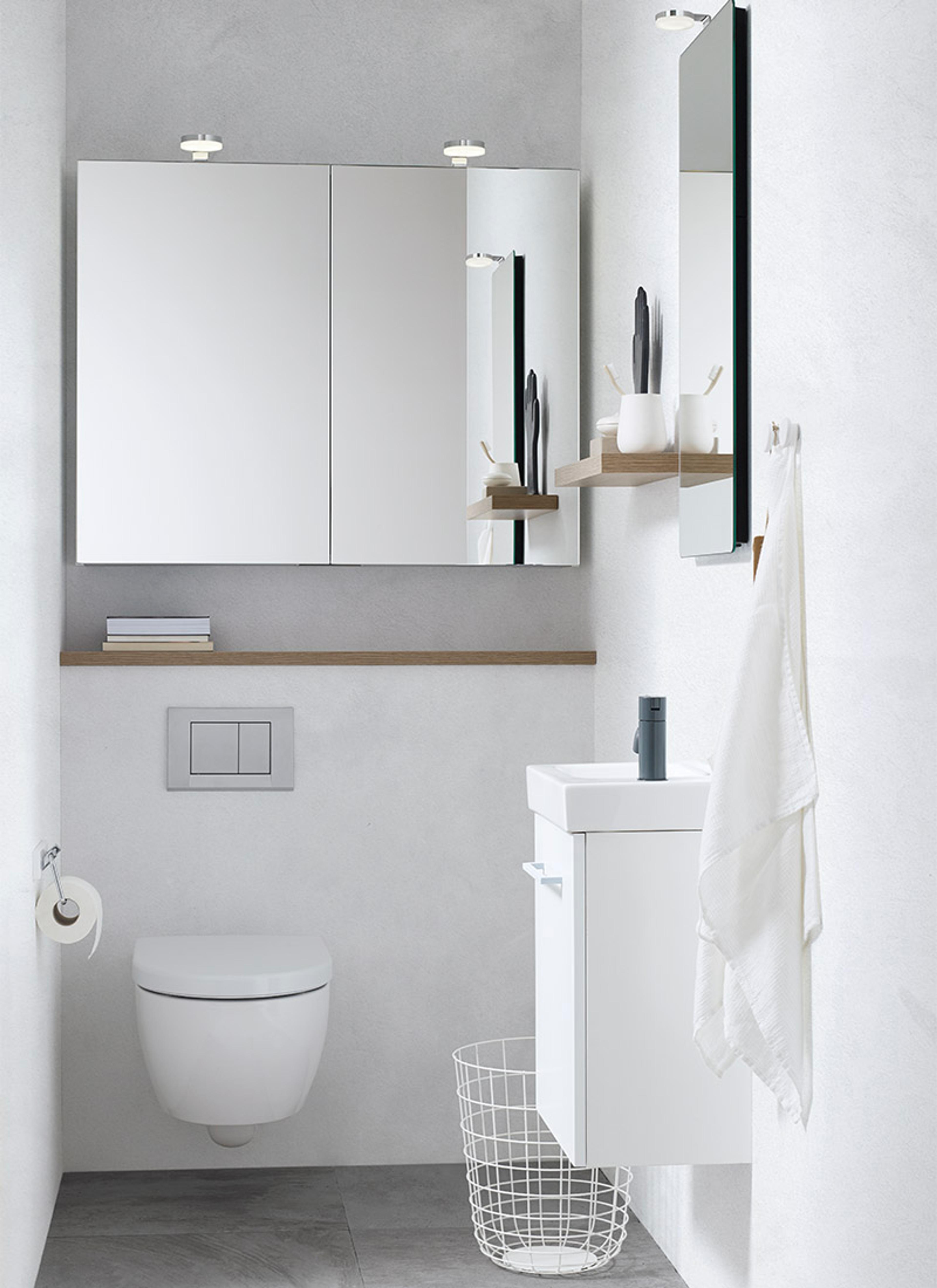 Tips! Hva med å henge et speilskap over toalettet. På den måten drar du nytte av speilets forstørrende effekt samt mer oppbevaringsplass | Dansani Inzo baderomsmøbel