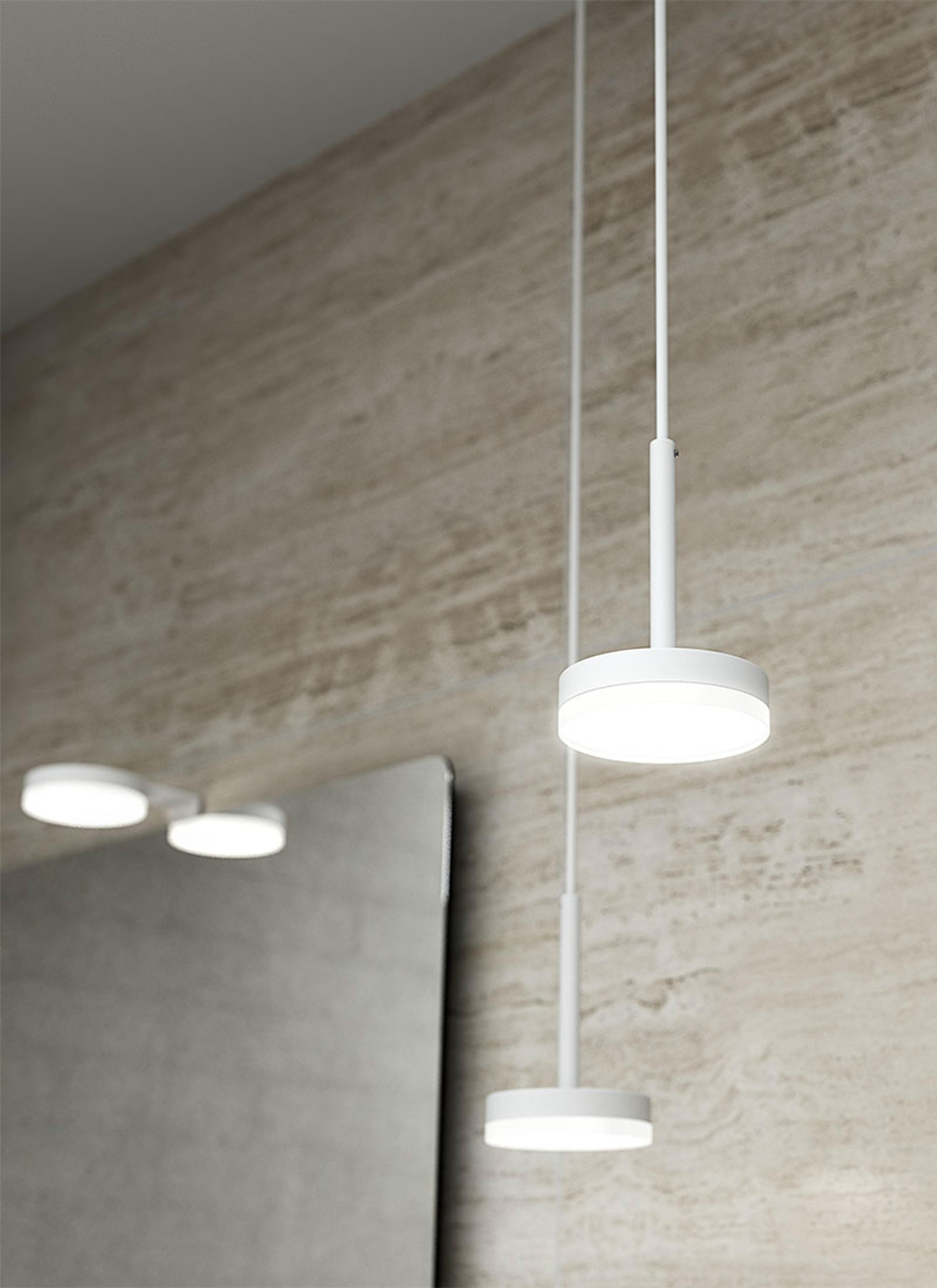 Ikke alle bad har vinduer med naturlig lys, da gjelder det å kompensere. Det finnes mye lekker og funksjonell baderomsbelysning som i kombinasjon med speil reflekterer lyset ut i rommet, noe som også gir en følelse av større plass. Et smart tips er å ha flere lyskilder – takspotter, vegglamper og pendler som går sammen med speil eller speilskapets belysning.