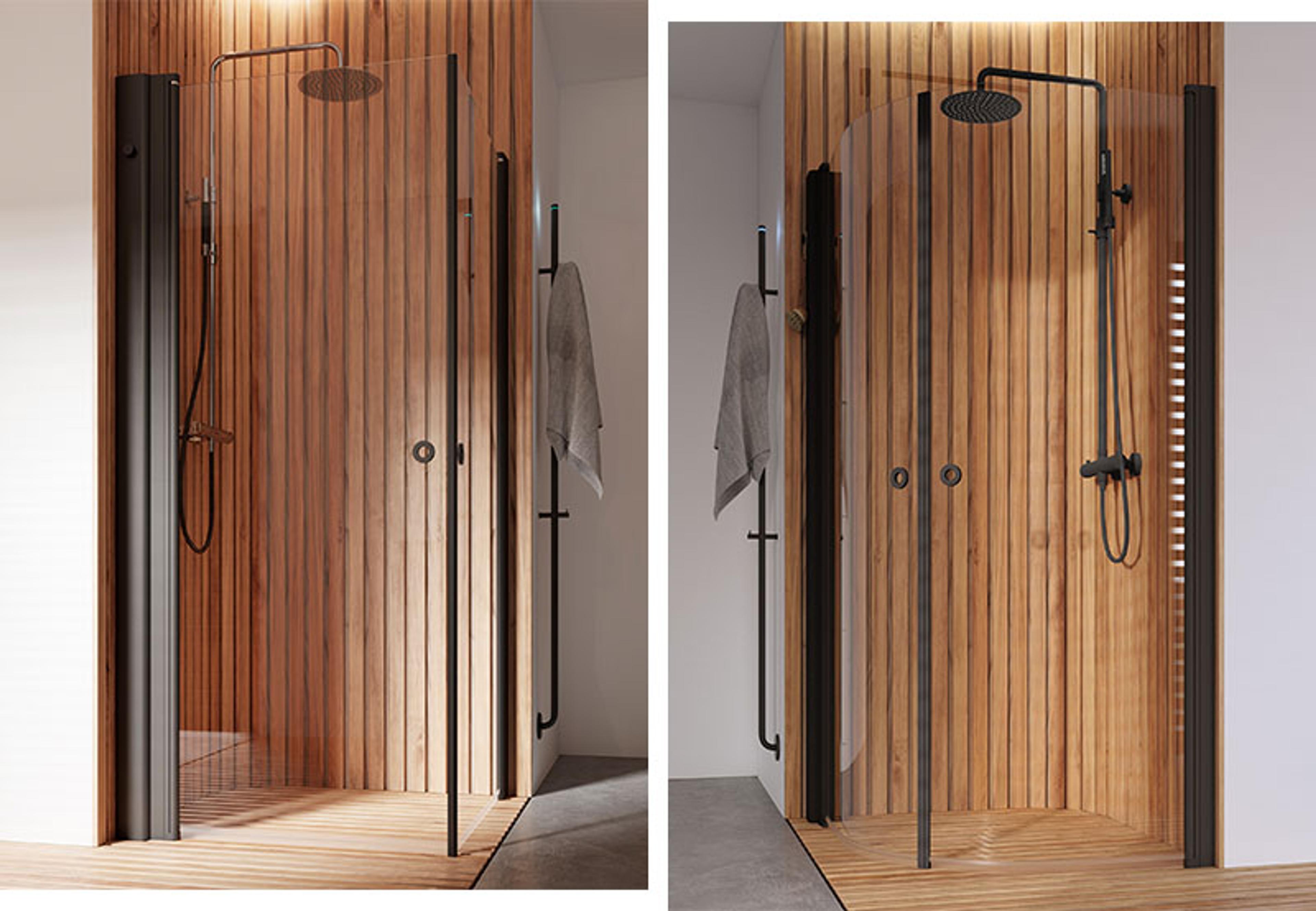 LINC Angel med to rette dører og søstermodellen LINC Niagara med sine buede dører, er to av INR sine mest elskede dusjhjørner. Og det er ikke så rart; Du kombinerer de ulike dørmålene fritt og ved hjelp et patentert løftehengsel kan du enkelt svinge dørene inn mot veggen når du ikke dusjer.