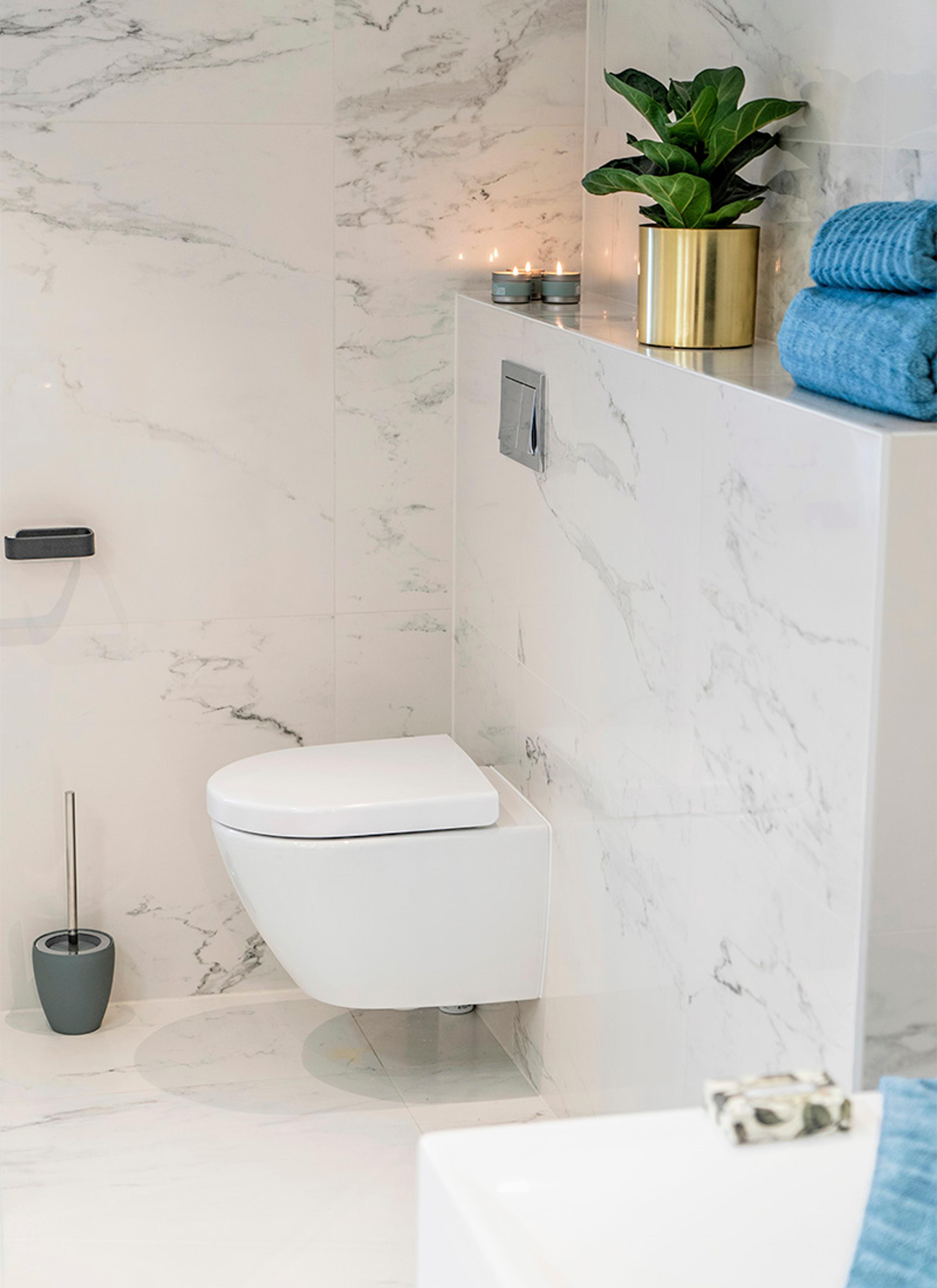 Det oransje toalettet, badekaret og servanten fra 1978 har blitt byttet ut med et mer minimalistisk og moderne baderomsinventar