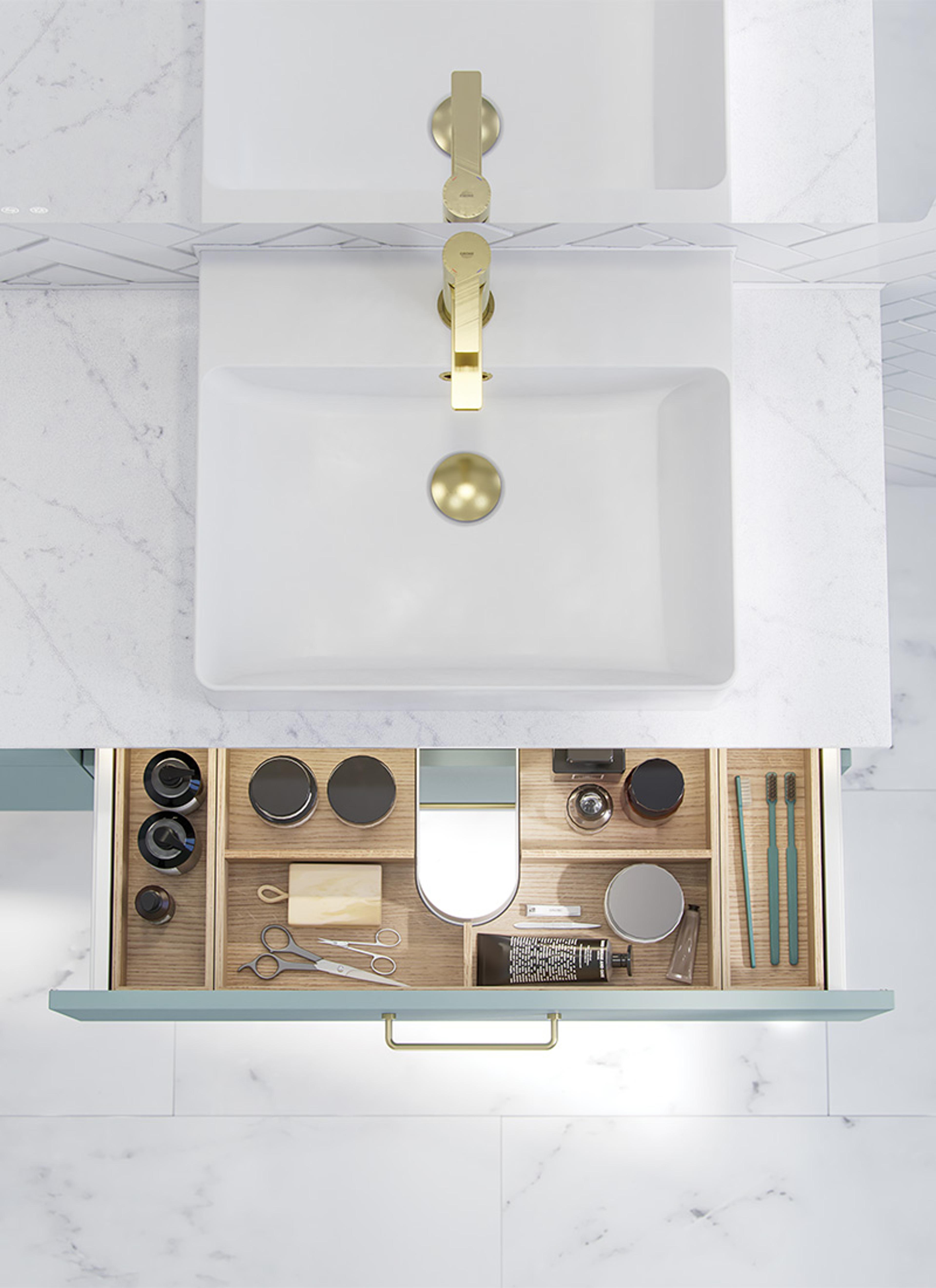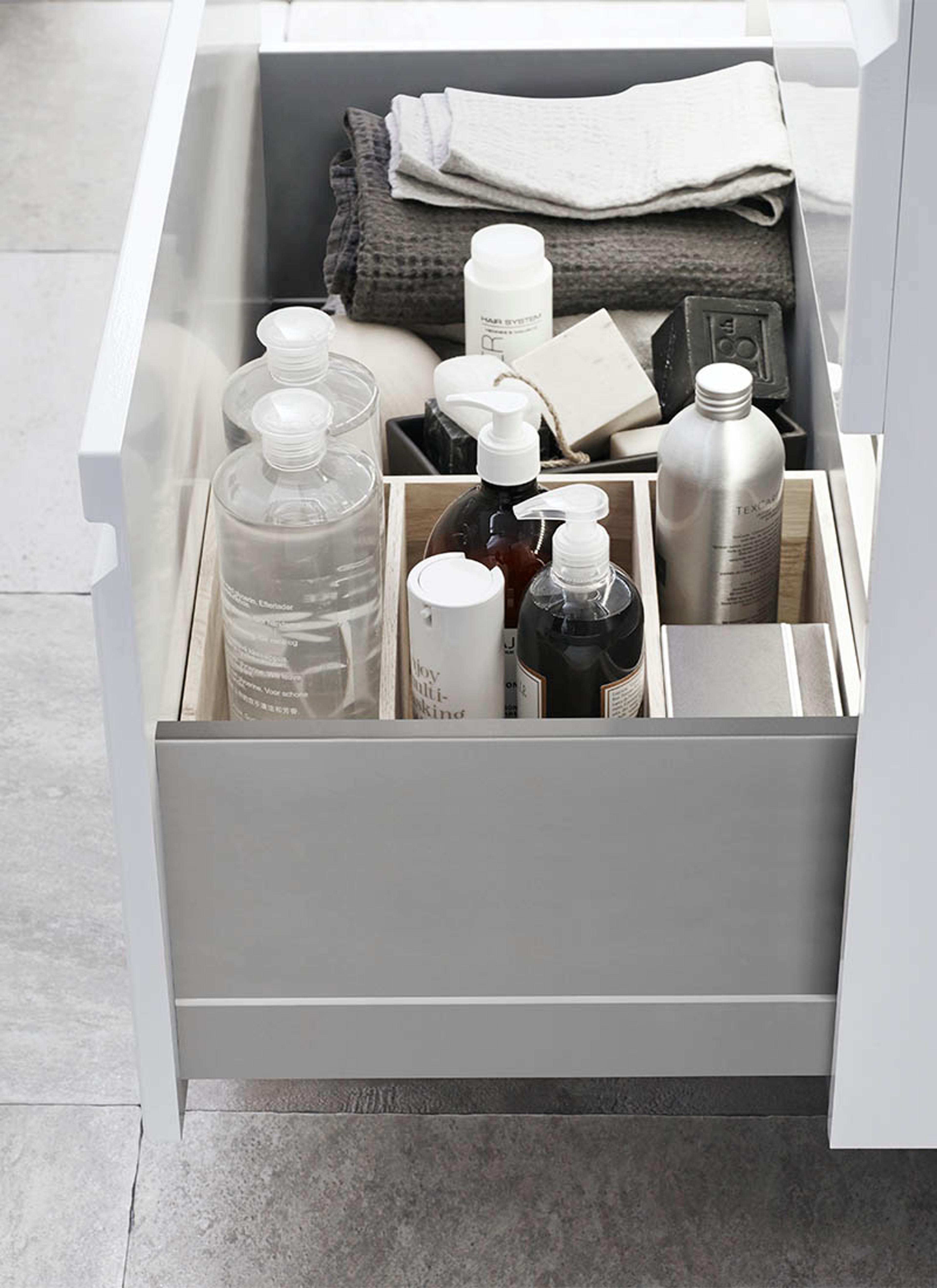 ORDEN I SAKENE: Få full oversikt med smart skuffeinndeling. | Baderomsinnredning fra Dansani.