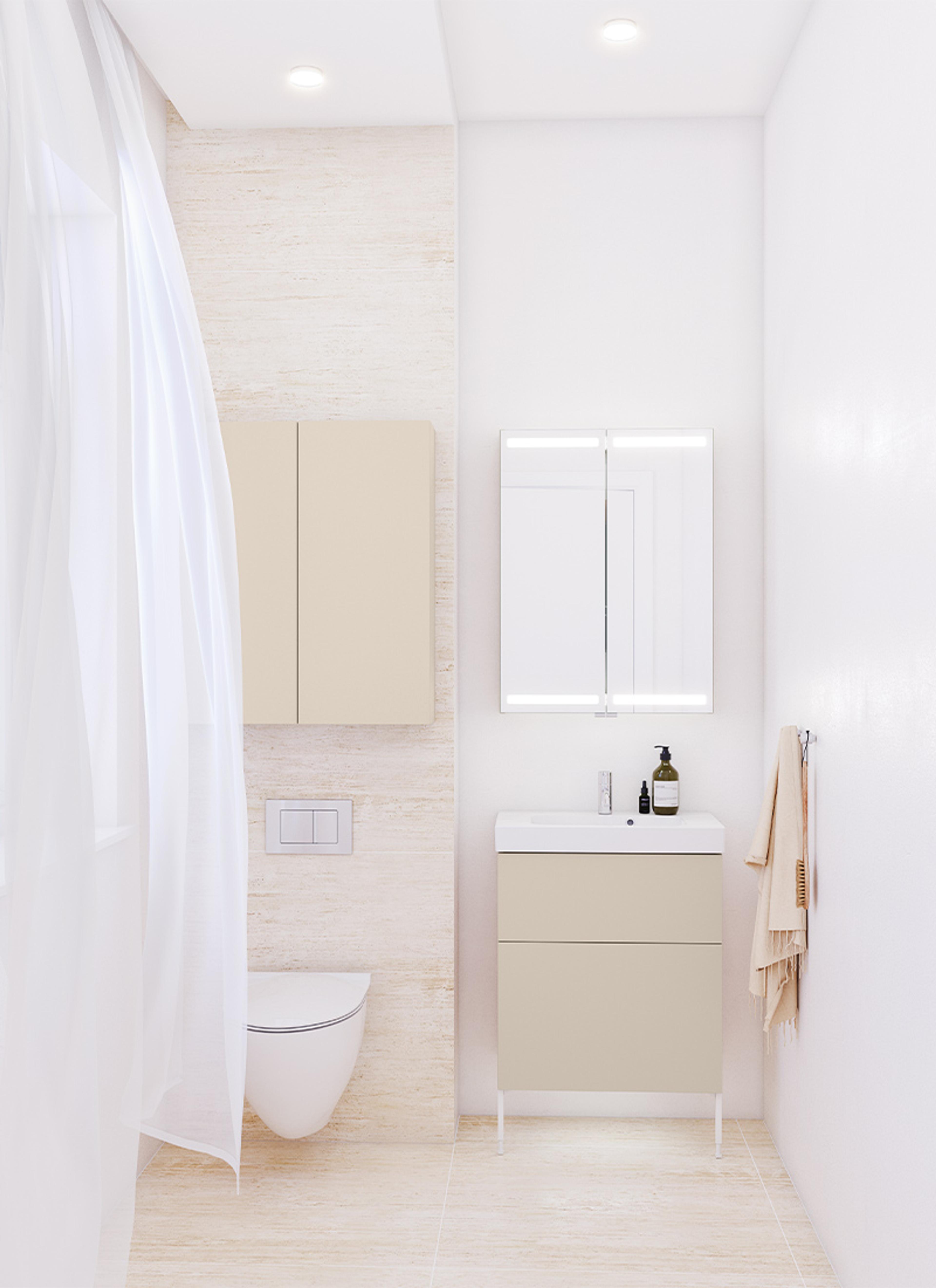 OPPBEVARING I HØYDEN: Har du et lite badkan det være smart å utnytte plassen over toalettet til å få mer skapplass og oppbevaring på badet. | Inzo baderomsmøbler fra Dansani