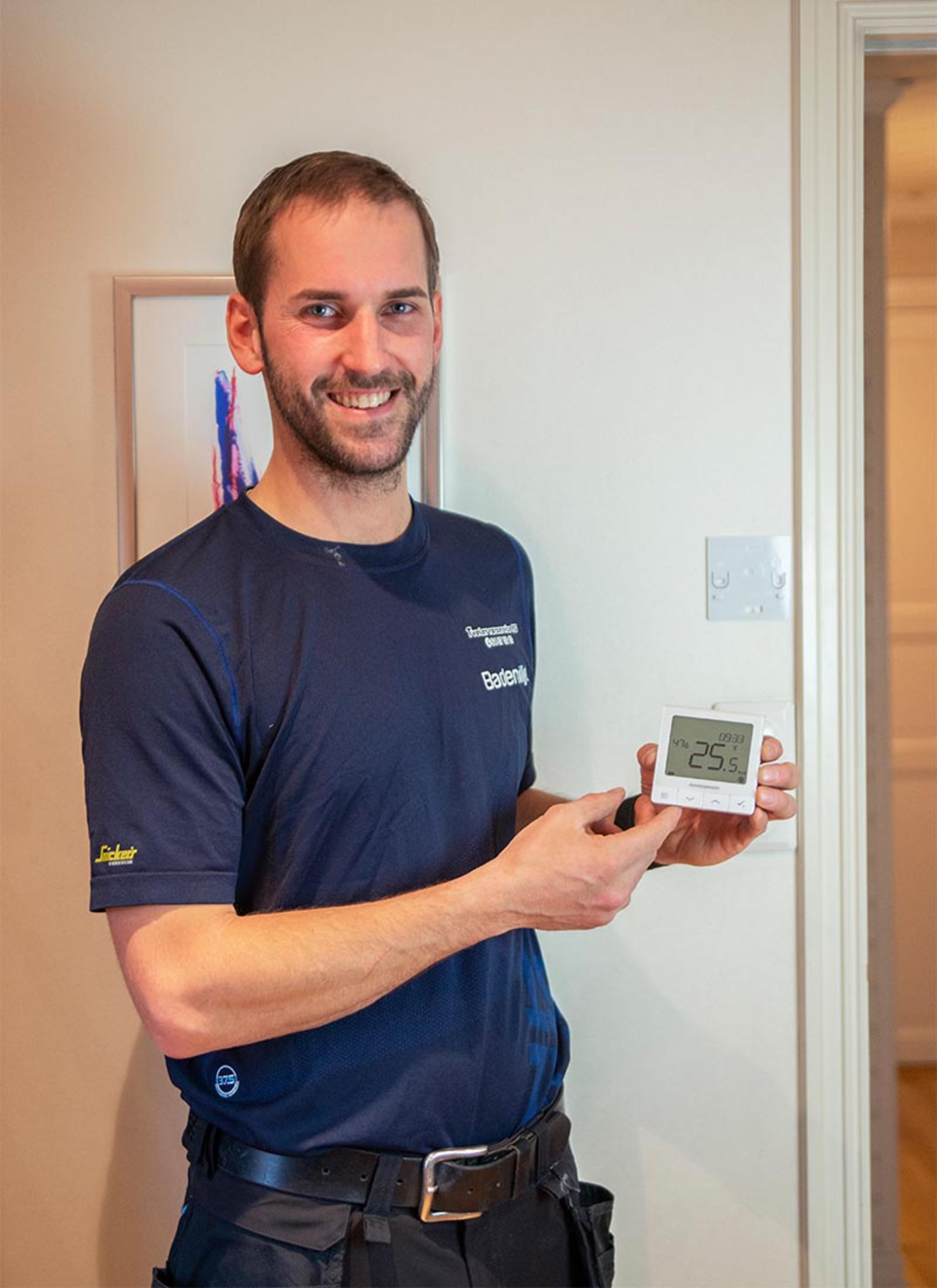 - Den nye termostaten har et veldig stort og fint display, noe som gjør det lett å se romtemperaturen, forteller Toril.