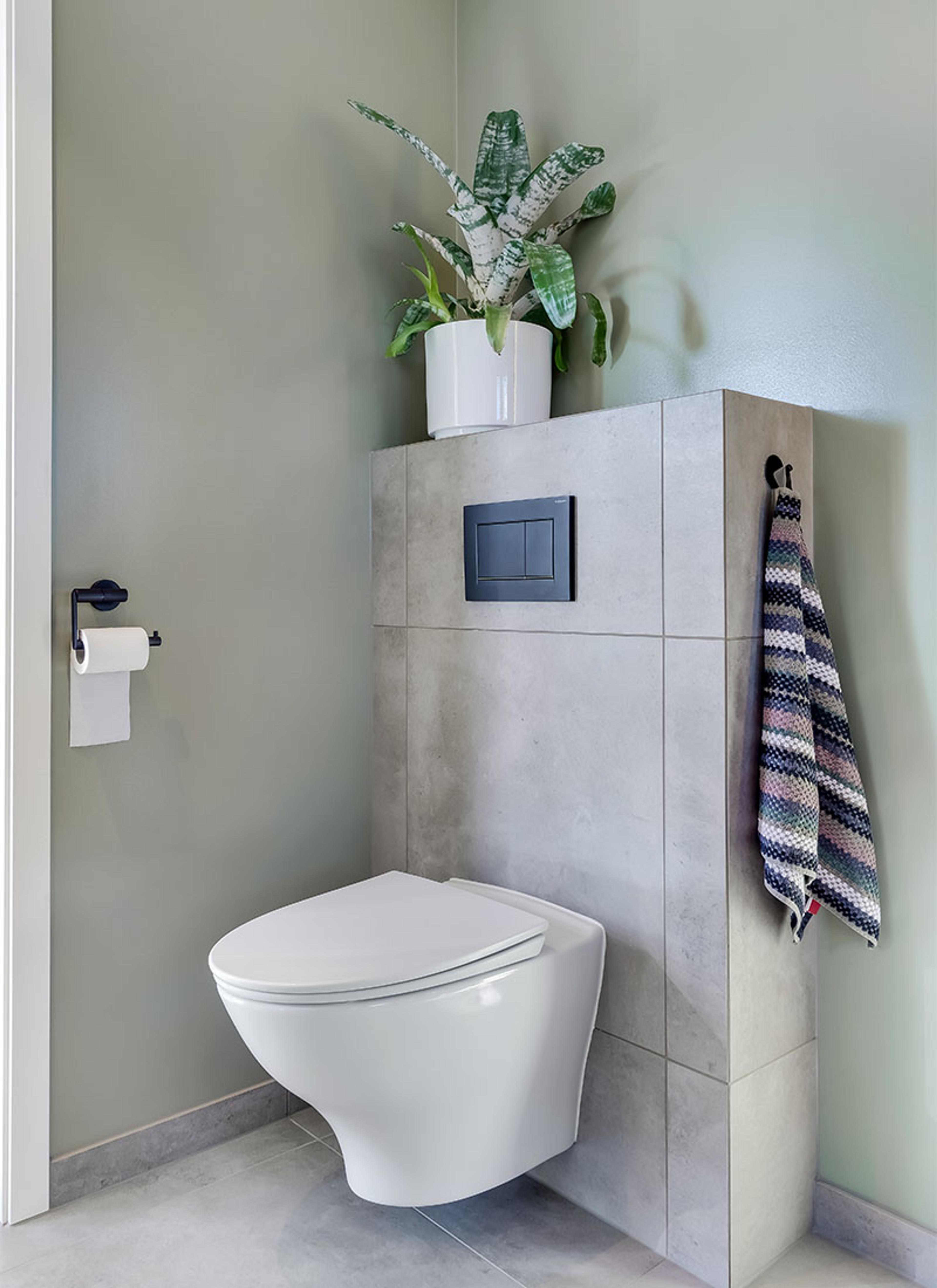 Therese valgte også toalett med omhu. Det skulle være vegghengt og designet slik at det var lett å rengjøre. Hennes bevisstheten rundt orden, funksjonalitet og hensyn til rengjøring, har påvirket utformingen av hele rommet.