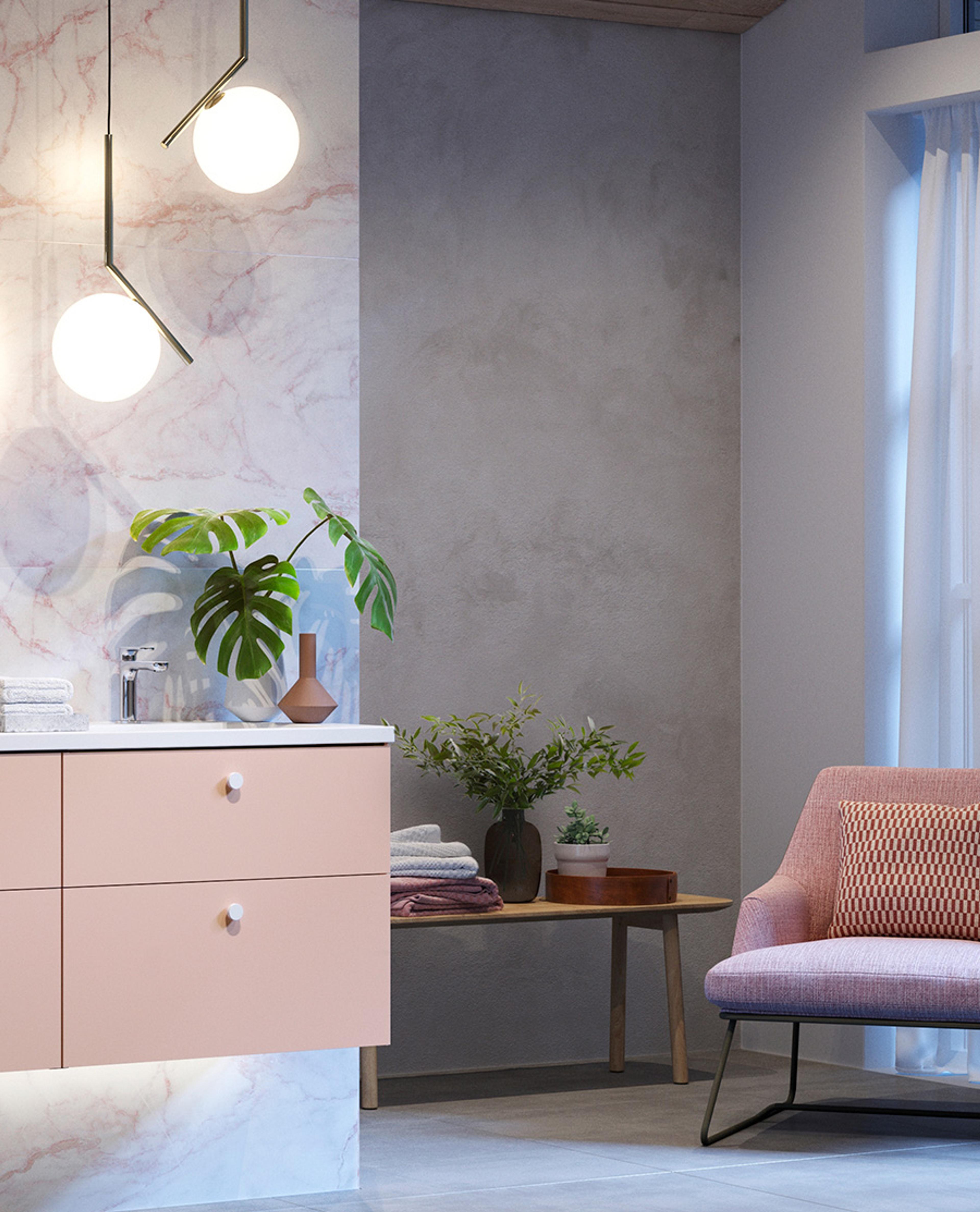 GRAND 140 baderomsmøbel i «Rose Dust» med hvite knotter fra INR