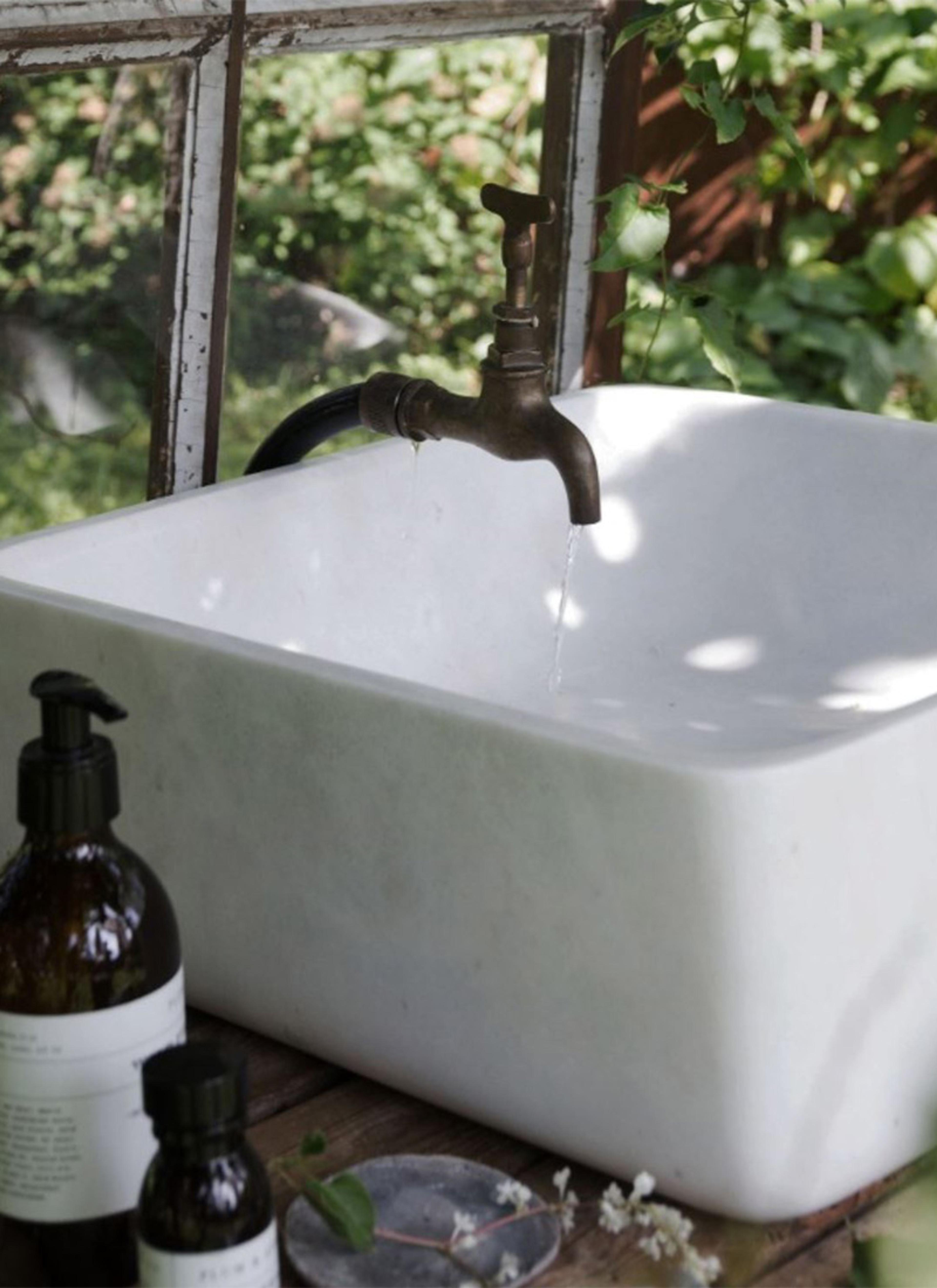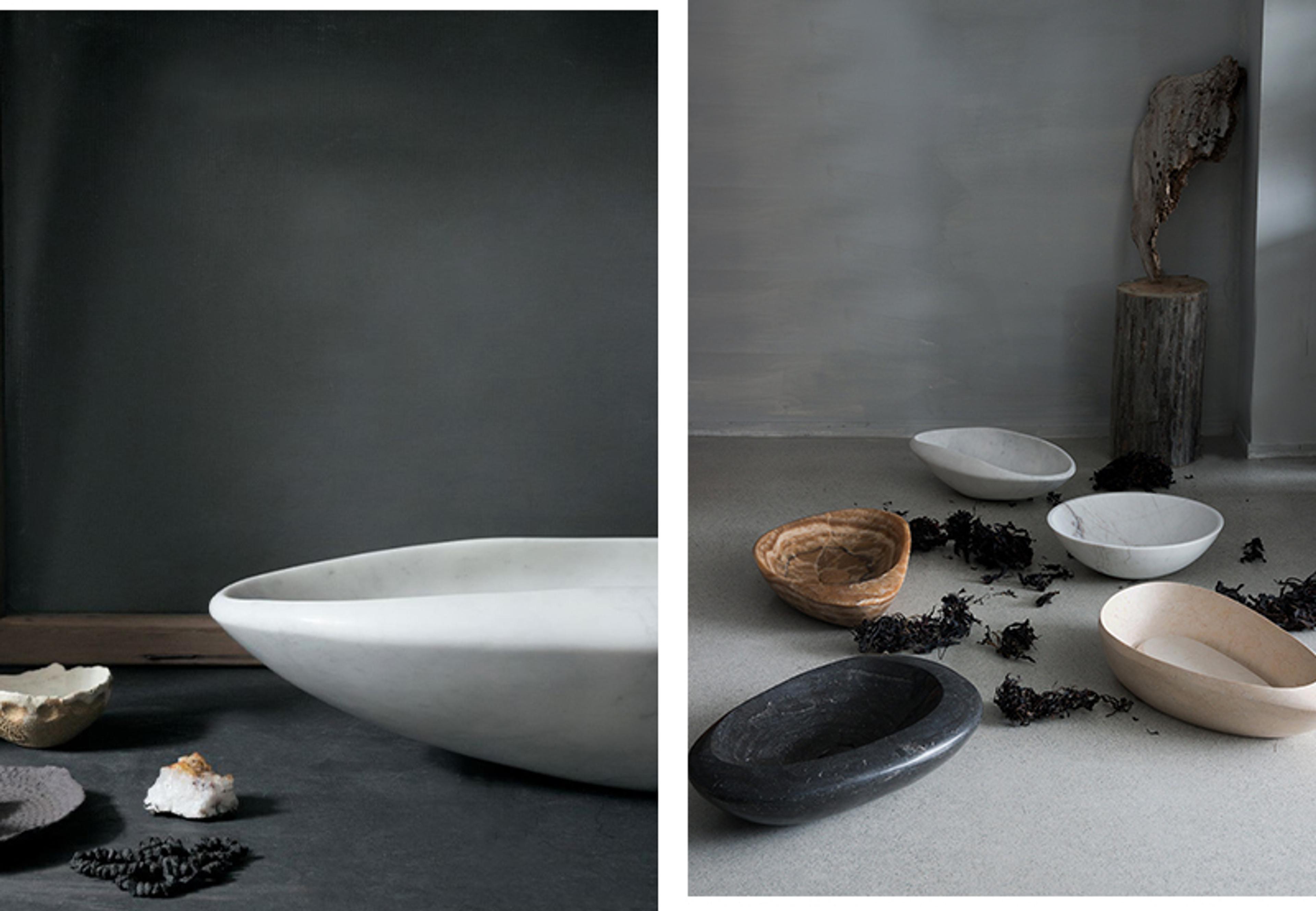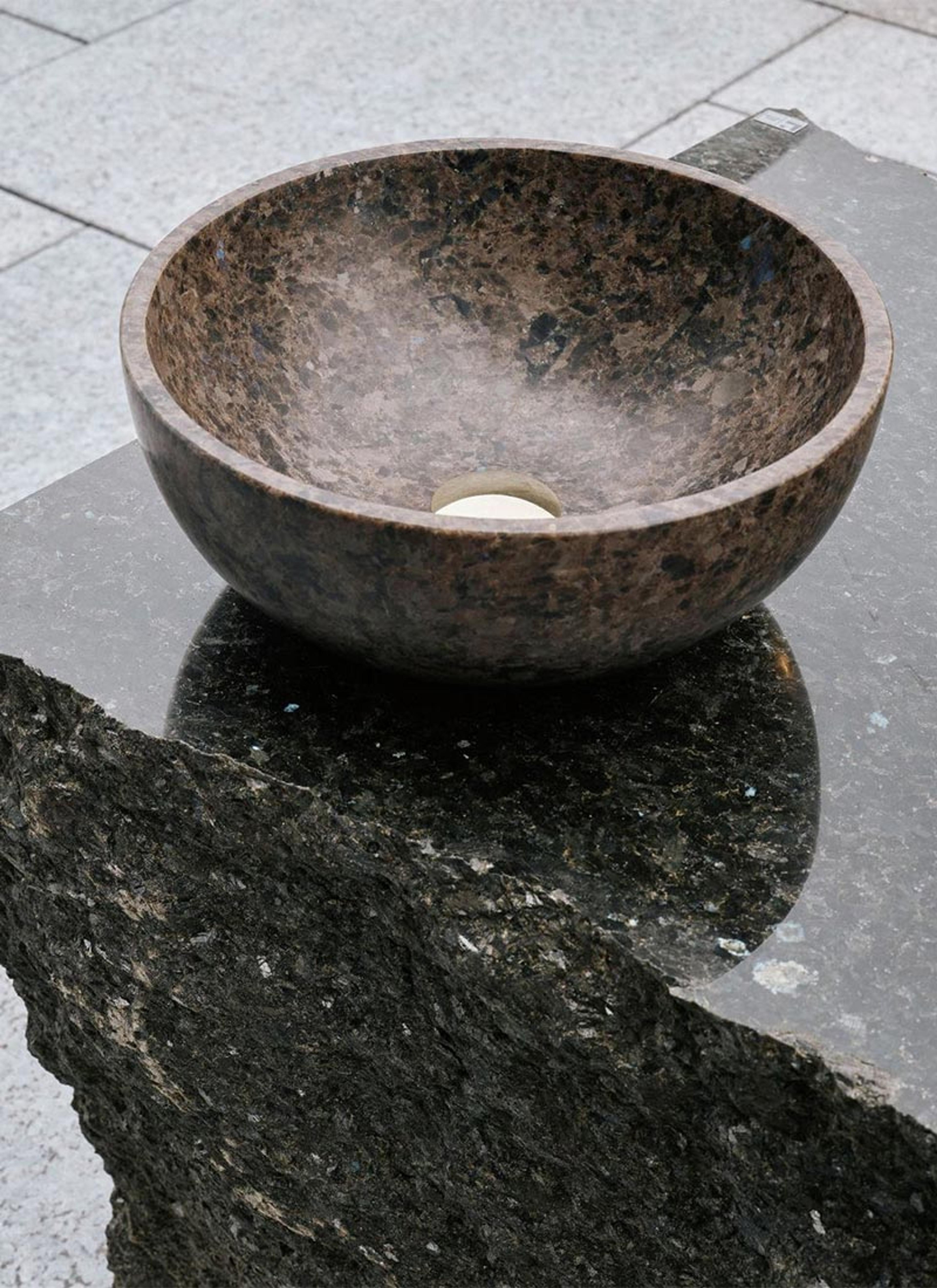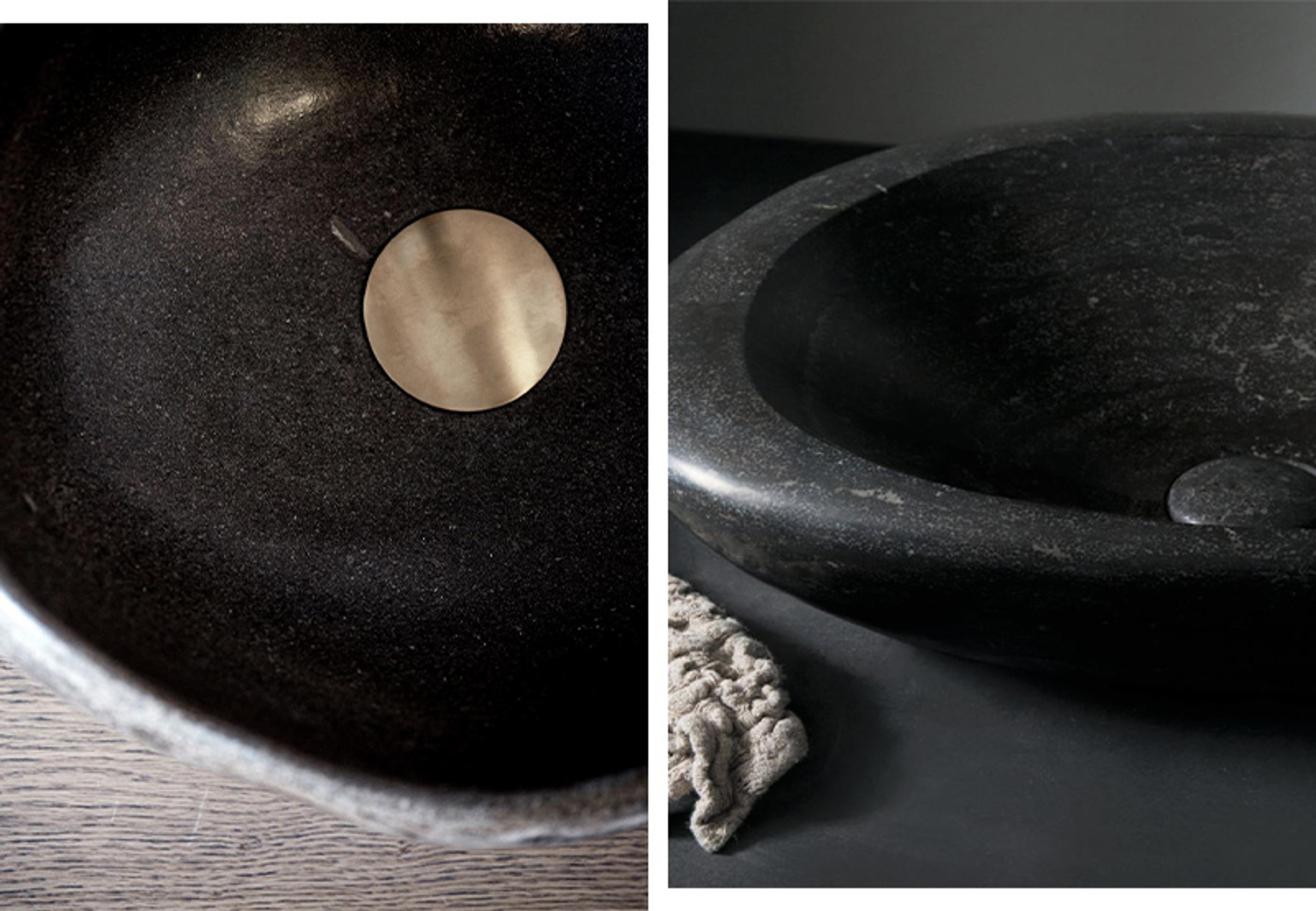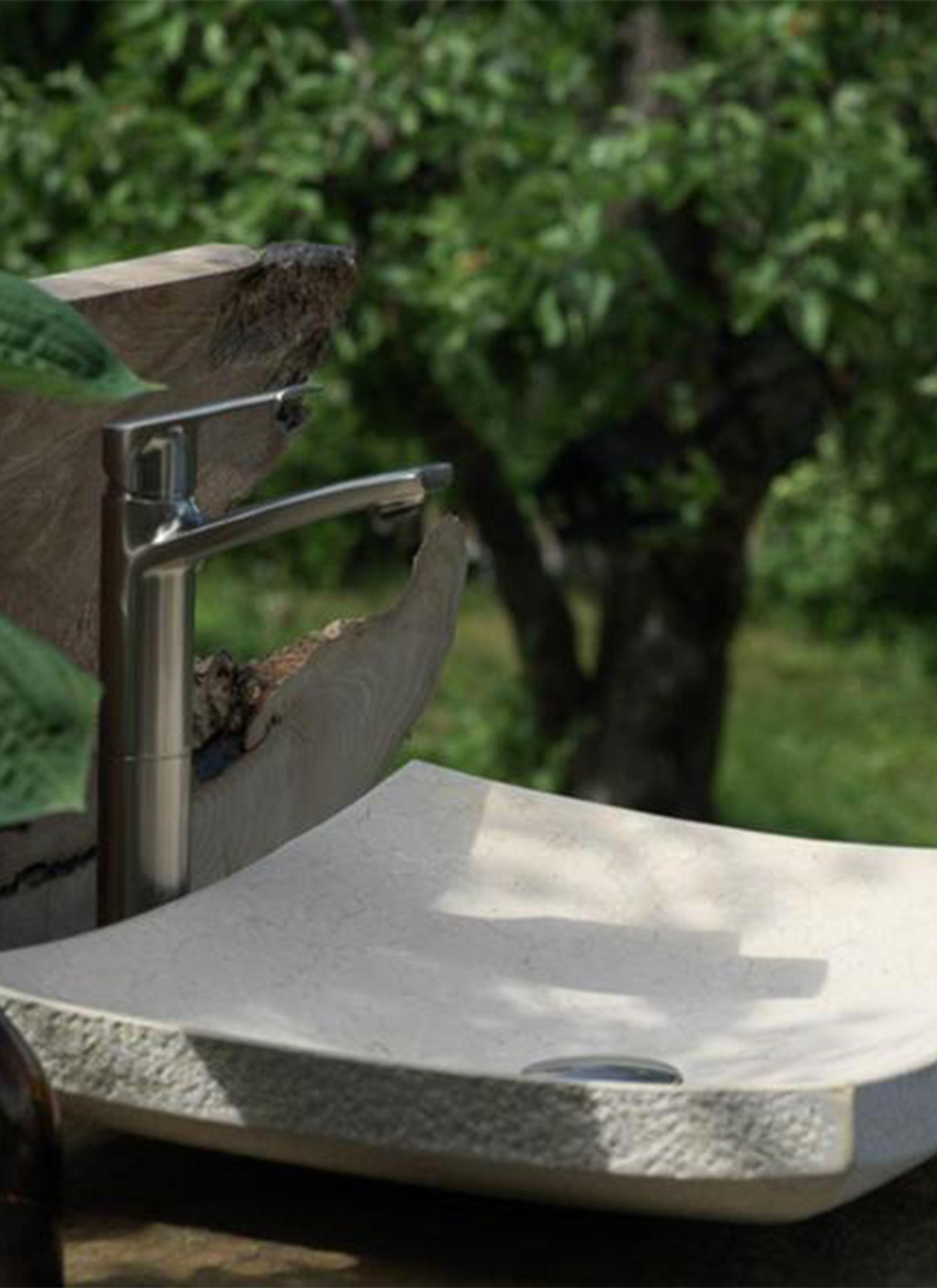 - Med en pusset og glatt innside og en helt naturlig utside med variasjoner i form og tekstur, vasker du hendene i en servant som nesten kommer rett fra steinbruddet.