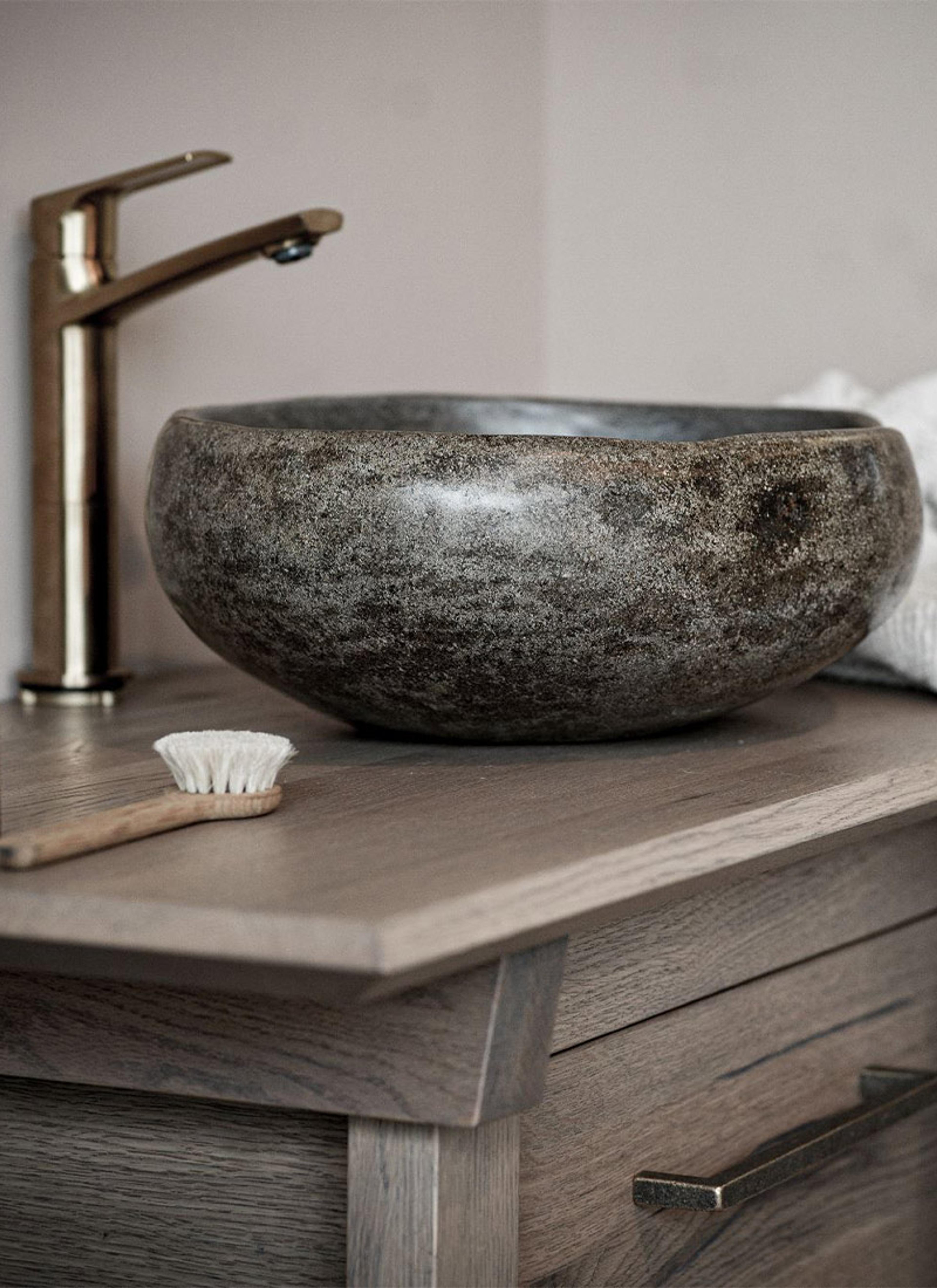 Vedlikeholdsvennlig: Steinservanter: Slitesterke, holdbare, lite vedlikehold | ELVV Antique Saga gråbrun steinservant, anortositt