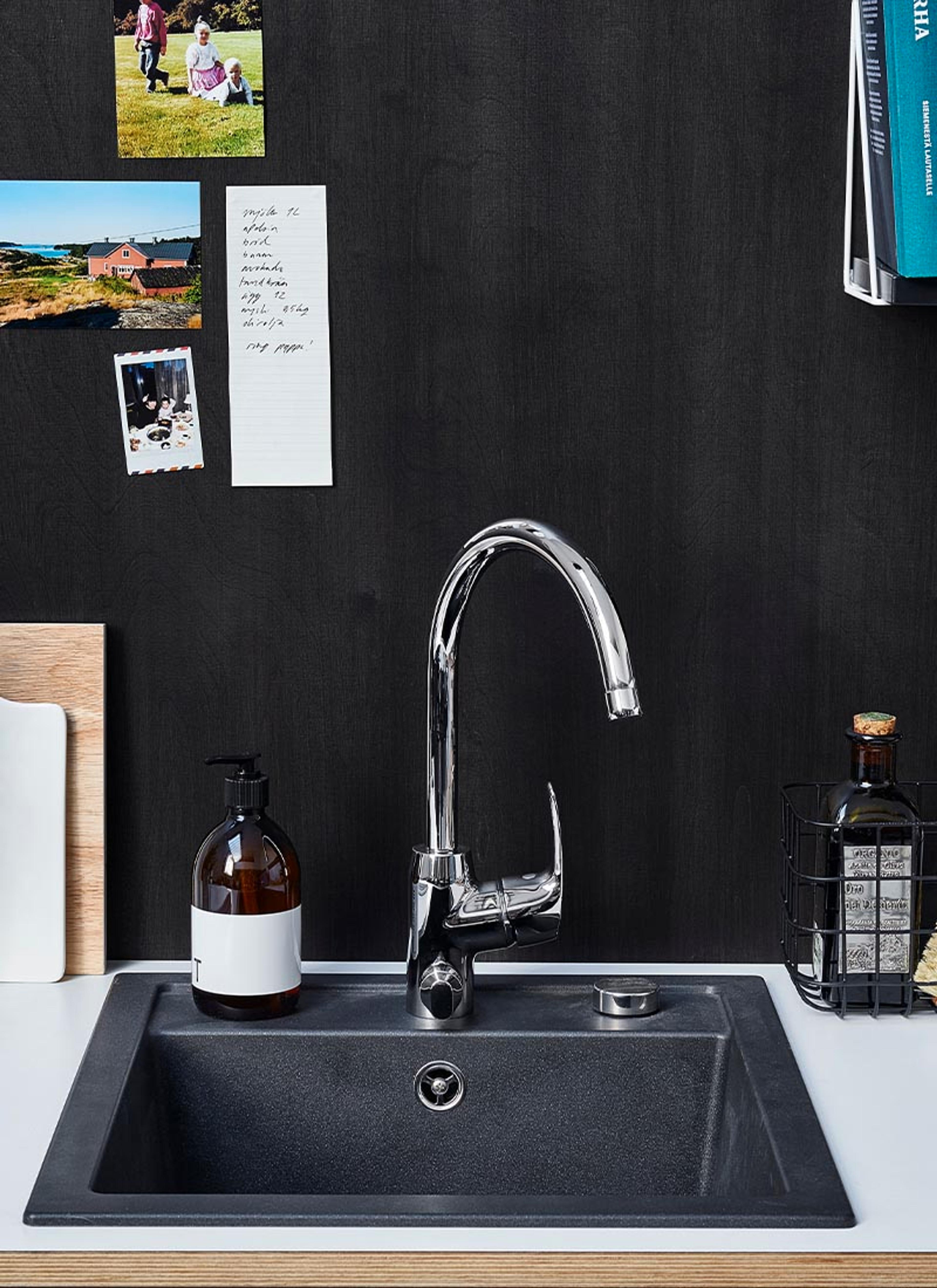 Ønsker du et helhetlig uttrykk på kjøkkenet, kan det være lurt å velge en farge og et design på blandebatteriet som står i stil med oppvaskkummen og resten av kjøkkenet.