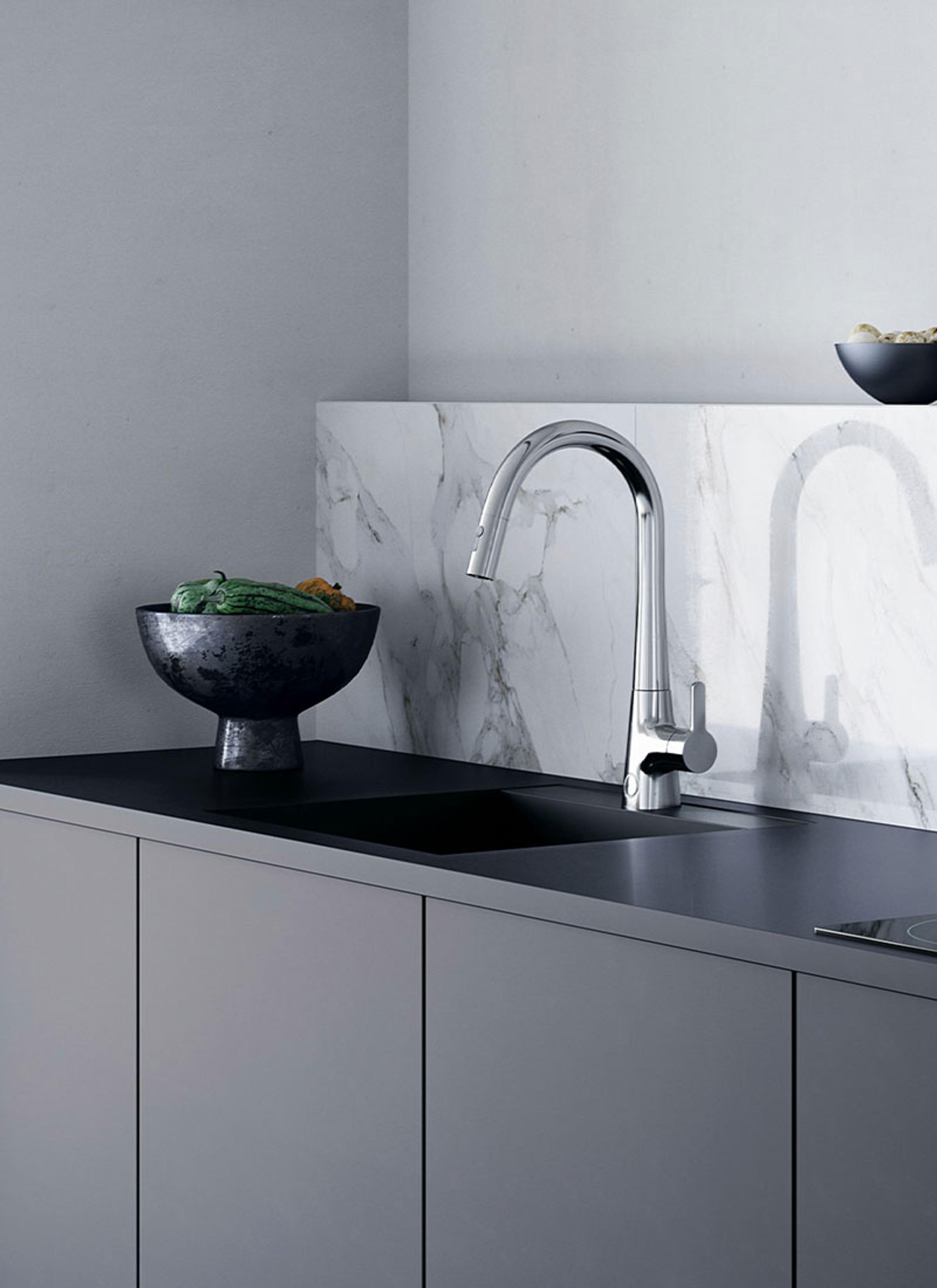 Kjøkken handler om god arbeidsflyt og enkel betjening. Hvis arbeidsflyten går uforstyrret, opplever vi de daglige gjøremålene som hyggelige. Hansgrohe holder derfor en knapp på design som gjør hverdagen enklere.