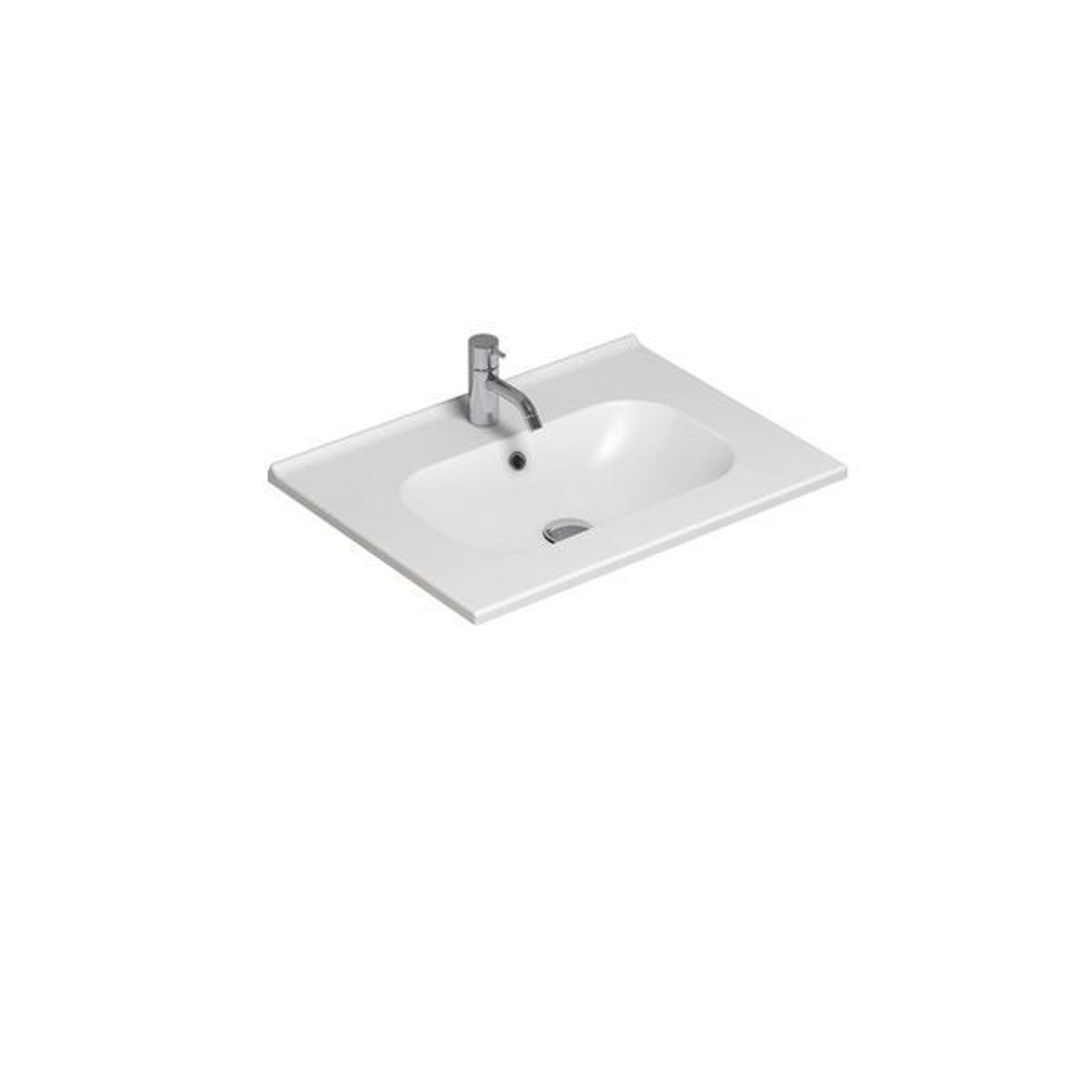 Oppgrader badet ditt med denne stilige og funksjonelle 60 cm brede møbelpakken som kombinerer minimalistisk design og praktiske detaljer. Servanten i sanitærporselen har en moderne, slank design med rene linjer og en ovalt basseng som sikrer både eleganse og funksjonalitet. Overflaten er hard, glatt og lett å rengjøre, noe som gjør den enkel å vedlikeholde over tid. Servantskapet med to skuffer har romslig oppbevaringsplass og er utstyrt med endepaneler i metall, fullt uttrekk, selvlukking og soft-close-demping som sikrer at skuffene lukkes mykt og lydløst. De slanke, kantede håndtakene i blankpolert krom fullfører det moderne uttrykket og er praktiske i bruk. Det kvadratiske speilet med langstrakte lysfelt øverst og nederst gir utmerket belysning til sminke, barbering og hverdagsbruk, samtidig som det skaper en spennende lyseffekt på veggen.