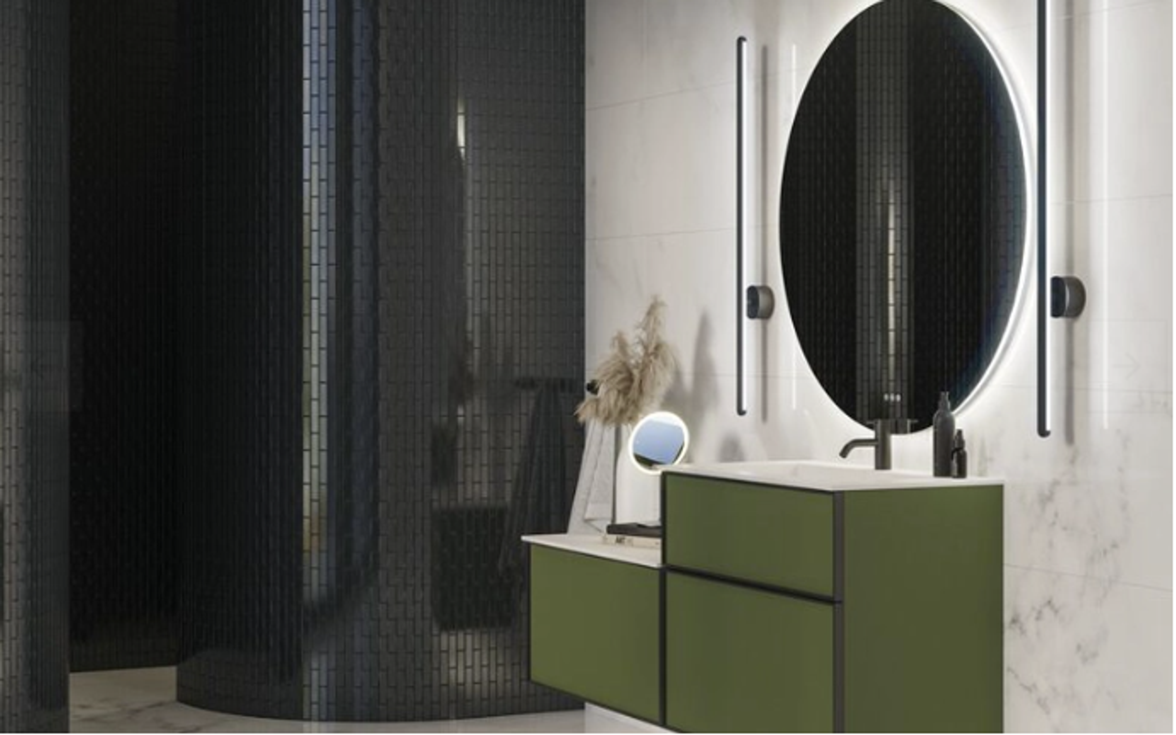 Linear er en stilig og allsidig baderomslampe som tar baderomsdesign til et nytt nivå. Med sin lange, elegante design er den perfekt for å skape en jevn og luksuriøs belysning, enten den plasseres ved siden av speilet eller brukes som rombelysning. Lampens justerbare lysstyrke og fargetemperatur gir deg full kontroll over stemningen - fra skarpt, klart lys for praktiske gjøremål til mykt, varmt lys som innbyr til avslapping. Linear-lampen er 100 cm lang og kombinerer funksjonalitet og design på en vakker måte, noe som passer perfekt inn i det eksklusive baderommet. Lampen har innebygd mottakerenhet. Bemerk: Våre lamper krever kjøp av enten et speil/speilskap med integrert trådløs lysstyring eller en Dansani-fjernkontroll (60708383). Farge: Svart matt