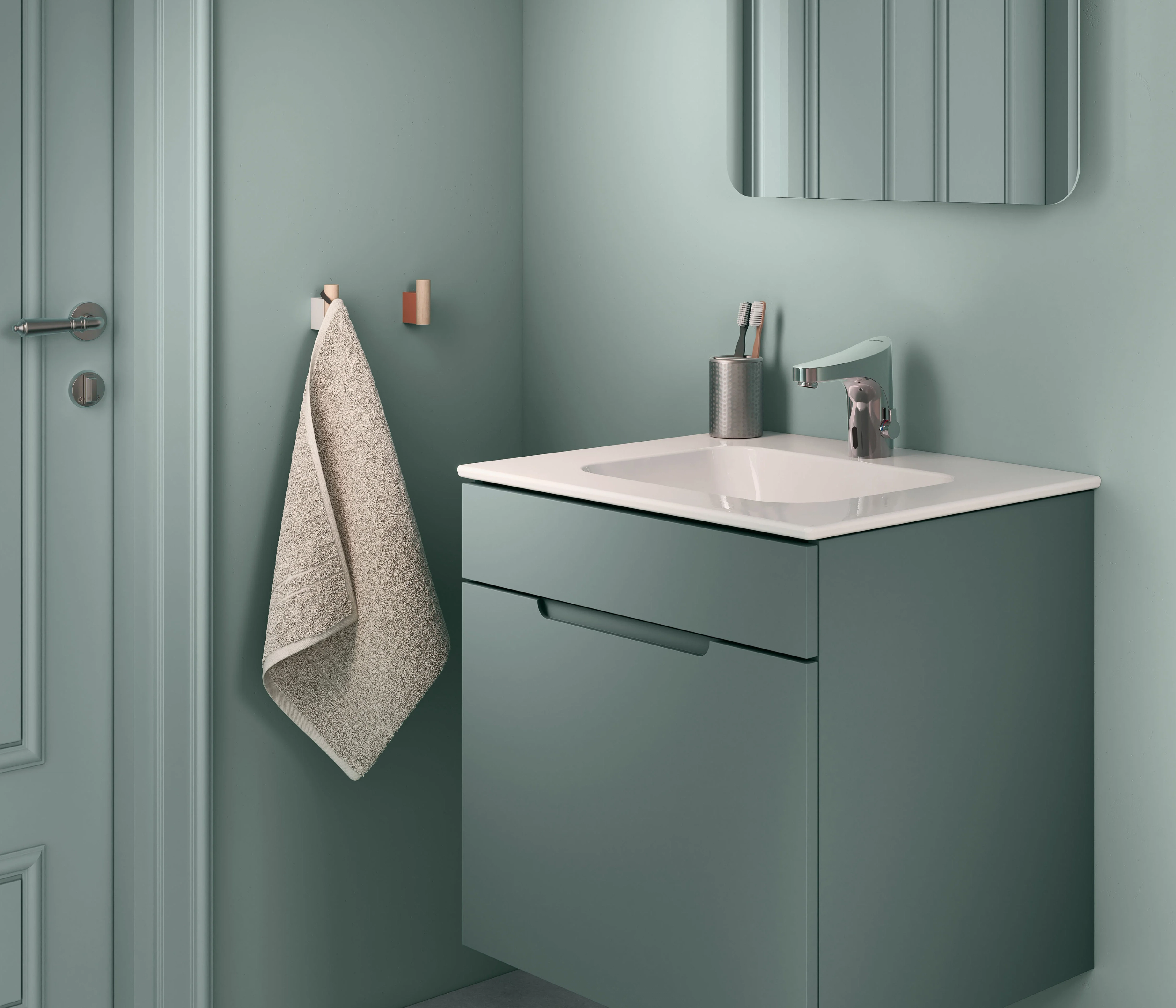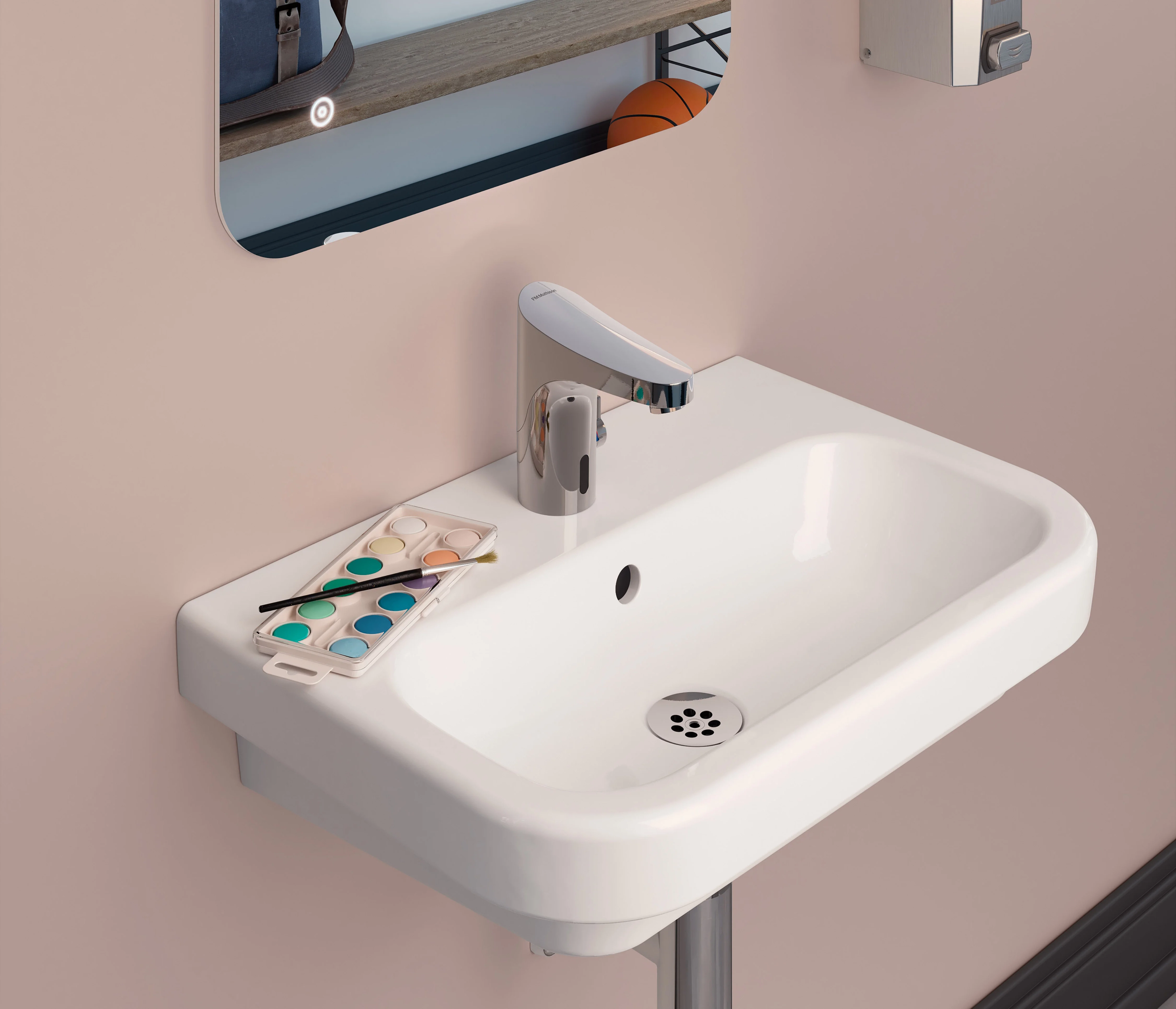 Den automatiske kalibreringen av sensoren gjør det like enkelt å installere som en vanlig servantkran. Temperaturen stilles enkelt på spaken på siden av batterikroppen som er godt synlig, som også går å sperre mot maks varmtvannstemperatur som en skollingsbeskyttelse, eller helt fjerne når du ønsker en forhåndsinnstilt temperatur.