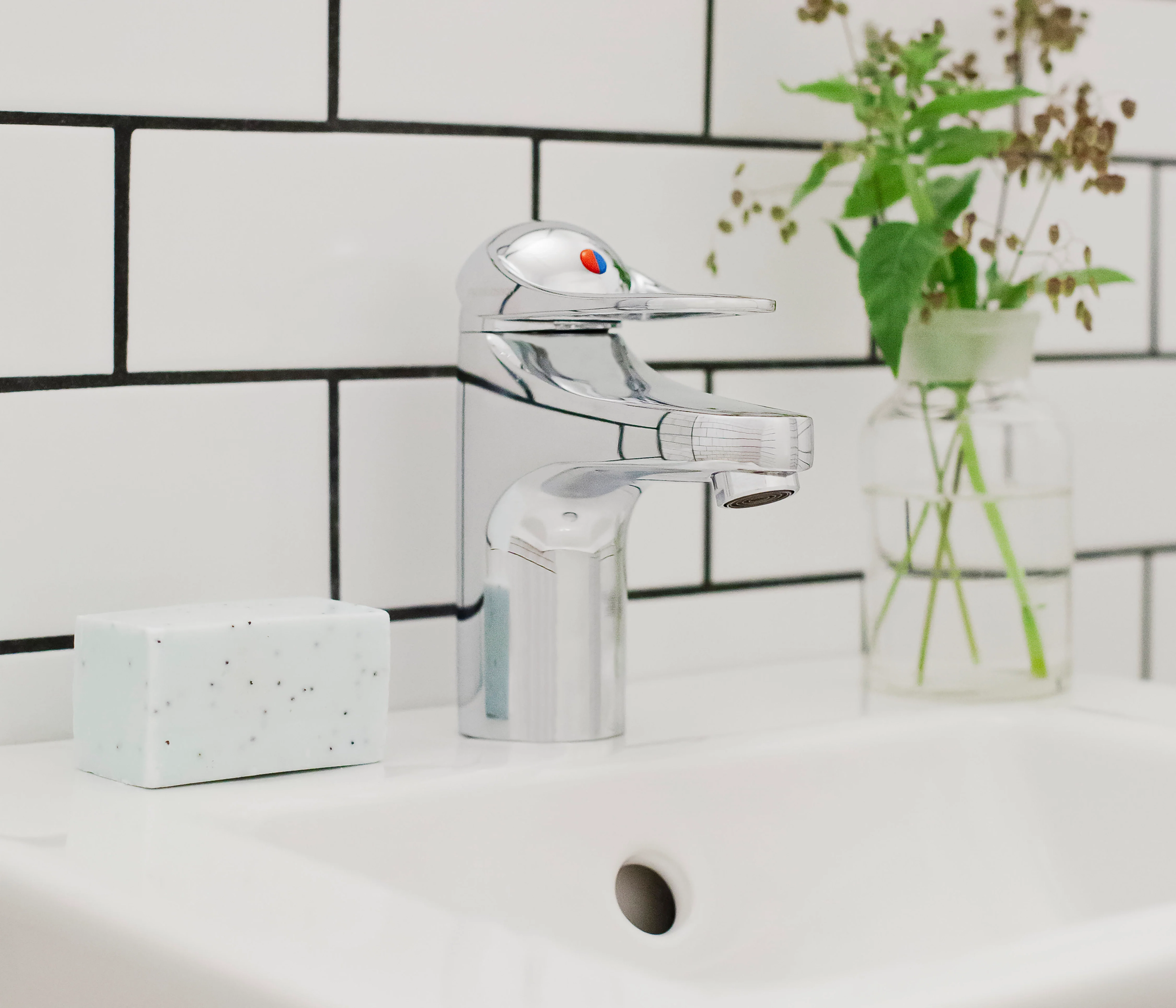Servantkran i ny design. Kranens stilrene design komplemetterer de unike funksjoner og miljøhensynet som kjennetegner 9000E serien. Den unike teknikken sparer vann og energi uten at det går på bekostning av bekvemligheten for deg som bruker.