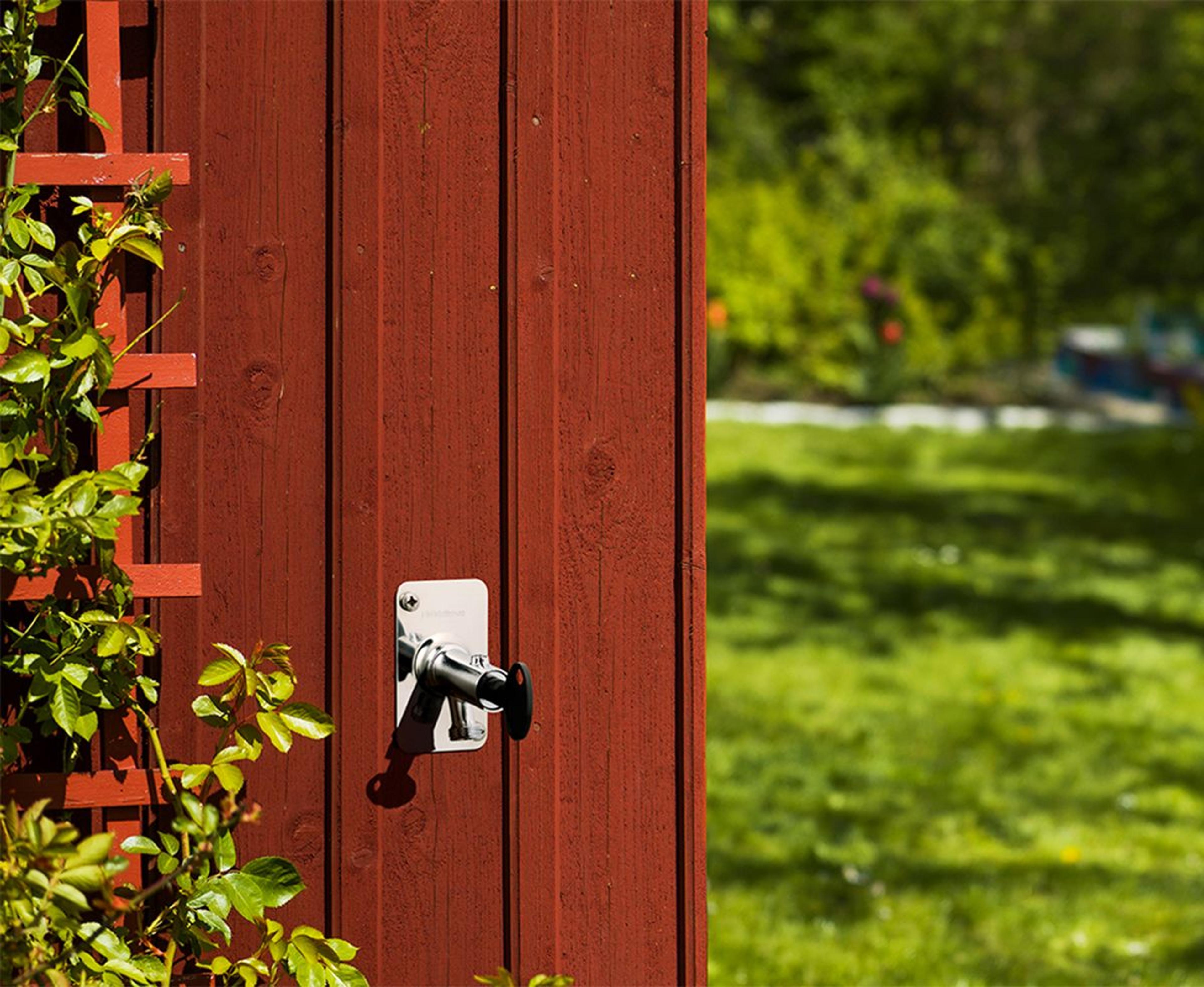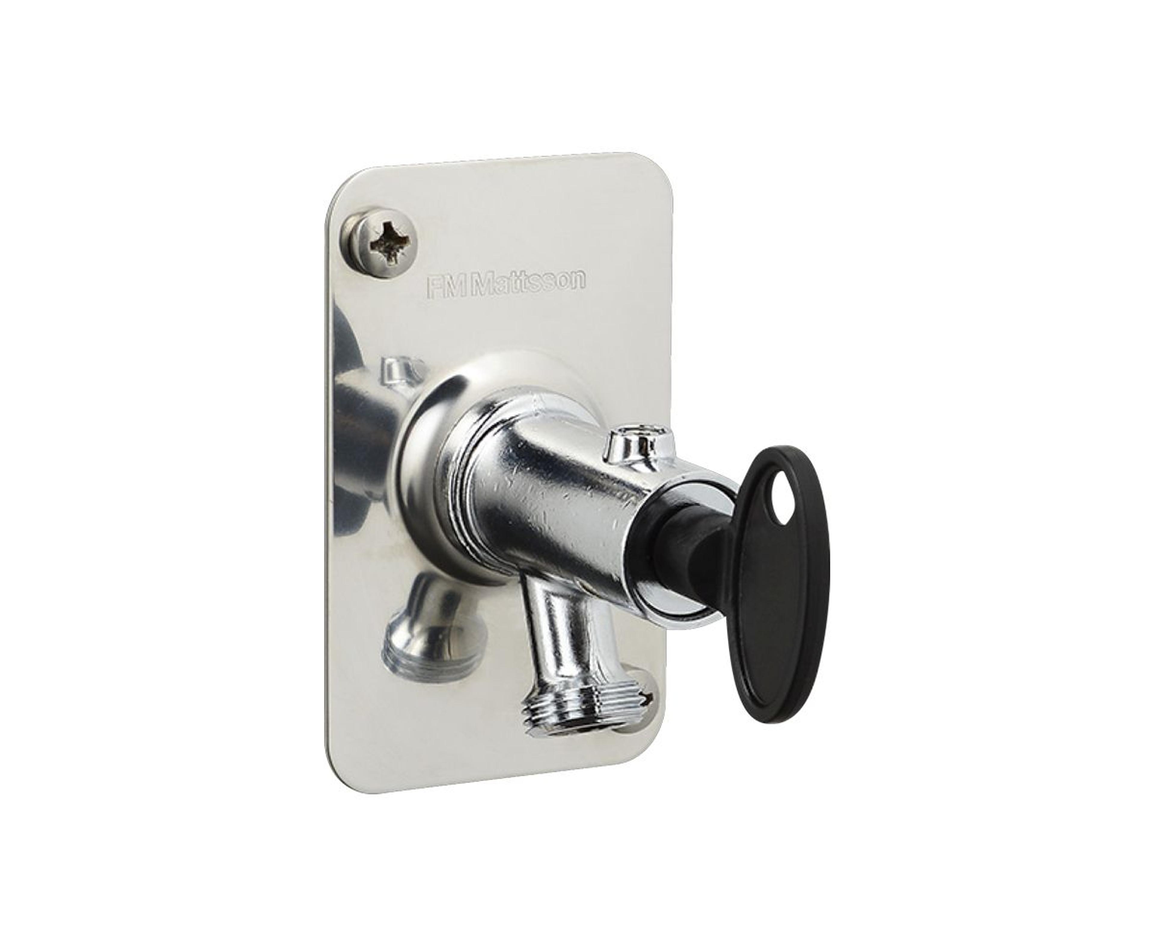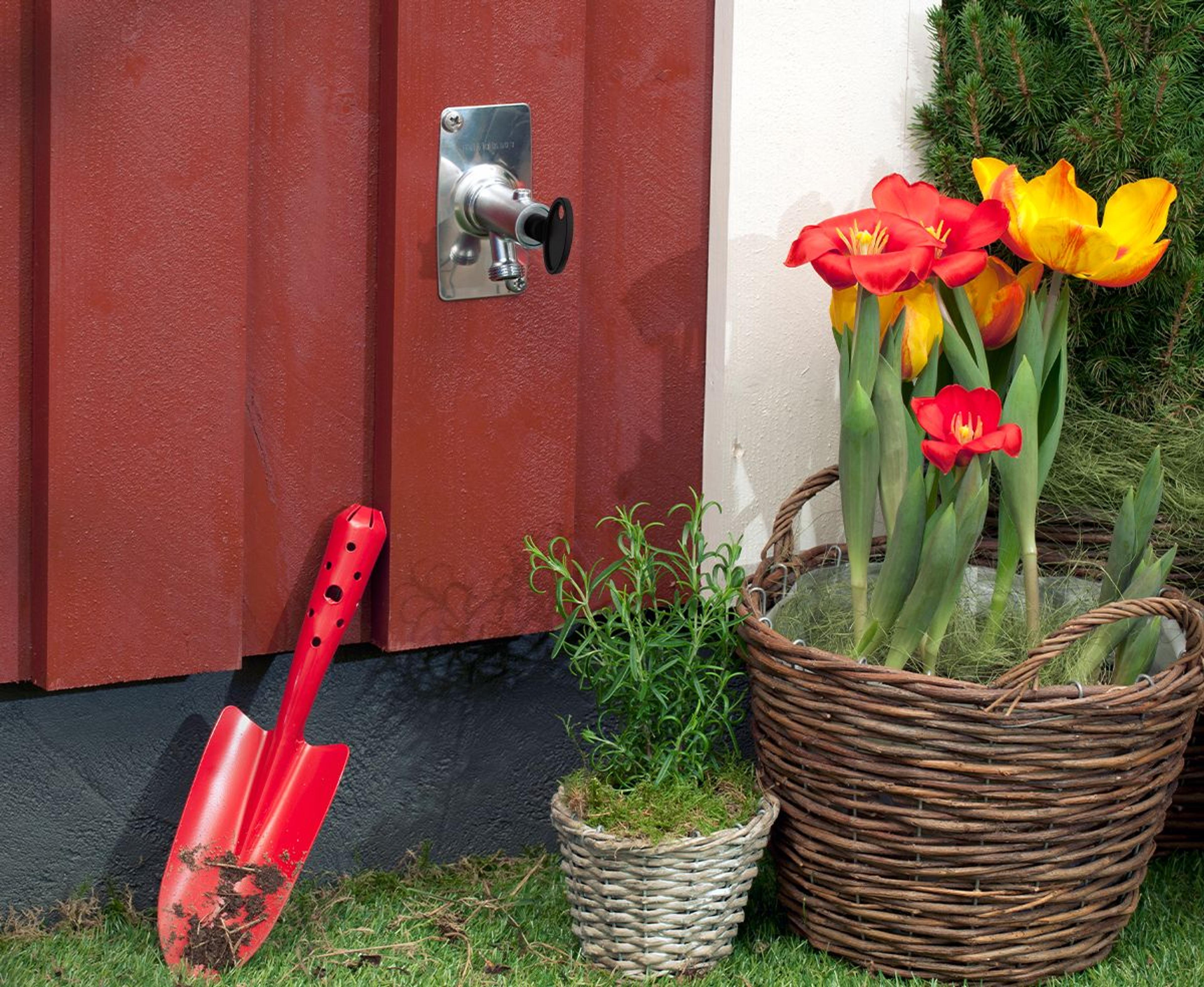 Utekran med nøkkel og tilbakeslagsventil. For veggtykkelse på maks 40 cm. Utekranen er selvdrenerende.