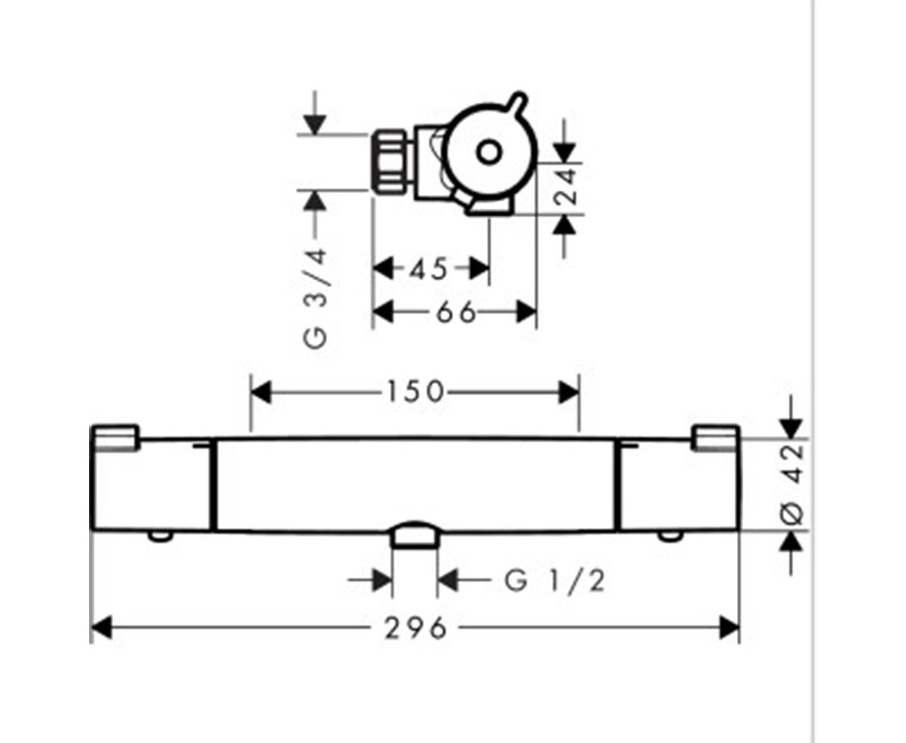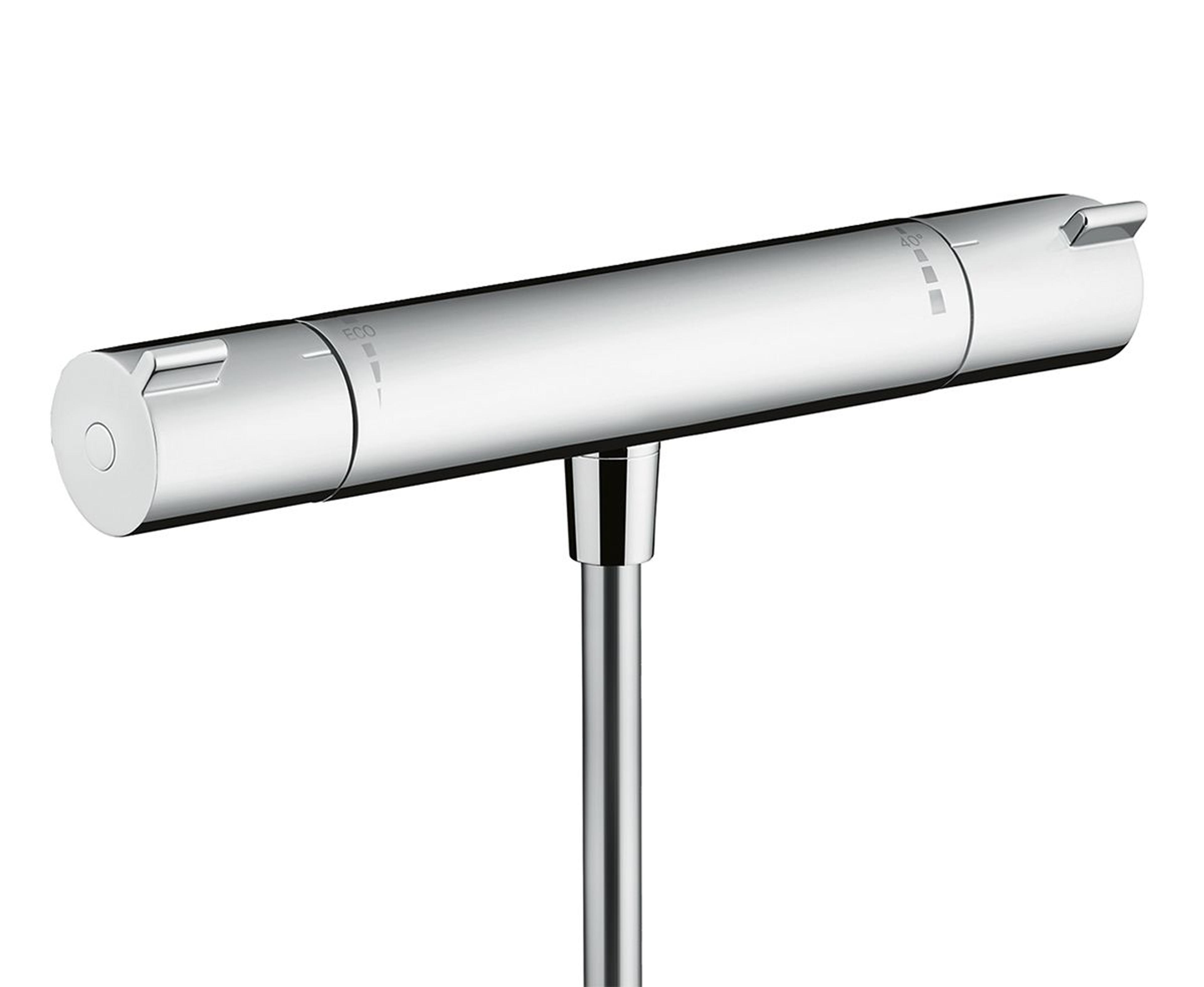 Dusjtermostat i slank design og høy kvalitet med metallgrep. Med skoldesperre ved 40 °C, innstillbar temperaturbegrensning og mulighet til vannsparer. Leveres uten S-koblinger og rosetter. Farge: Krom