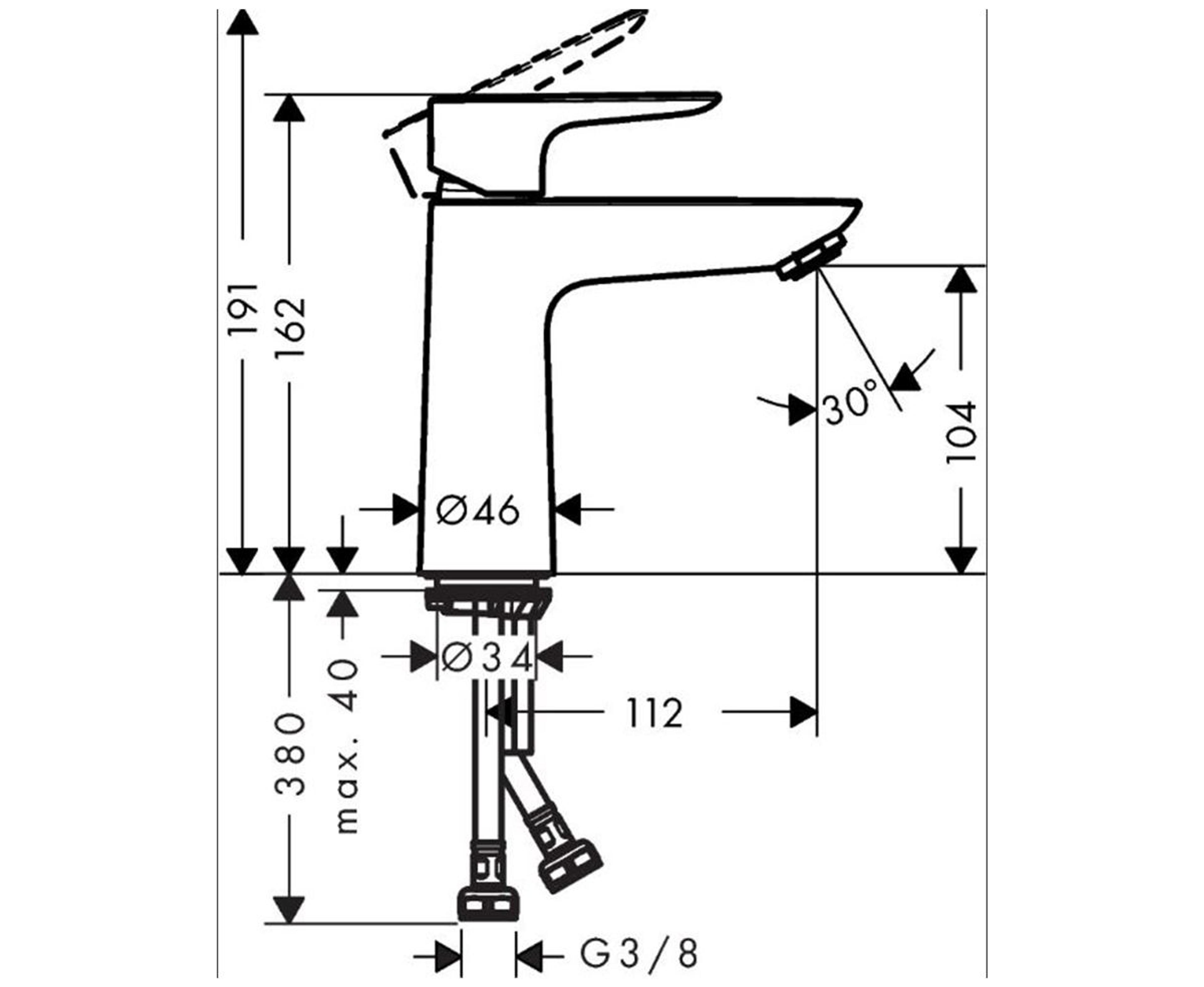 1-greps servantarmatur i moderne design som kombinerer flater og rundinger. Med vannsparer til max. 5 l/min og 5 års garanti. Uten bunnventil.