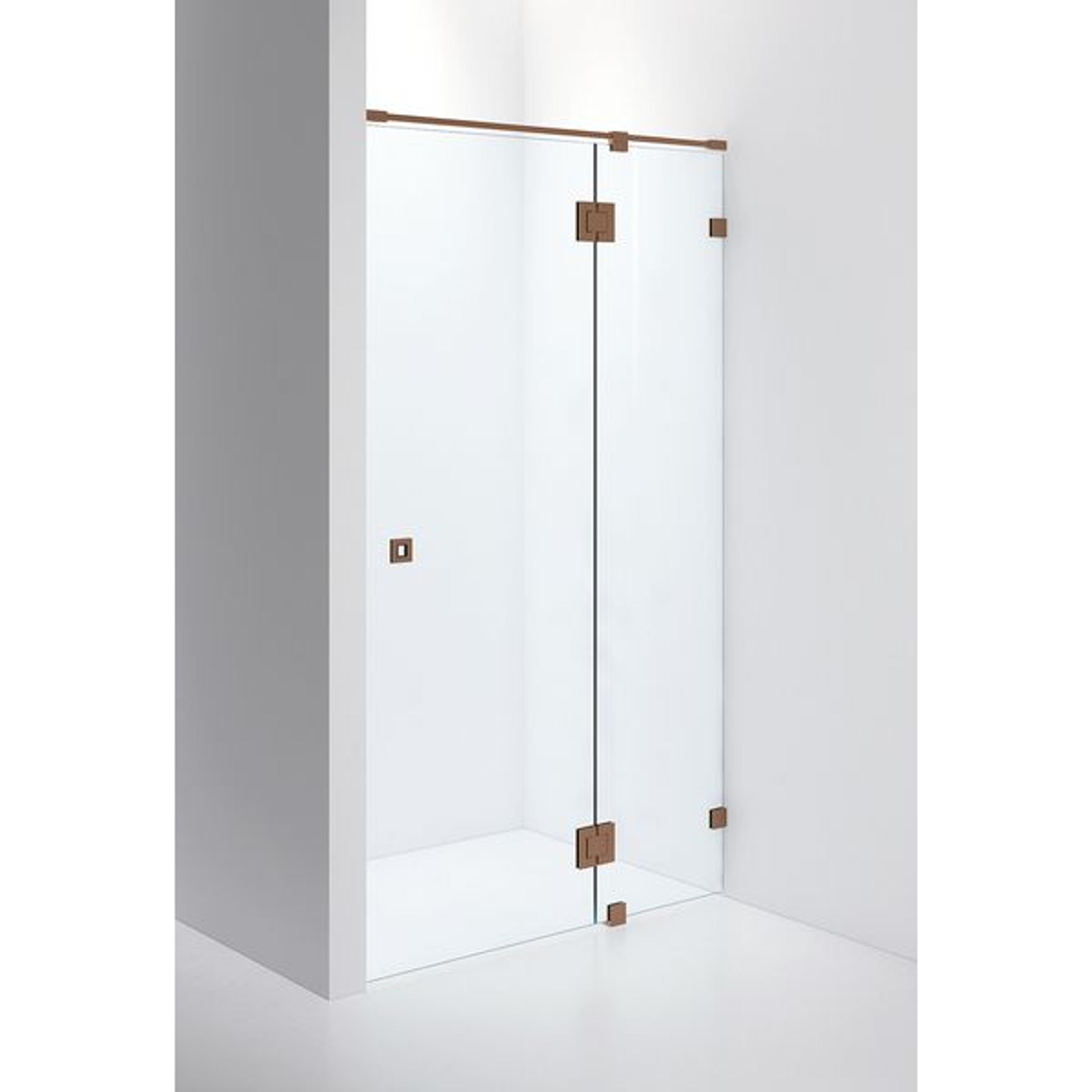 En fast vegg og en dør i 8 mm glass. Måltilpasses innen angitte intervaller. Tilpasses enkelt etter akkurat dine mål.