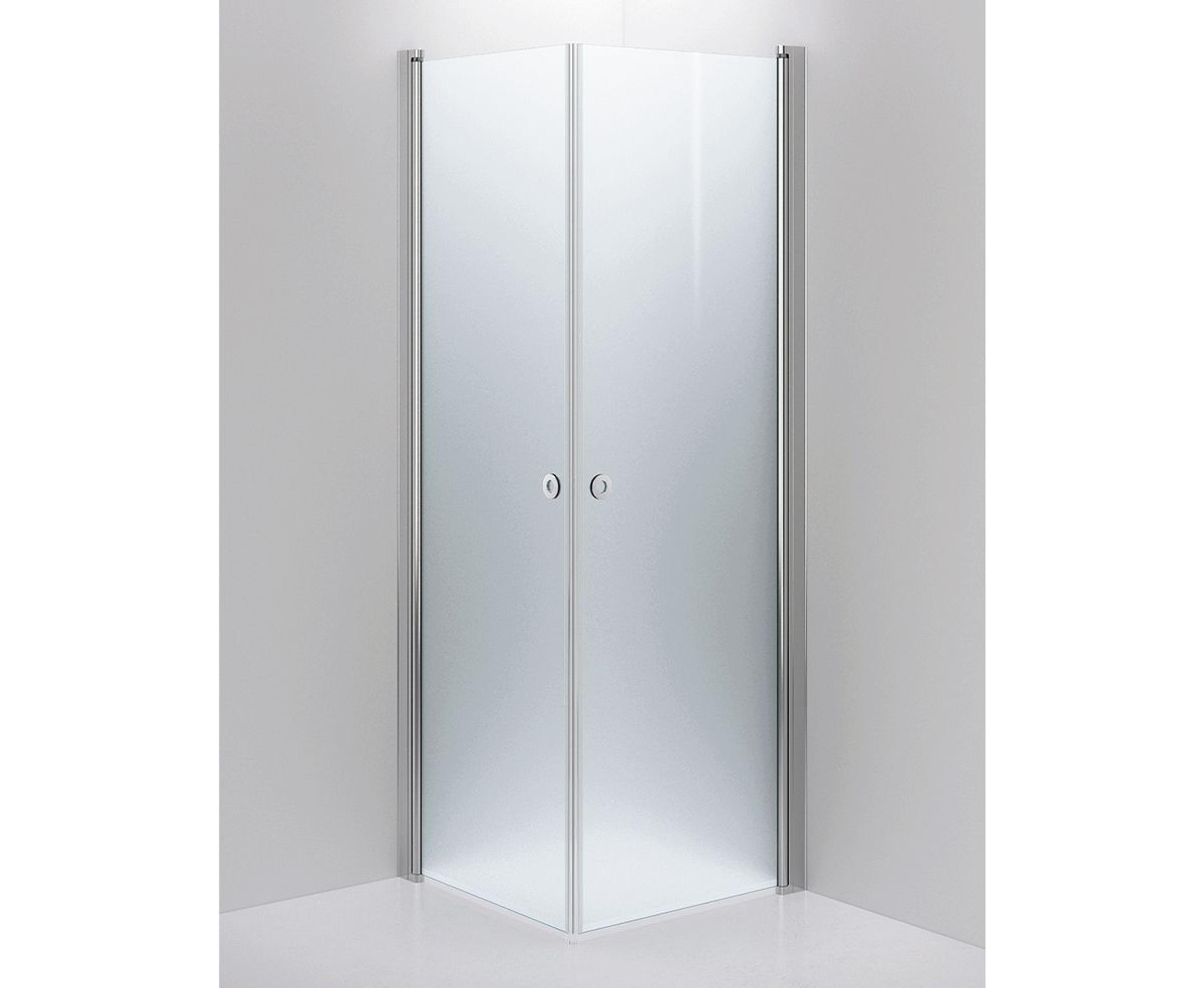 Dusjhjørne med frostet sikkerhetsglass og blank krom profiler. Dusjhjørnet har høy kvalitet, som leveres i flere forskjellige størrelser, glasstyper og profilfinish. Dørene er vendbare, og er utstyrt med hev-/senkbeslag. Alle dusjvegger fra INR er laget med termisk herdet sikkerhetsglass. Mål: 70x70 cm