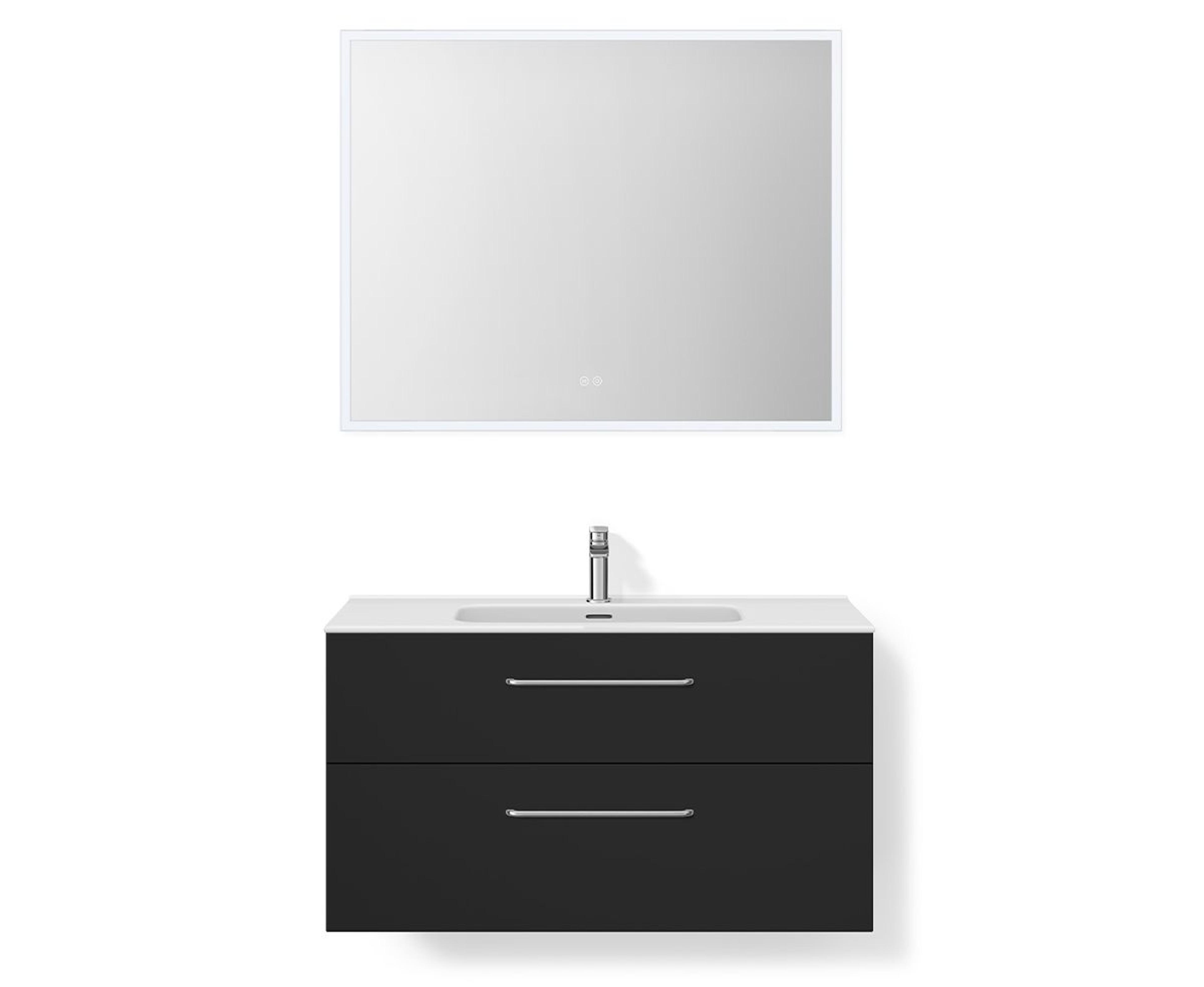 Baderomsmøbel i Grå Matt som inkluderer servantskapet (99,7x55x45,6 cm) med to skuffer og håndtak i krom. Heldekkende tynn porselensservant (101x17x46 cm) i hvit og firkantet speil (100x80x3,5 cm) med dimbart kaldt og varmt lys, og antidugg. Pris uten servantkran.