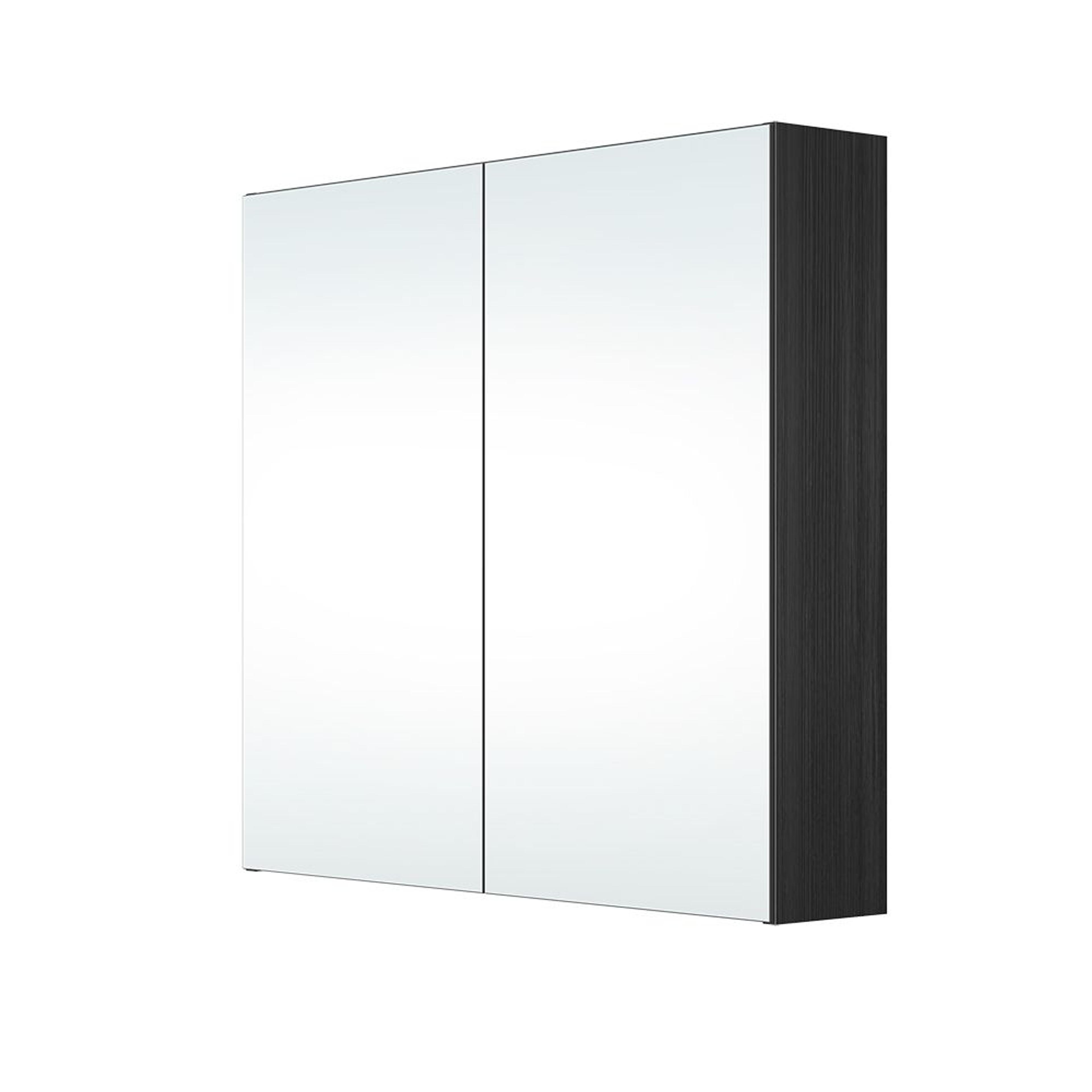 Leveres komplett med elegant Led-lampe, 2 flyttbare hyller i sotet glass, skinne for montering og festemateriell. Dobbeltsidige speildører med soft-close funksjon forsterker en eksklusiv følelse. Smidig tilgang til integrert stikkontakt og lysbryter. LED belysning med fargetemperatur på 4000 K gir en perfekt lysatmosfære på badet. LED lampe og stikkontakt er testet og godkjent for IP44. Bredde: 80 cm. Farge: Sort Eik