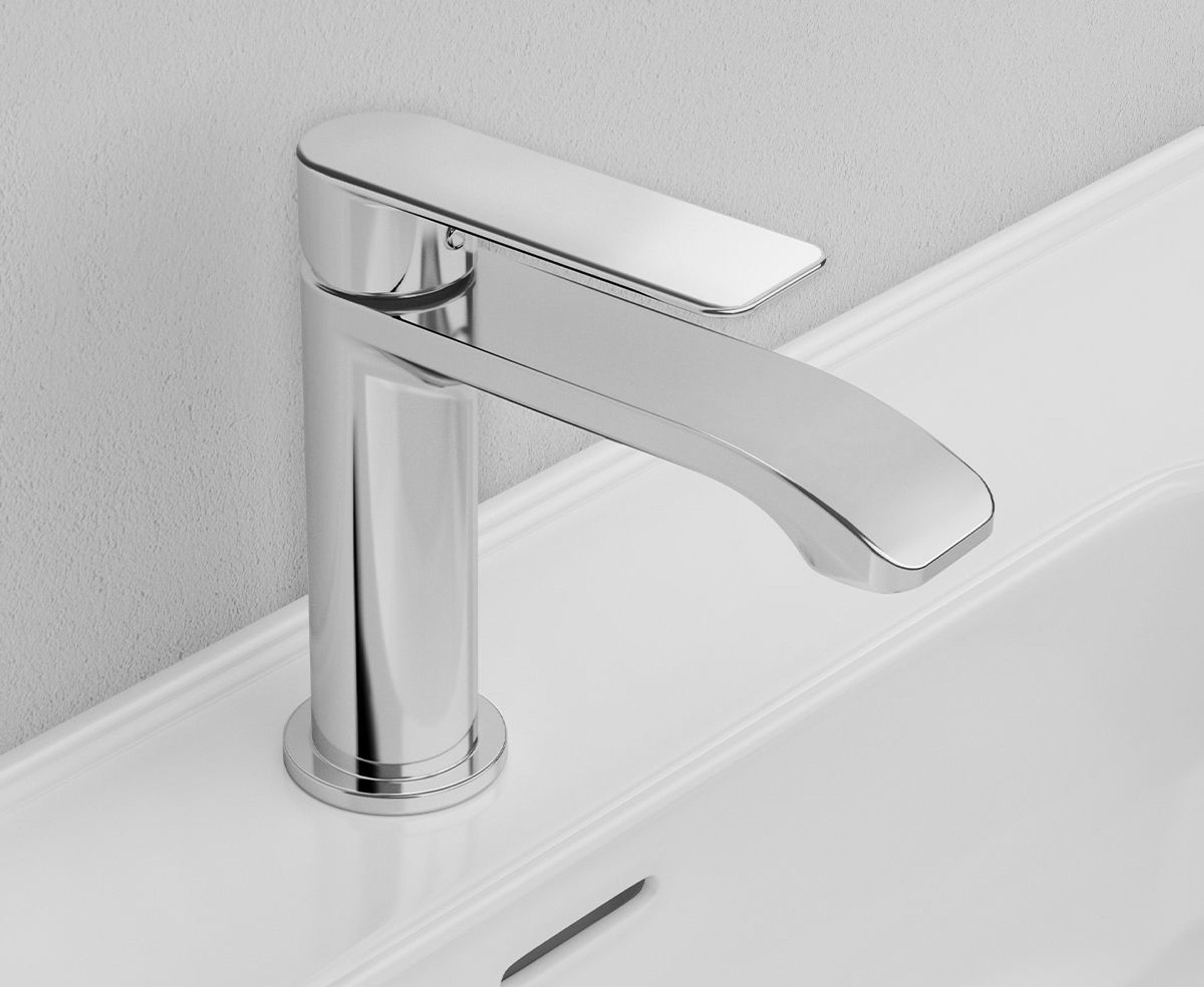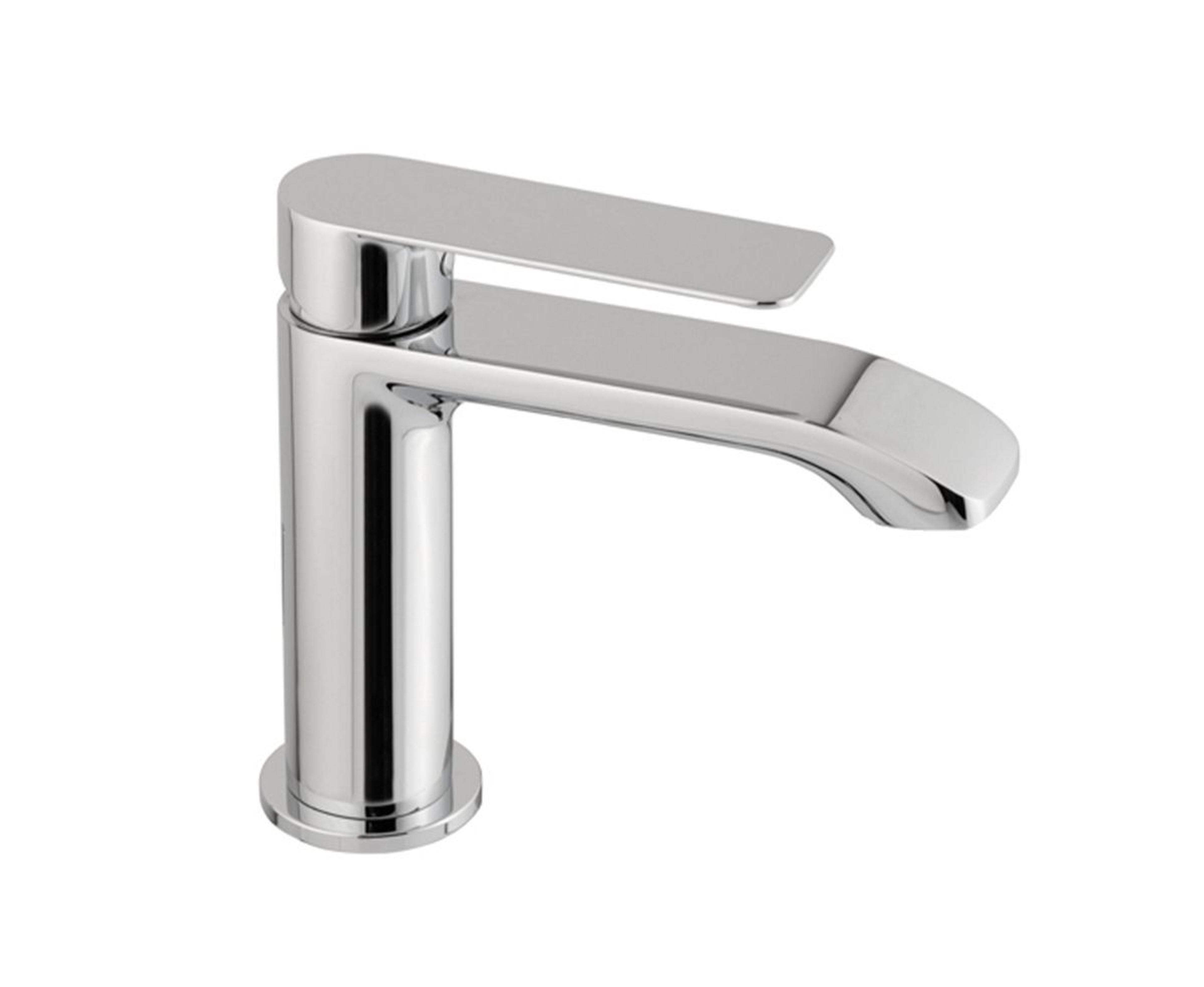 Servantkran med ettgreps betjening i moderne design. Kranen er utstyrt med keramisk innmat og fleksible tilkoblingsslanger. Finnes i høy modell og flere farger. Farge: Krom
