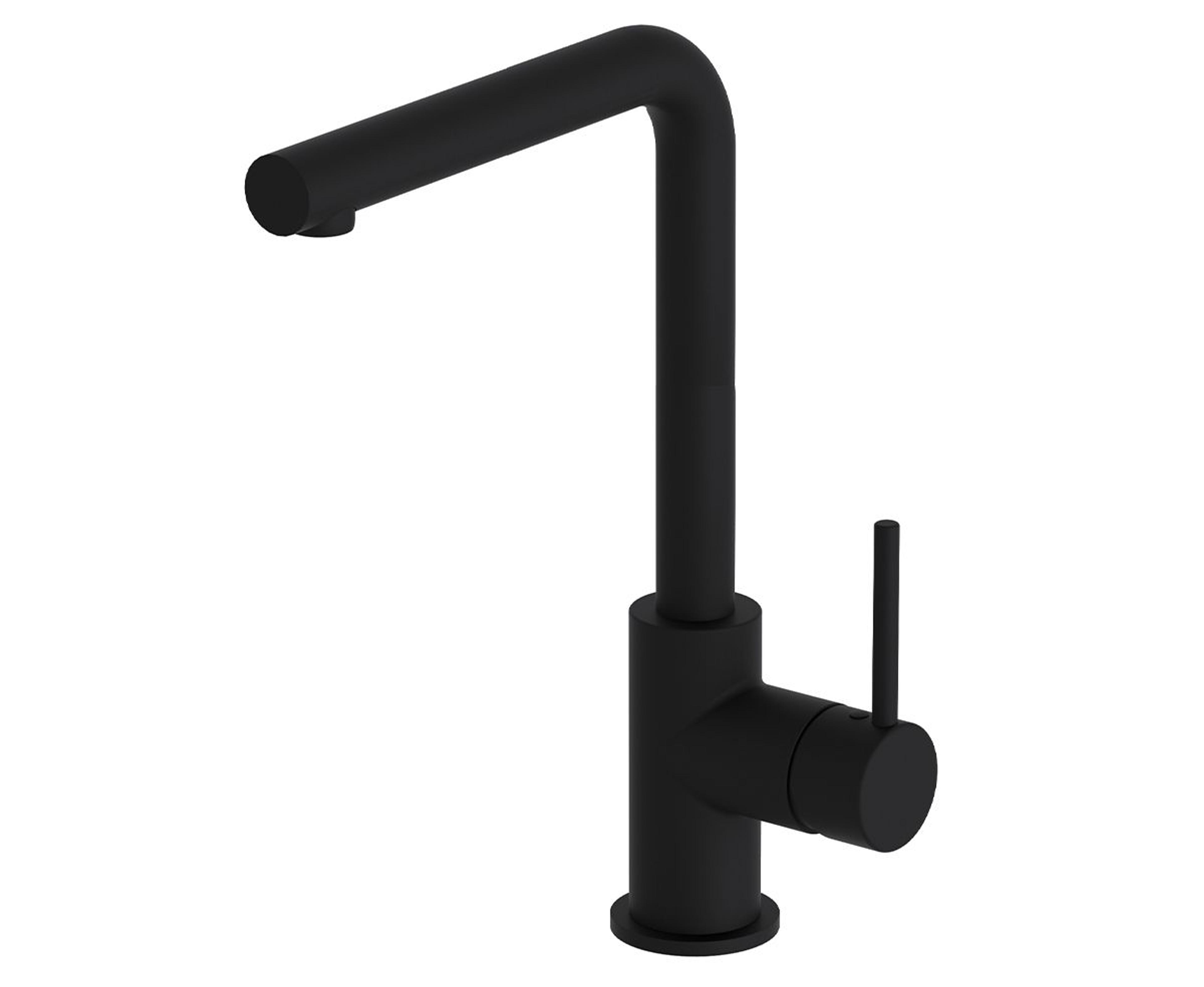 Kjøkkenkran med ettgreps betjening med svingbar tut og fleksible slanger. L-formet tut. Solid og driftssikkert i et slankt og moderne design. Velg mellom krom og sort matt. Farge: Sort Matt