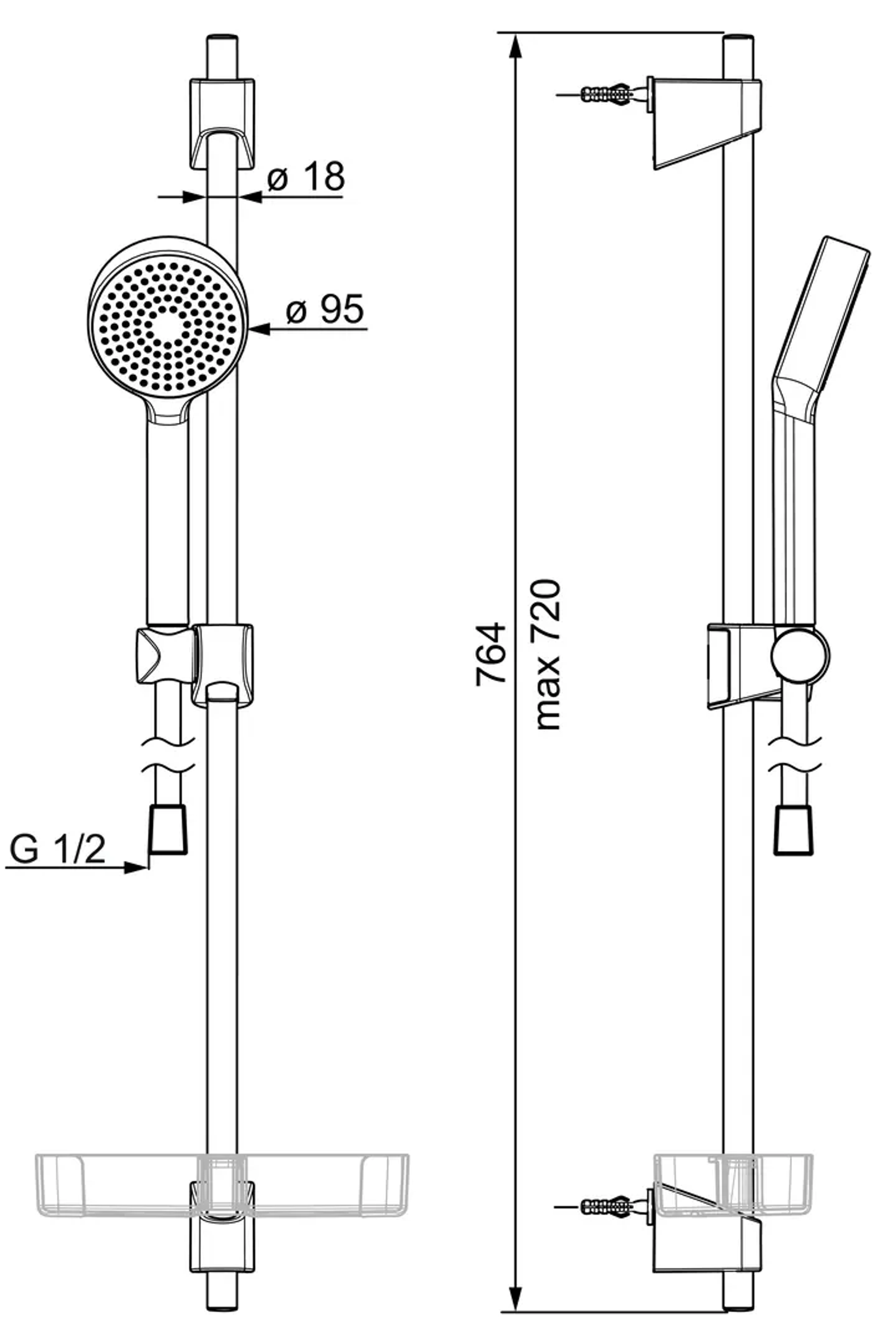 - Med dusjstang og håller