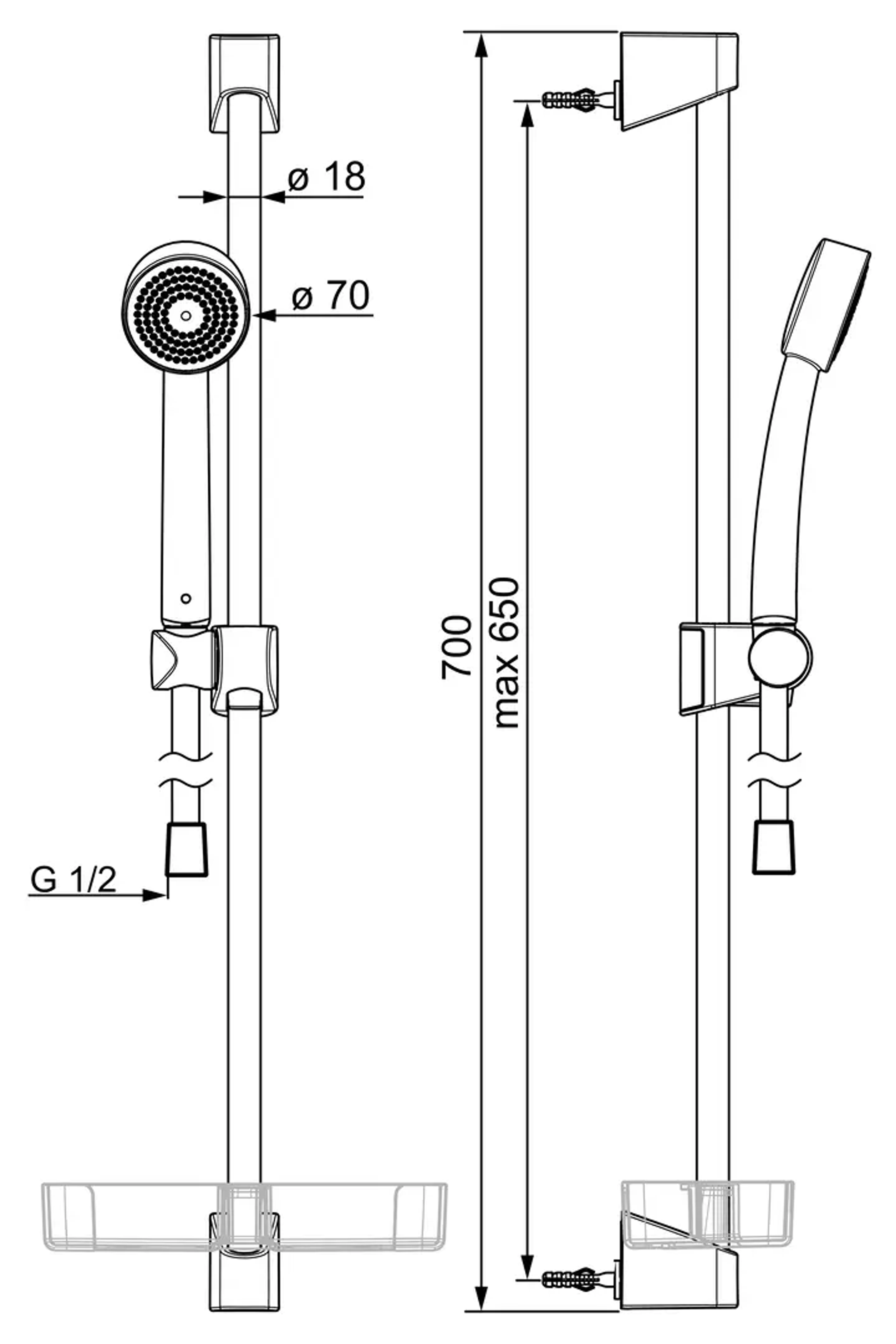 - Med dusjstang og håller