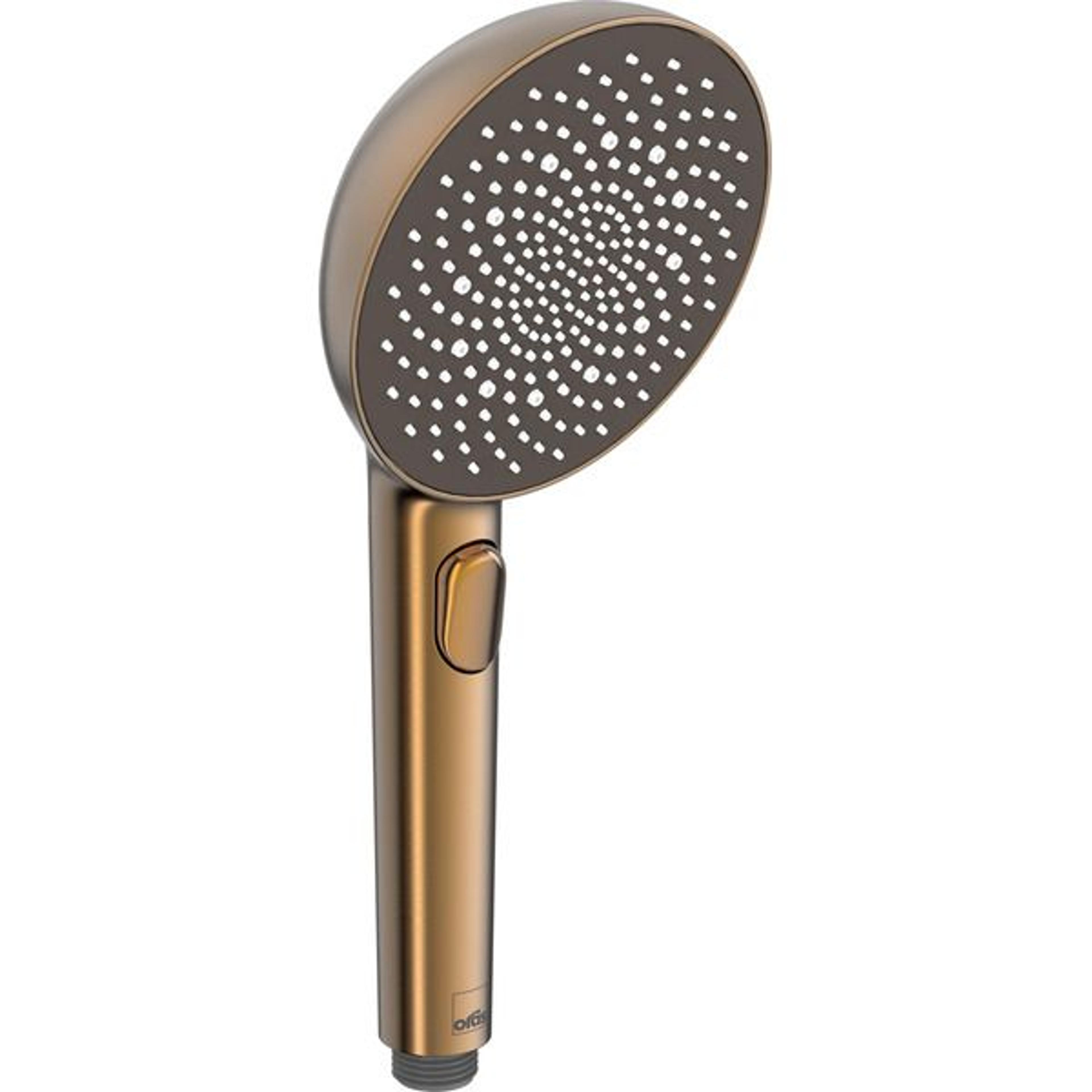 Aurelia henter designinformasjon fra elementer i naturen. Hånddusj i børstet bronse 110mm - tre stråletyper hånddusj trykknapp for enkelt valg av stråletype