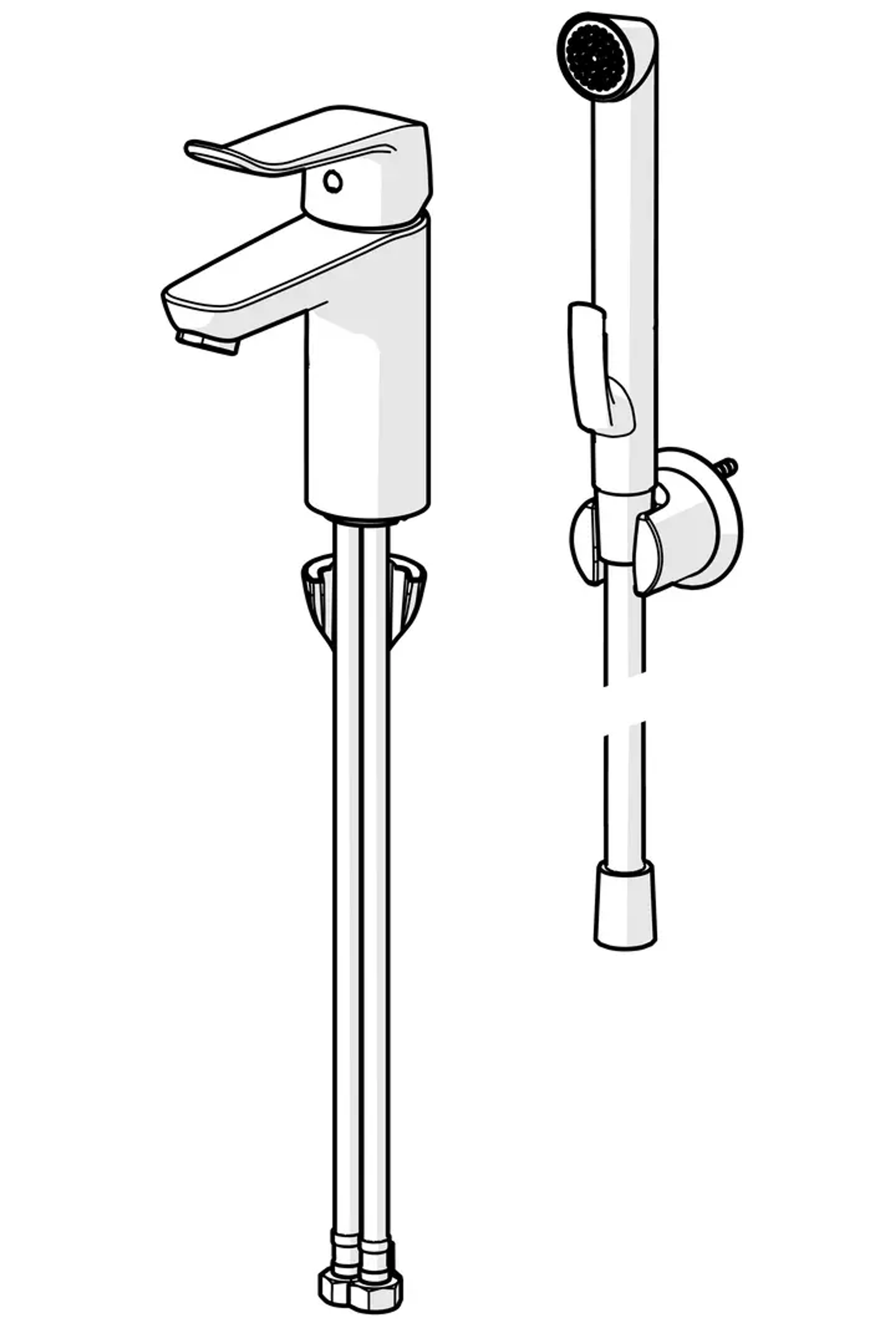 Oras Care servantkran med Bidetta hånddusj. Ergonomisk hendel som gir god brukervennlighet for alle situasjoner. Mulighet for fast temperatursperre og justering av vannmengde. Fleksible slanger