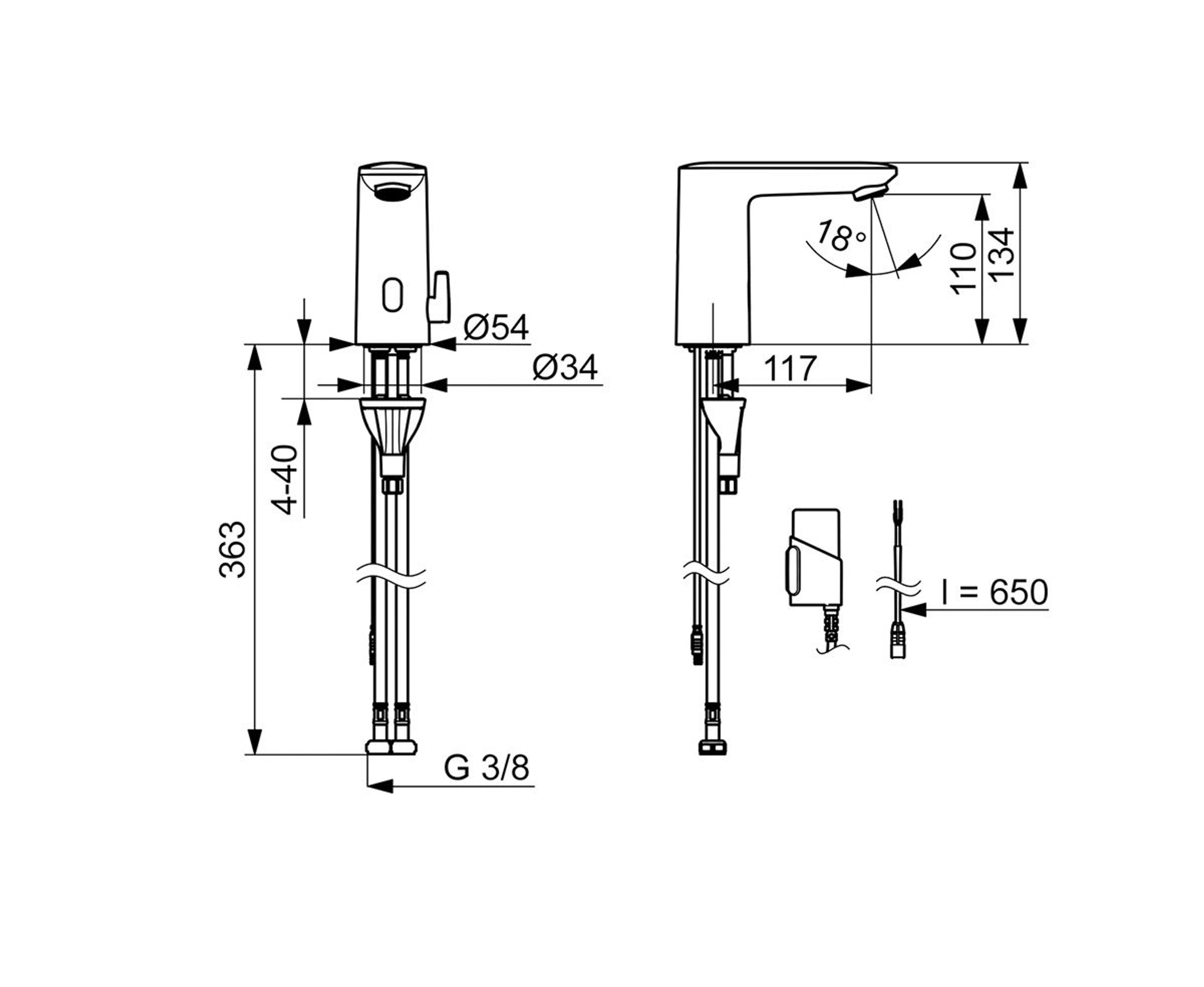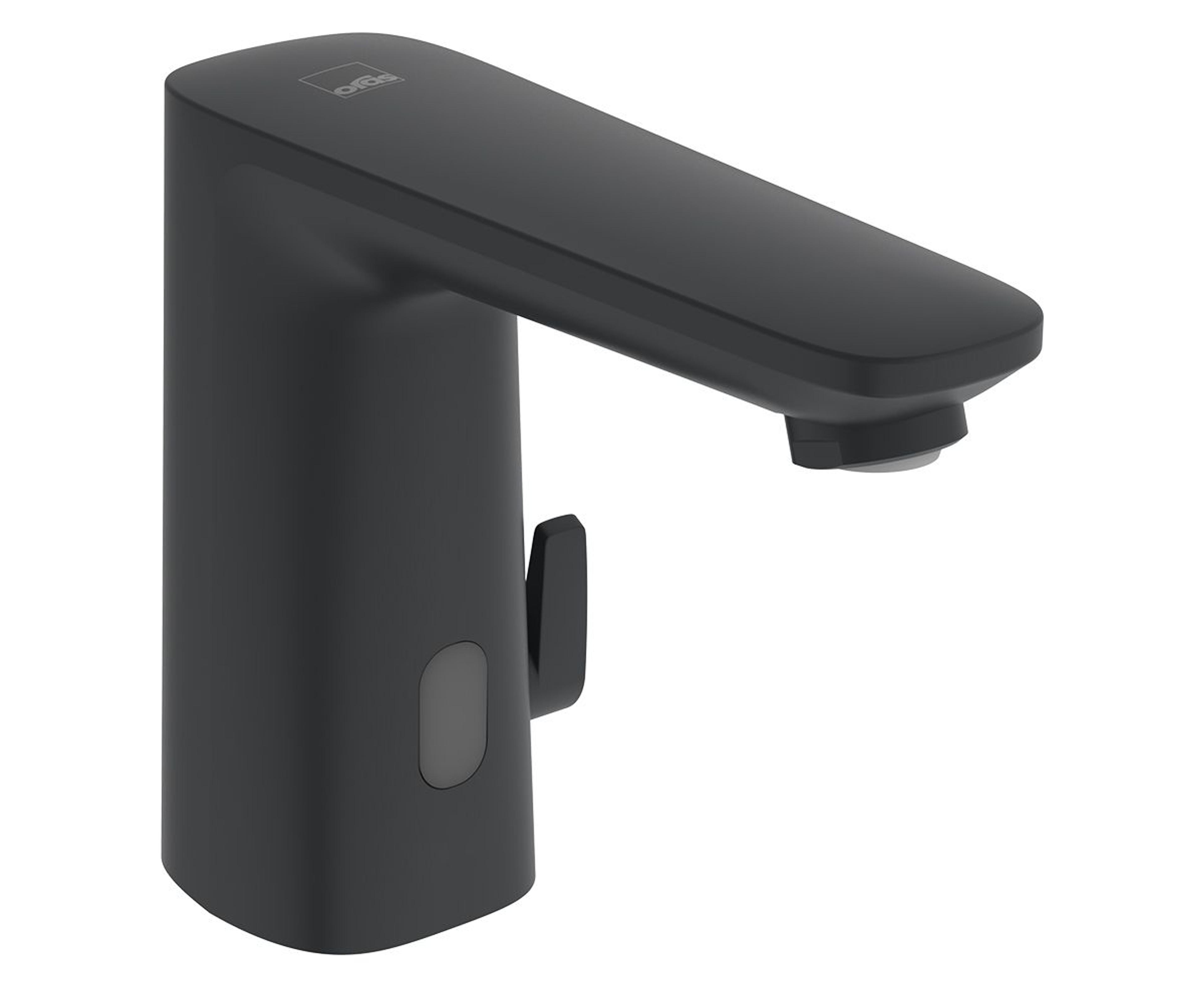 Berøringsfri servantkran som drives av et 3V batteri. Enkel og rask å installere. Laget av kompositt med avrundede kanter. Utstyrt med sikkerhetsfunksjoner for å forhindre skålding. Farge: Sort Matt