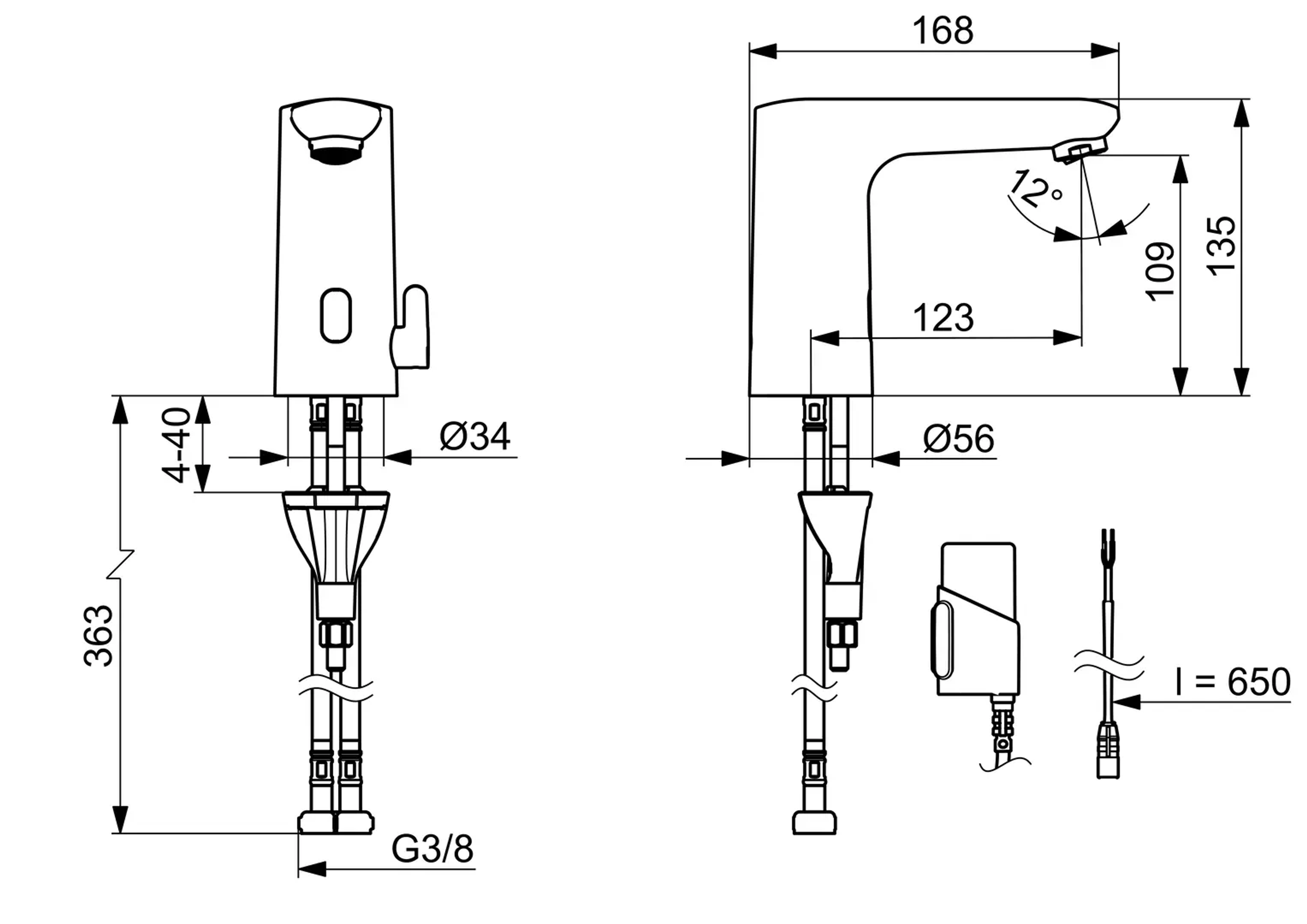 Berøringsfri servantkran uten bluetooth.