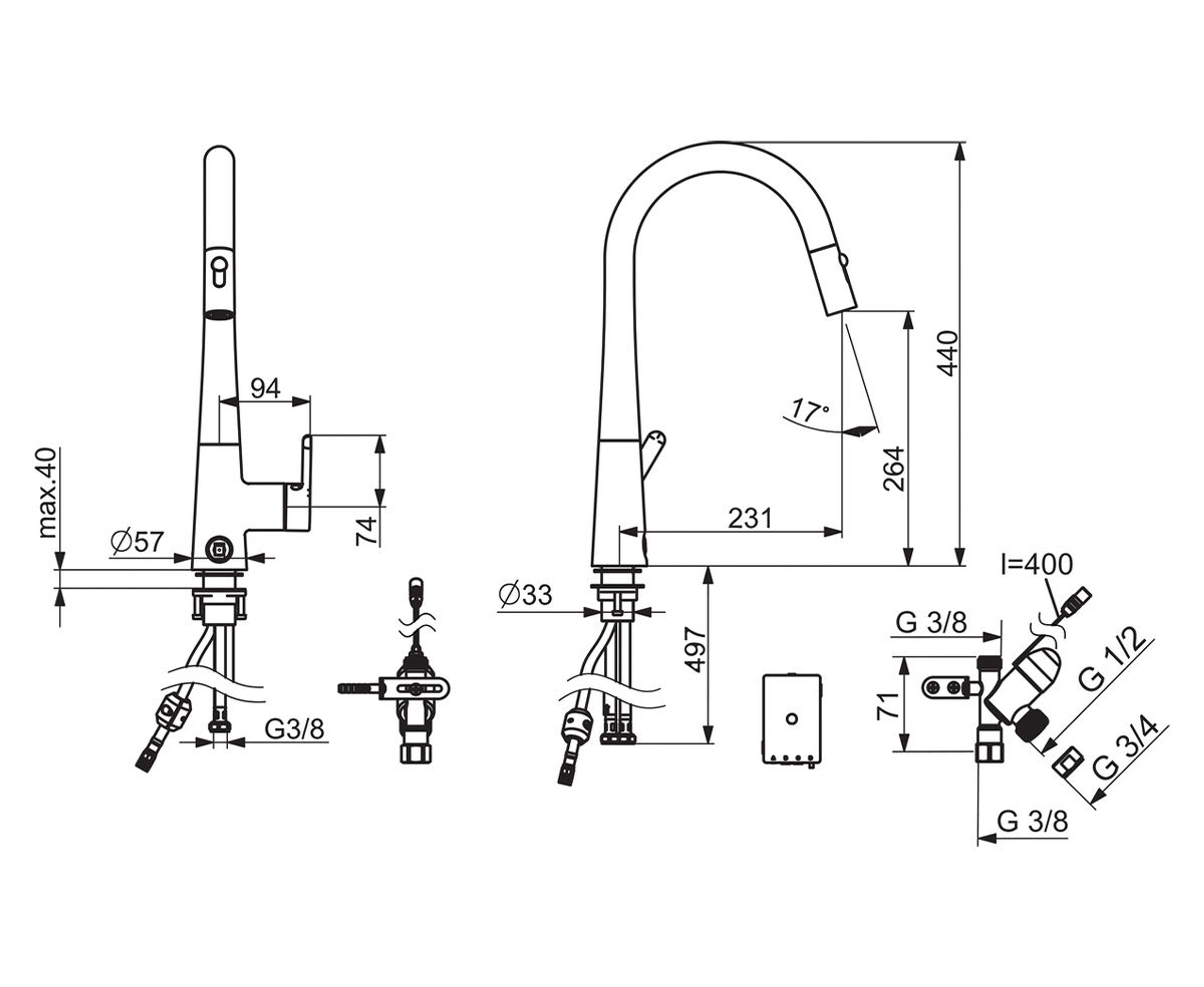 Kjøkkenkran med høy, svingbar tut og praktisk uttrekk med to sprayfunksjoner samt Smart avstengning for oppvaskmaskin. Tutens svingradius er 120° (kan begrenses til 0° eller 60°). Kranens høyde er 440 mm. Enkel installasjon med Oras 3S-installasjonssystemet. Farge: Krom