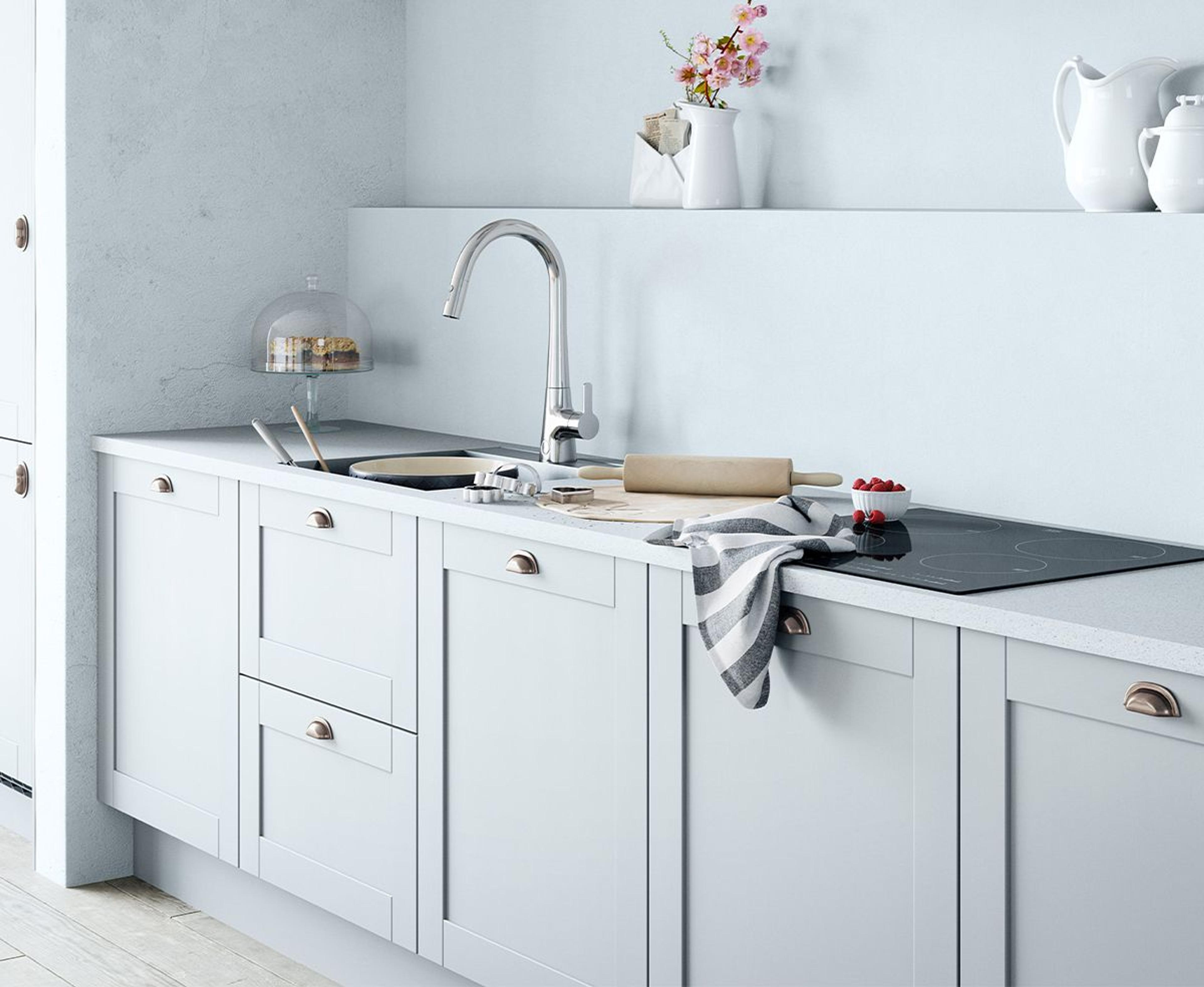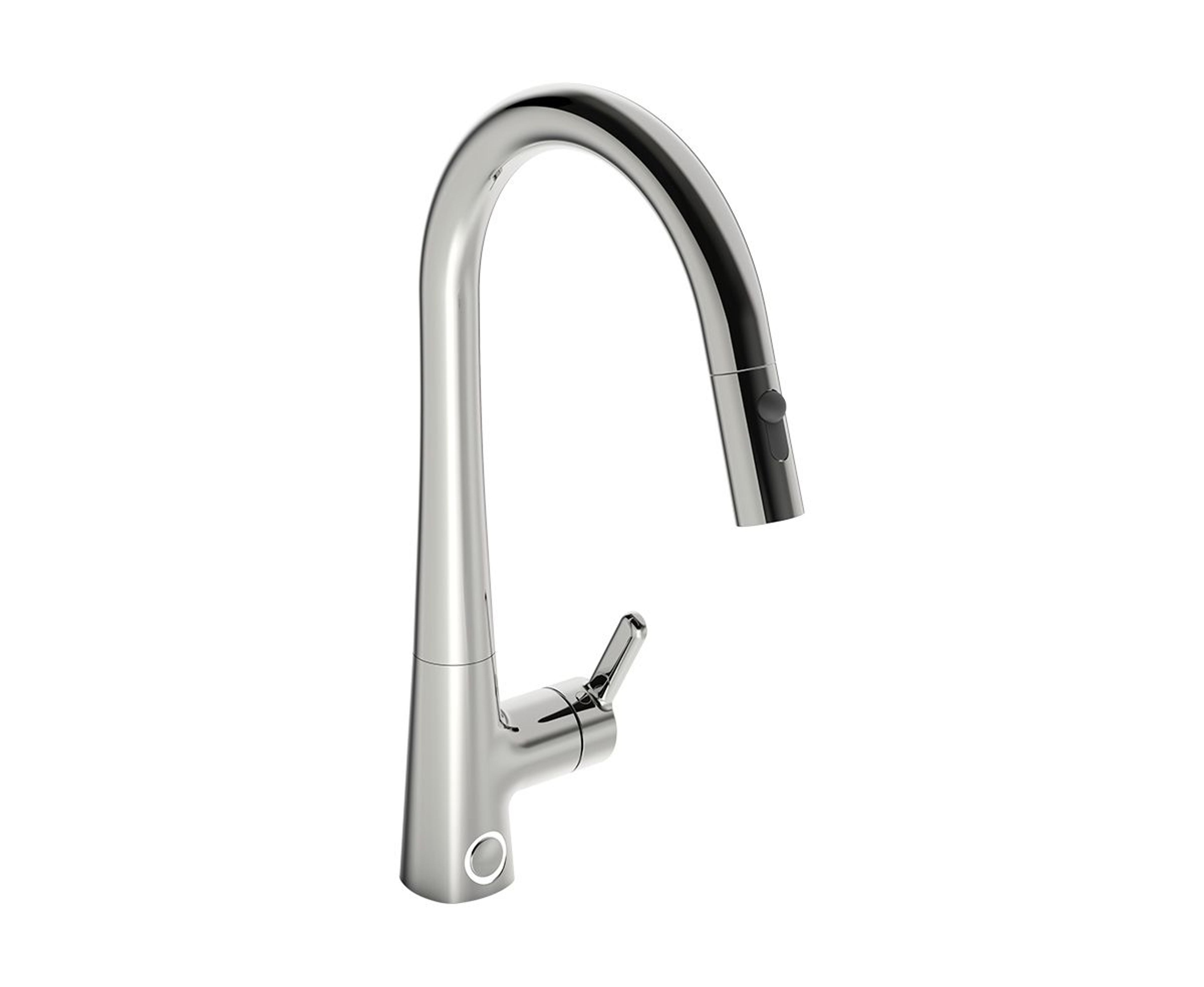 Kjøkken kran med smart avstengning for oppvaskmaskin og høy uttrekk- og svingbar tut.