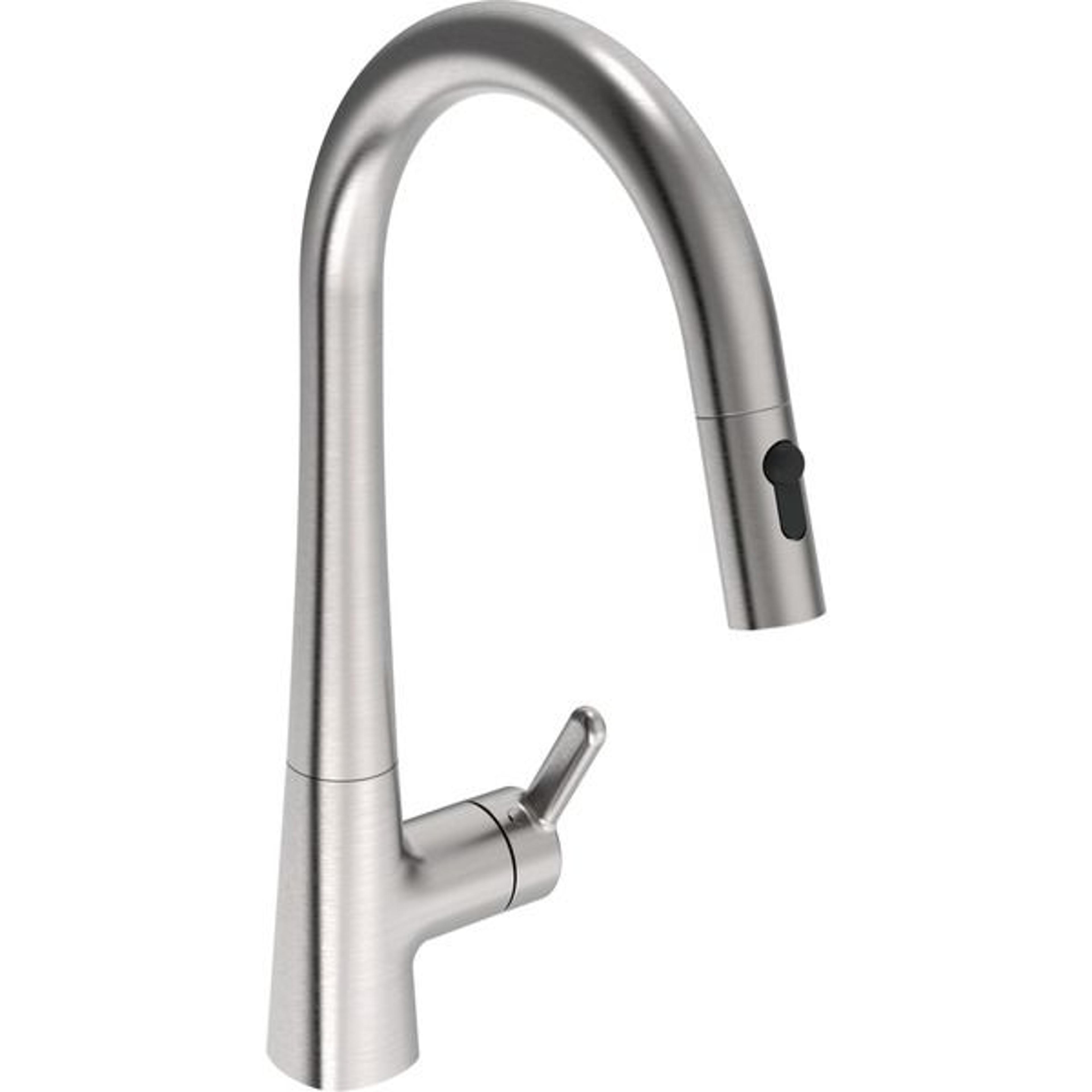 Stilren kjøkkenkran i børstet stål for kjøkkenet i dag og for fremtiden. Uttrekkbar tut gjør renhold av oppvaskkum til en enkel sak. Ved bruk har du mulighet til å variere mellom to stråletyper. Mulighet for å sette en fast skoldesperre i hendelen, og en maksimal vannmengde