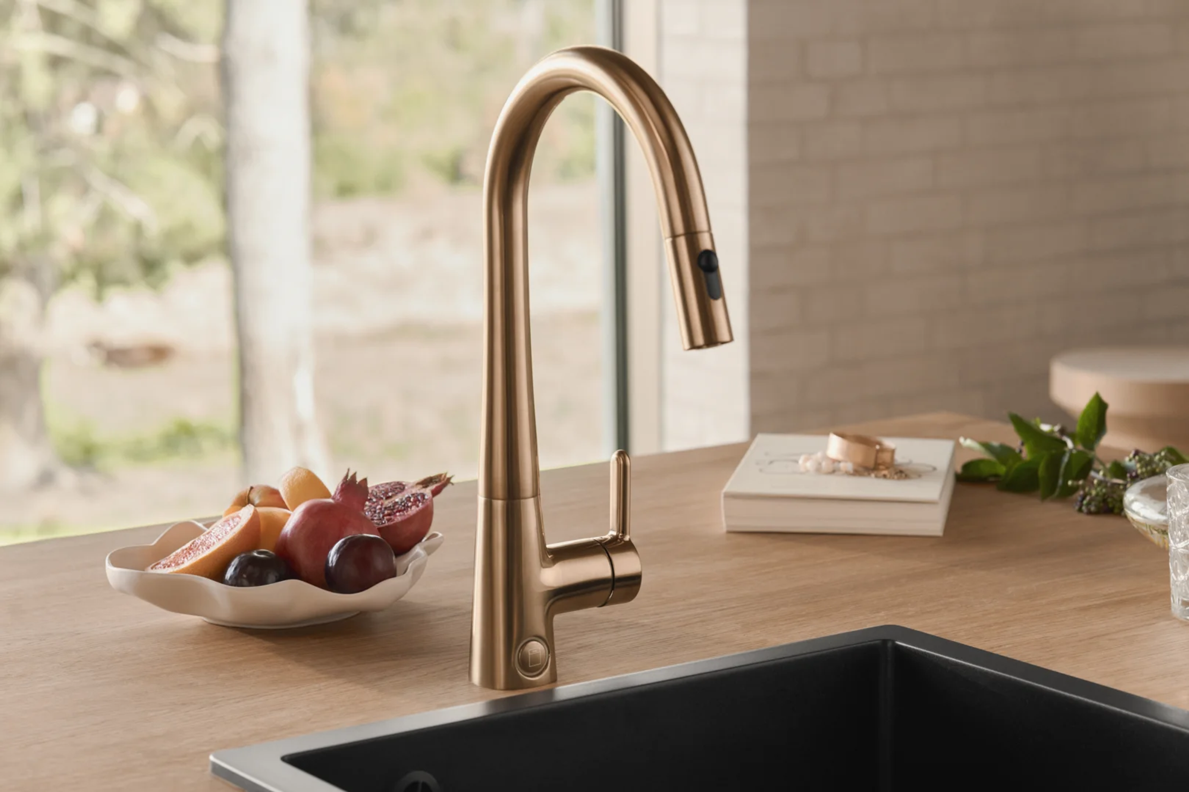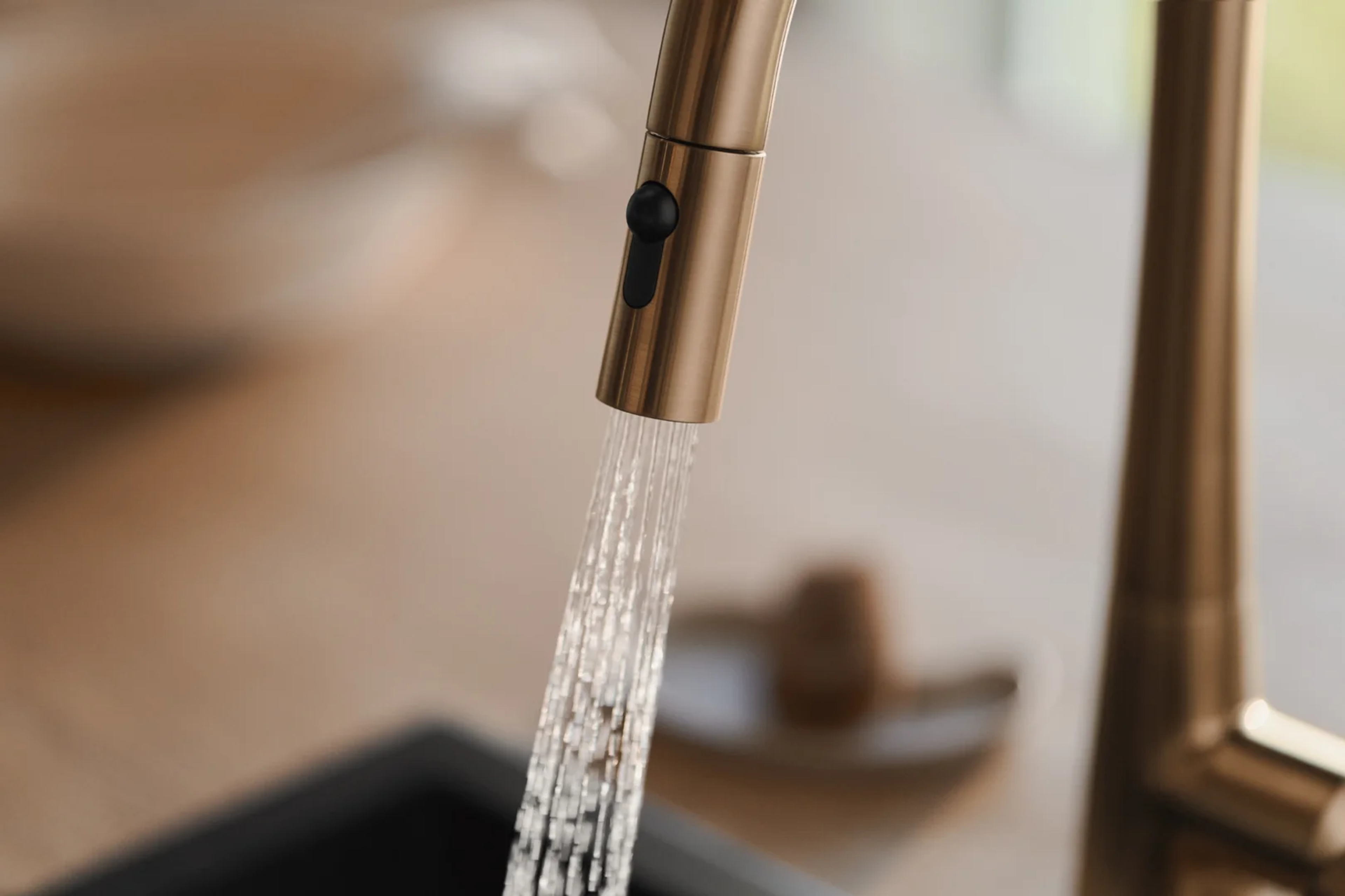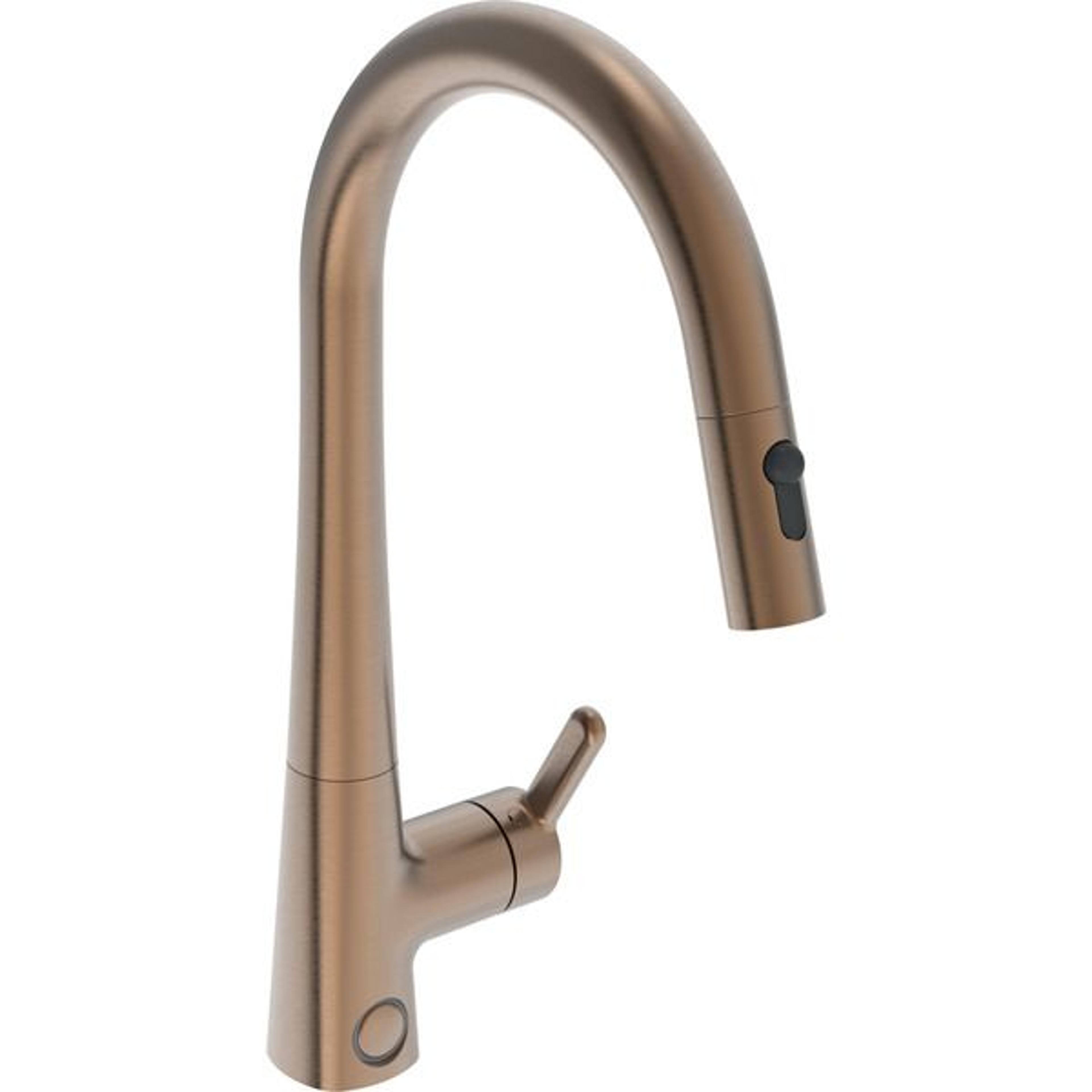 Stilren kjøkkenkran i børstet bronse for kjøkkenet i dag og for fremtiden. Uttrekkbar tut gjør renhold av oppvaskkum til en enkel sak. Ved bruk har du mulighet til å variere mellom to stråletyper. Elektronisk avstengning til oppvaskmaskin, stenger automatisk etter 4 eller 12 timer. Mulighet for å sette en fast skoldesperre i hendelen, og en maksimal vannmengde