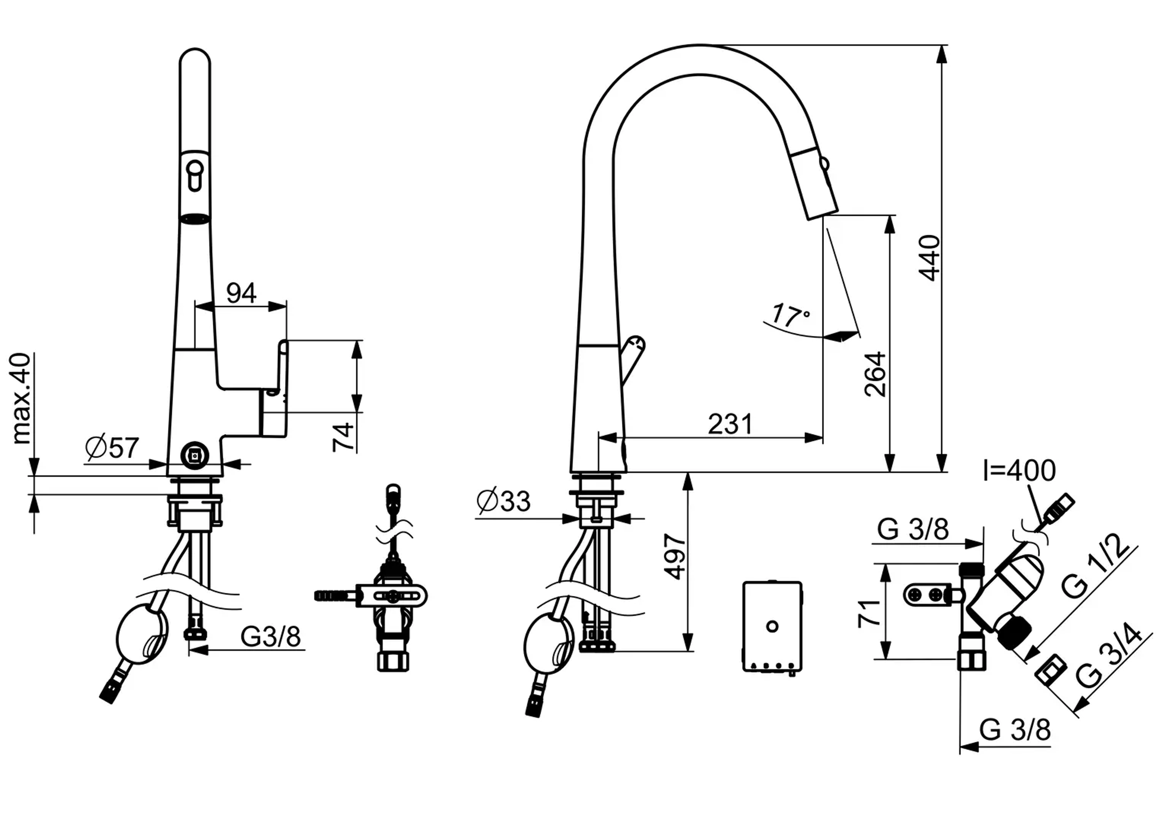Stilren kjøkkenkran i børstet stål for kjøkkenet i dag og for fremtiden. Uttrekkbar tut gjør renhold av oppvaskkum til en enkel sak. Ved bruk har du mulighet til å variere mellom to stråletyper. Elektronisk avstengning til oppvaskmaskin, stenger automatisk etter 4 eller 12 timer. Mulighet for å sette en fast skoldesperre i hendelen, og en maksimal vannmengde
