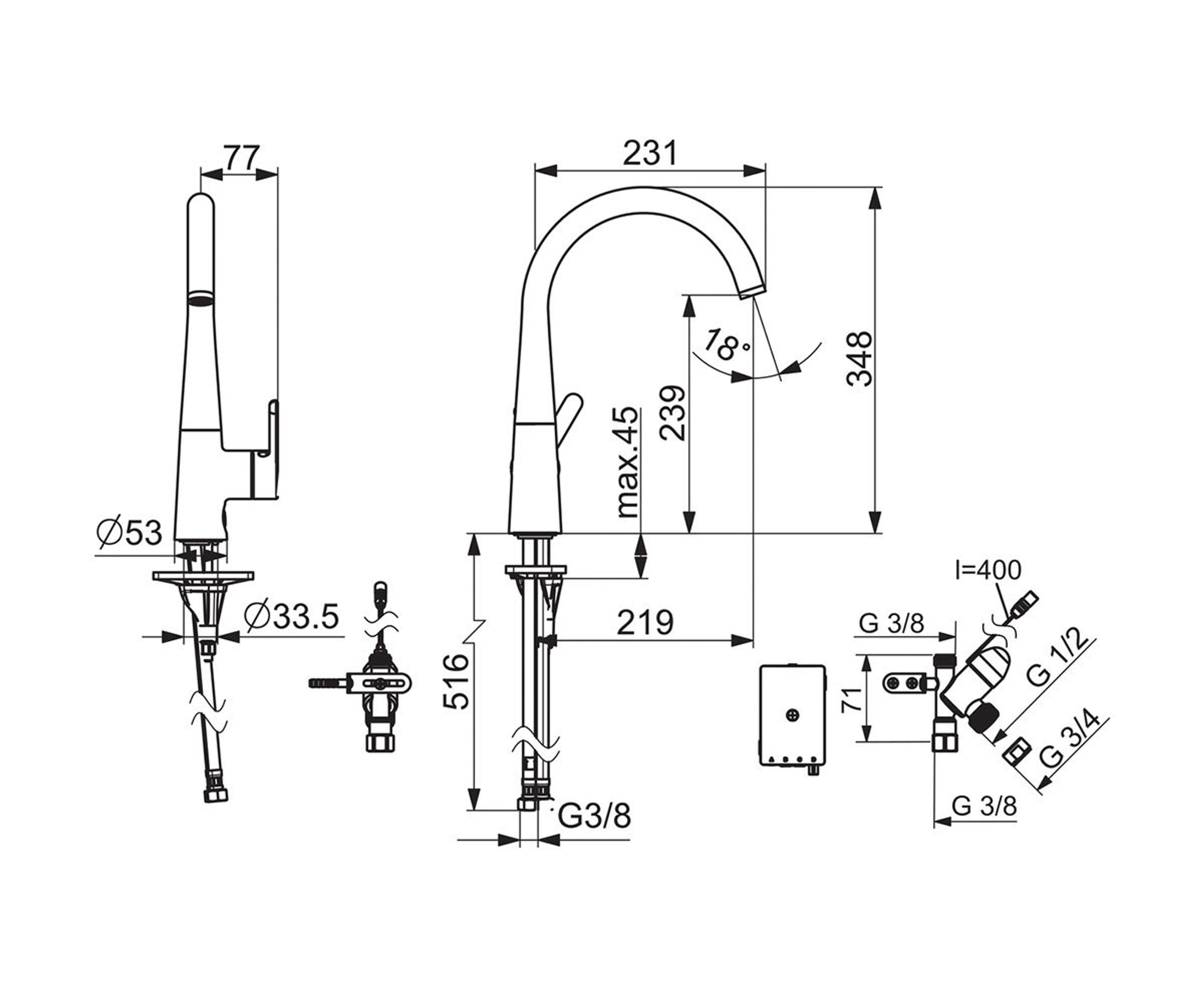 - Med stoppventil for oppvaskmaskin