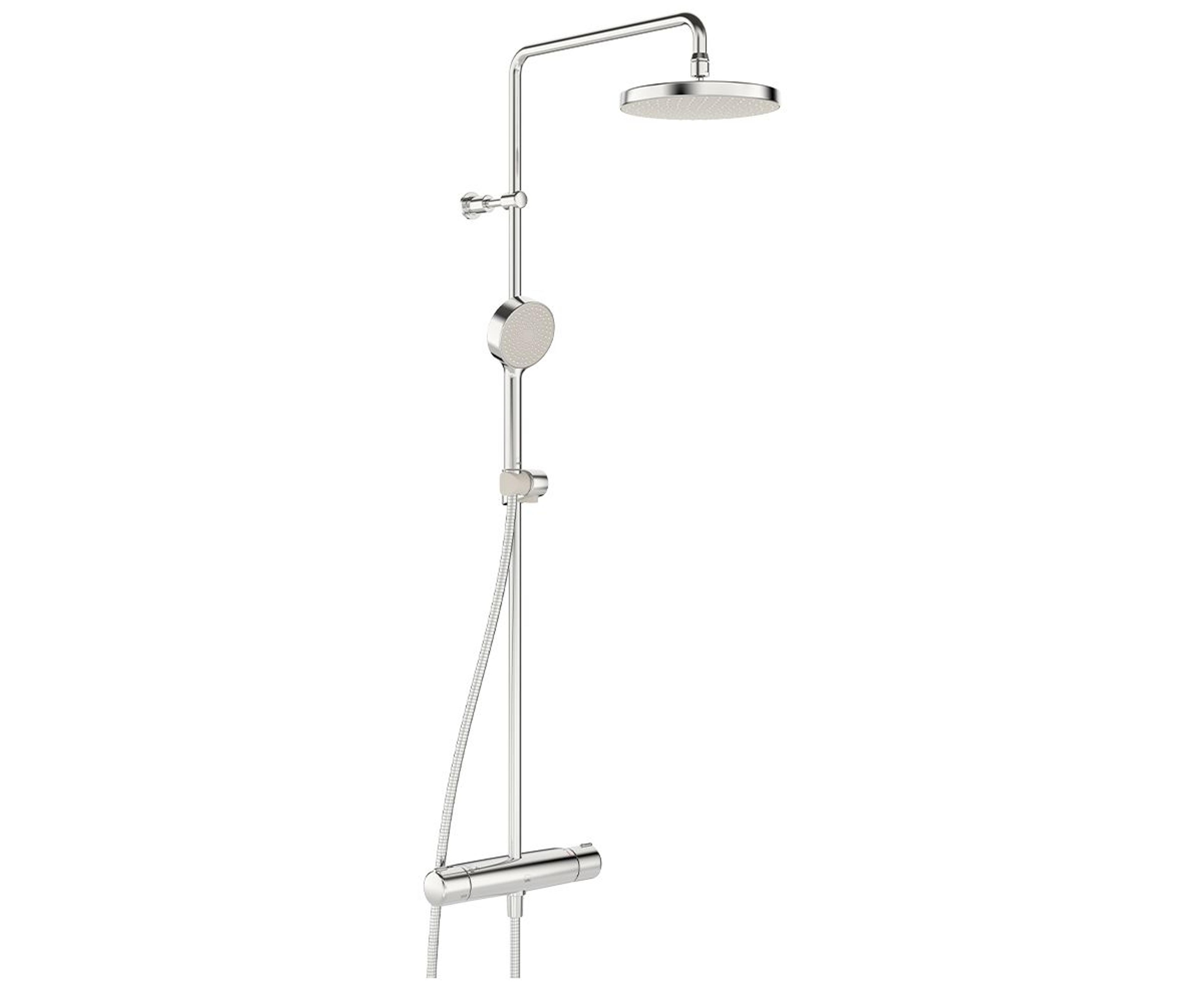 Dusjsett i krom som inkluderer en ny og forbedret comfort termostat, rainshower takdusj, hånddusj, dusjstang- og slange. Tak- og hånddusj er utstyrt med silikondyser, som er enkle å holde rene på grunn av anti-kalk teknologi. Farge: Krom